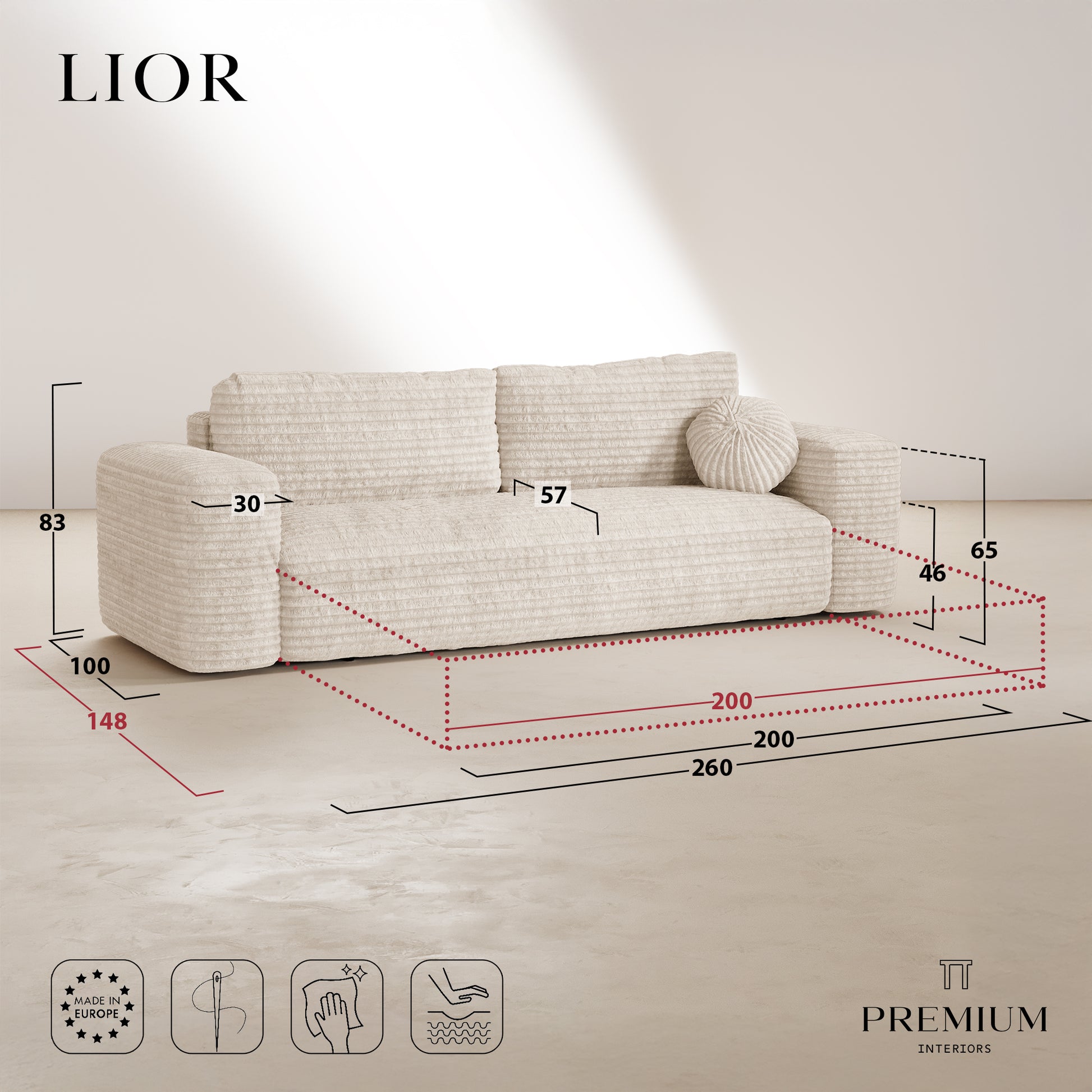 Ce canapé est conçu pour ceux qui recherchent une solution alliant esthétisme et fonctionnalité. Que vous viviez dans un petit espace ou que vous aimiez organiser des soirées conviviales, LIOR répond à vos besoins avec élégance. Il est le compagnon idéal pour ceux qui souhaitent allier style, confort et praticité au quotidien.