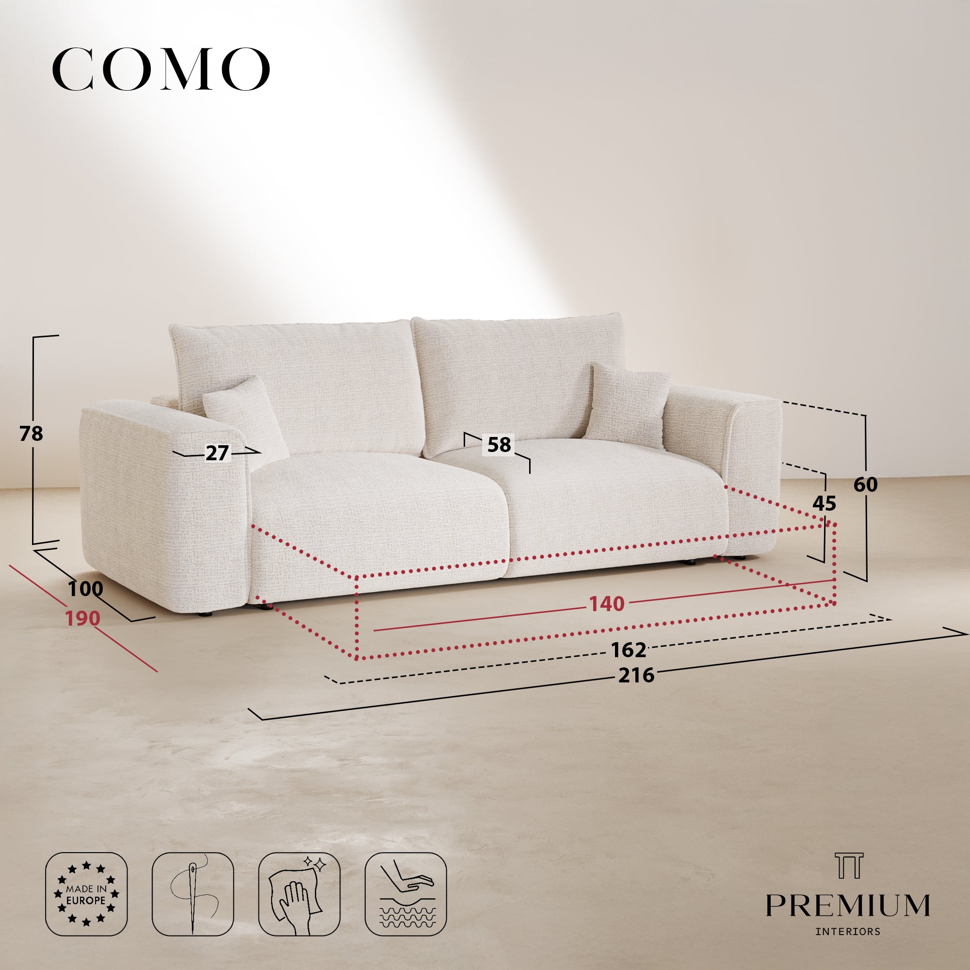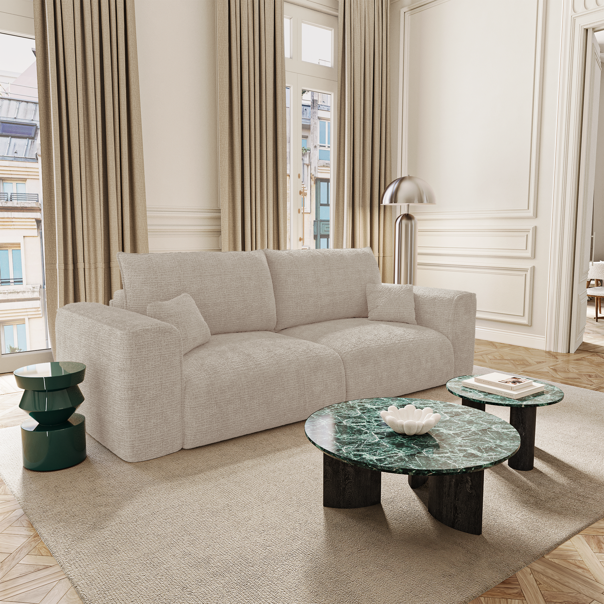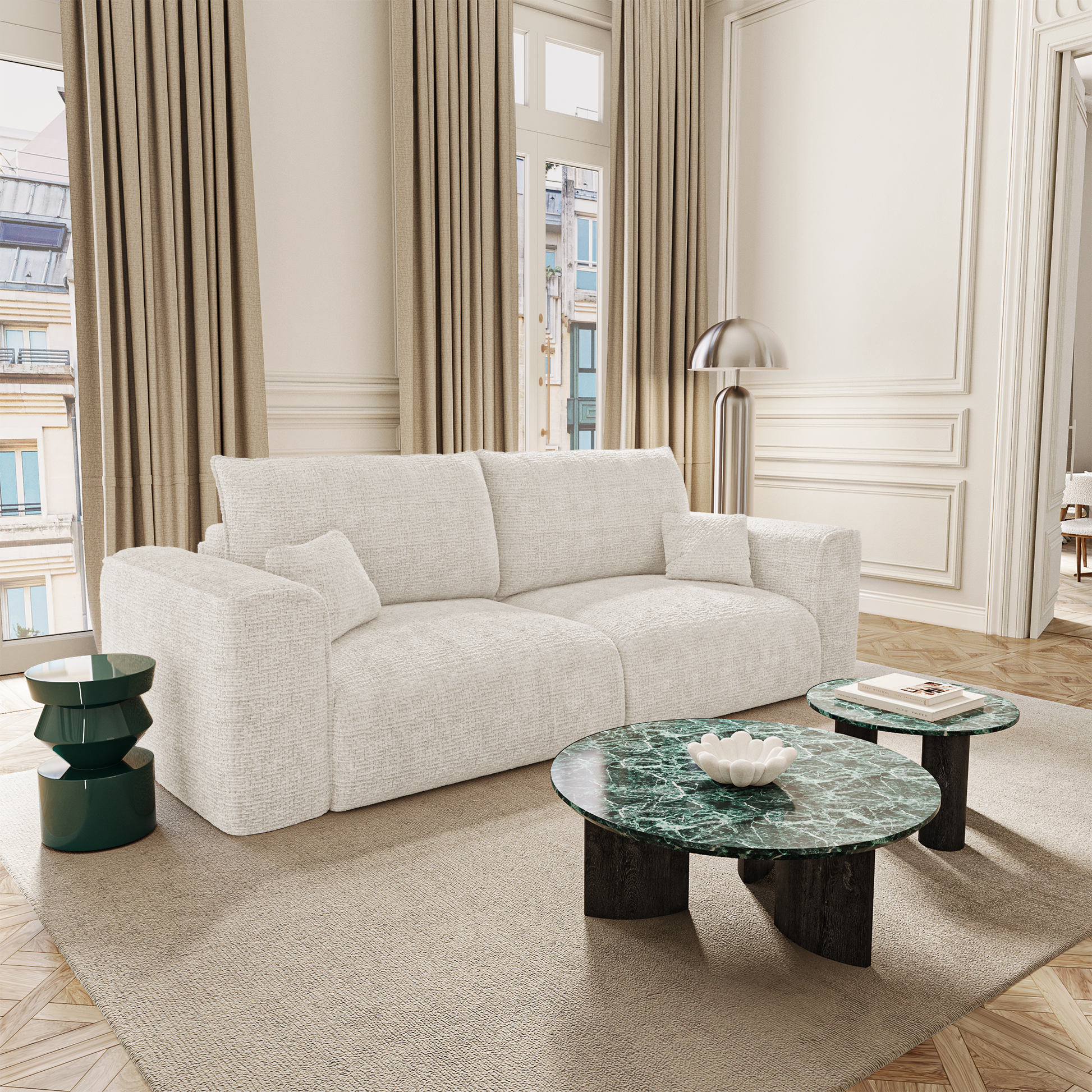 Le design du canapé COMO reste fidèle à l’esprit de la collection : formes douces, volumes généreux, lignes sobres. Il trouve sa place dans un intérieur contemporain, chaleureux ou épuré, et s’adapte à votre univers.