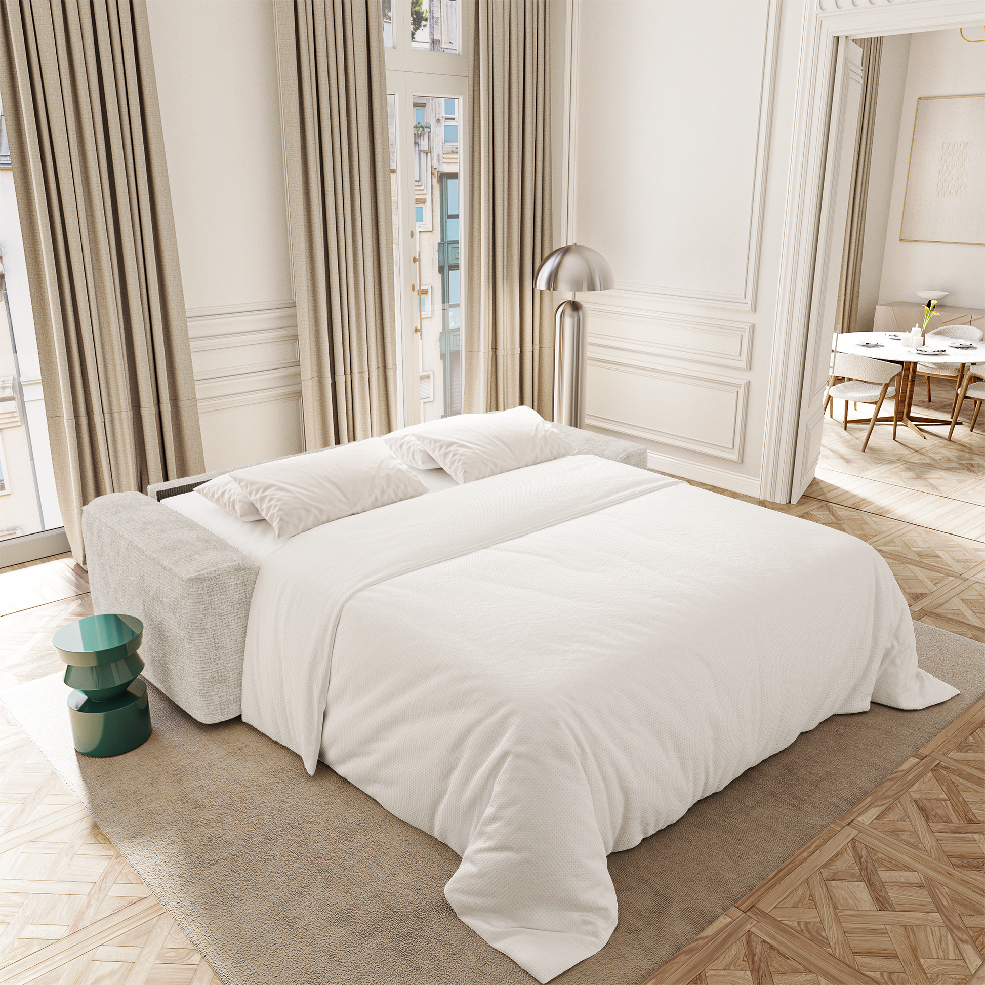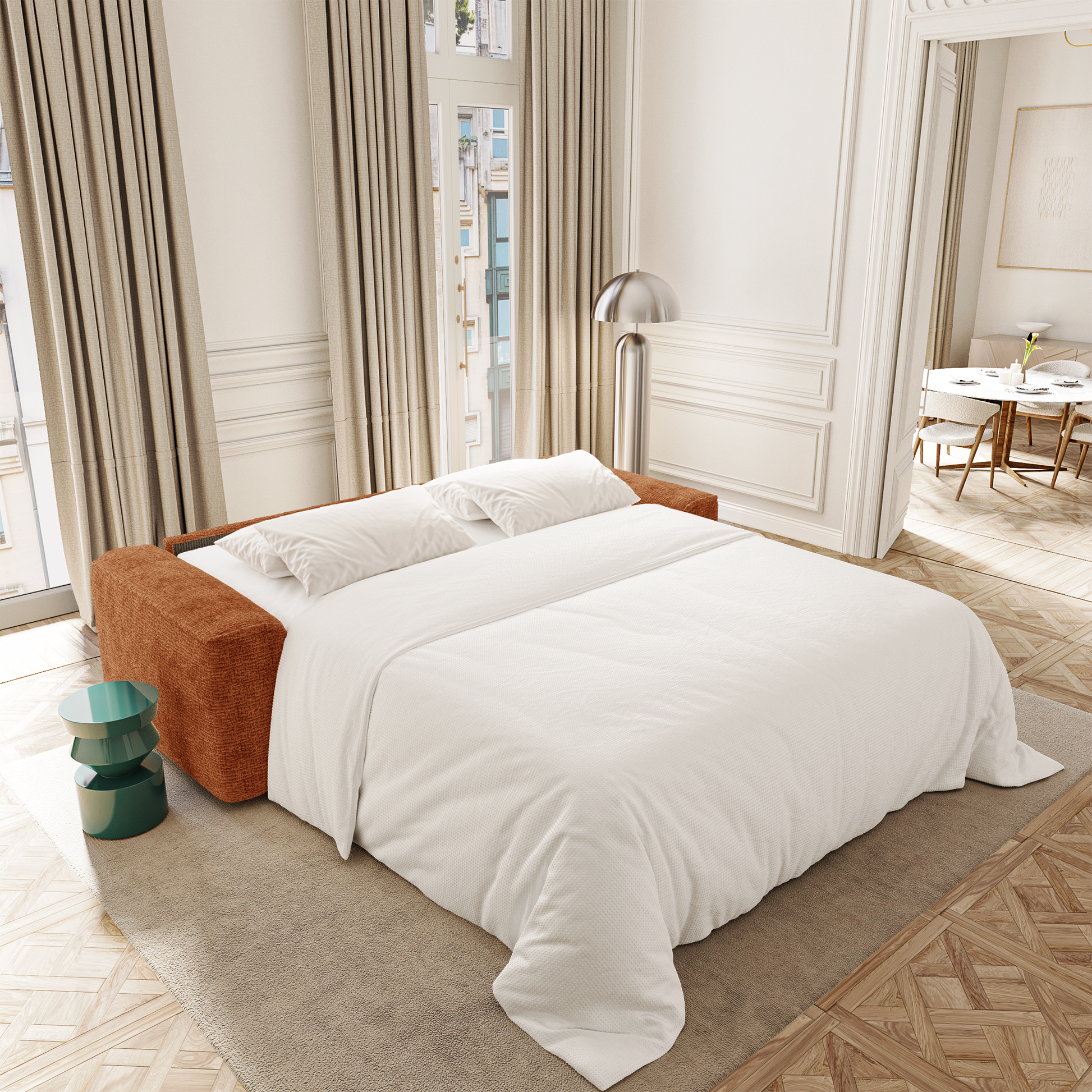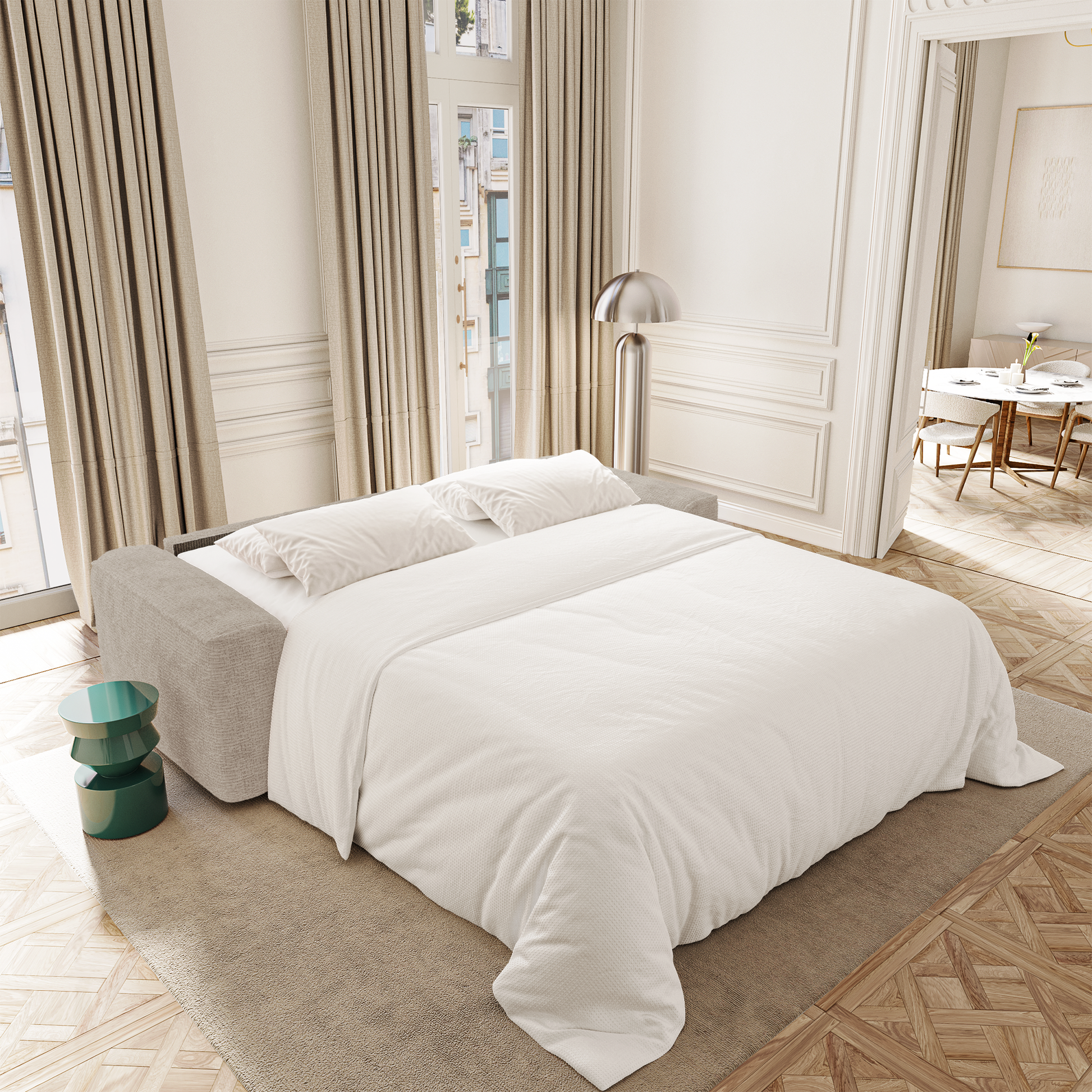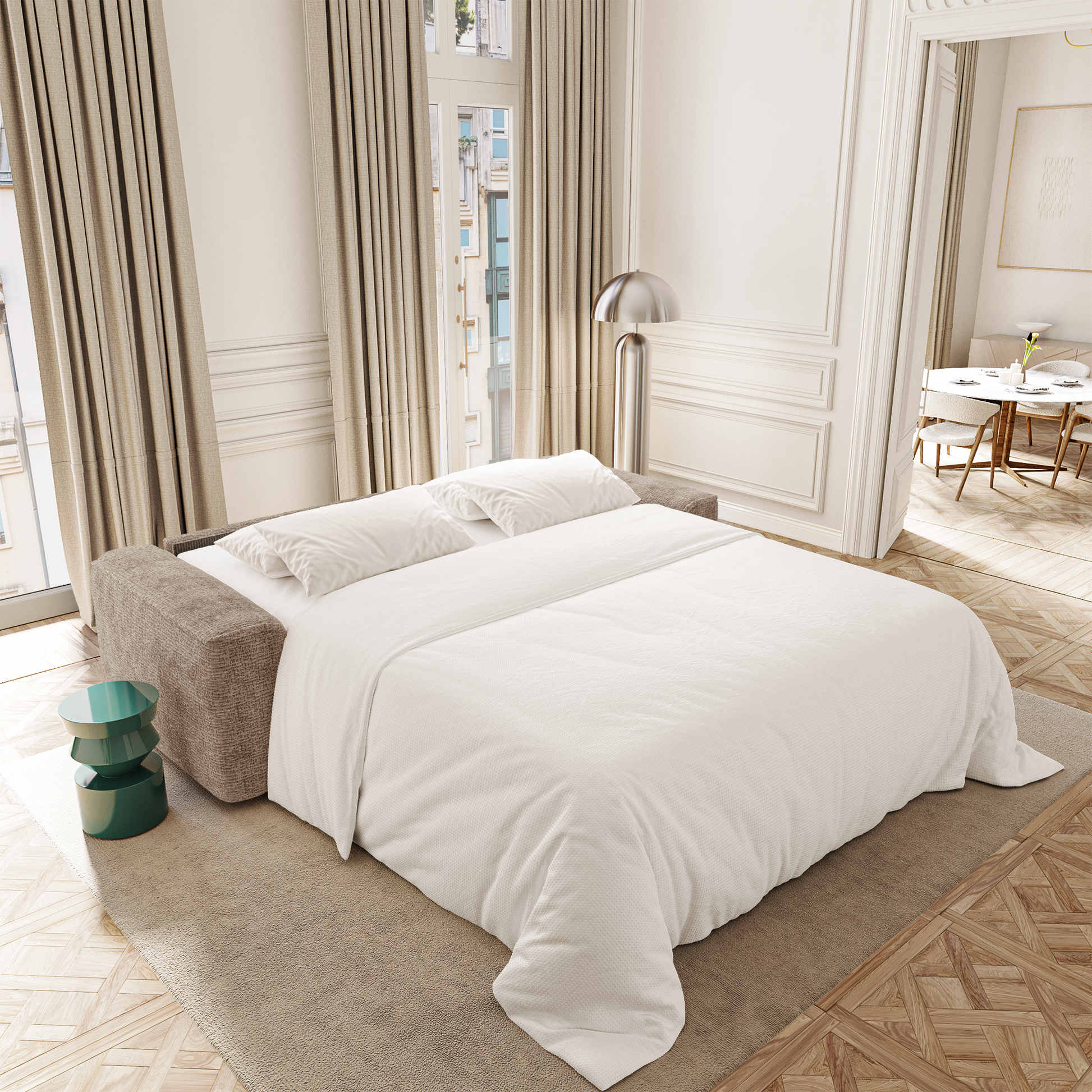 Idéal pour les appartements urbains ou les salons polyvalents, COMO permet de recevoir sans compromis sur le confort. Son matelas offre un soutien confortable et homogène, parfaitement adapté à un couchage régulier ou ponctuel. Le mécanisme est fluide, solide et intuitif : le confort de jour s’efface naturellement pour laisser place à celui de la nuit.