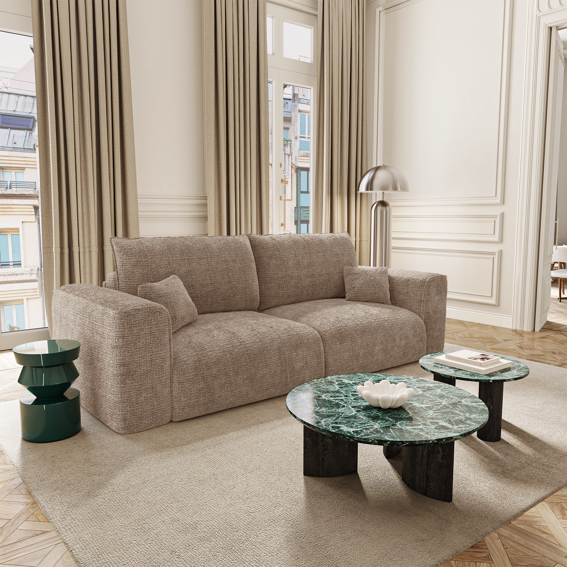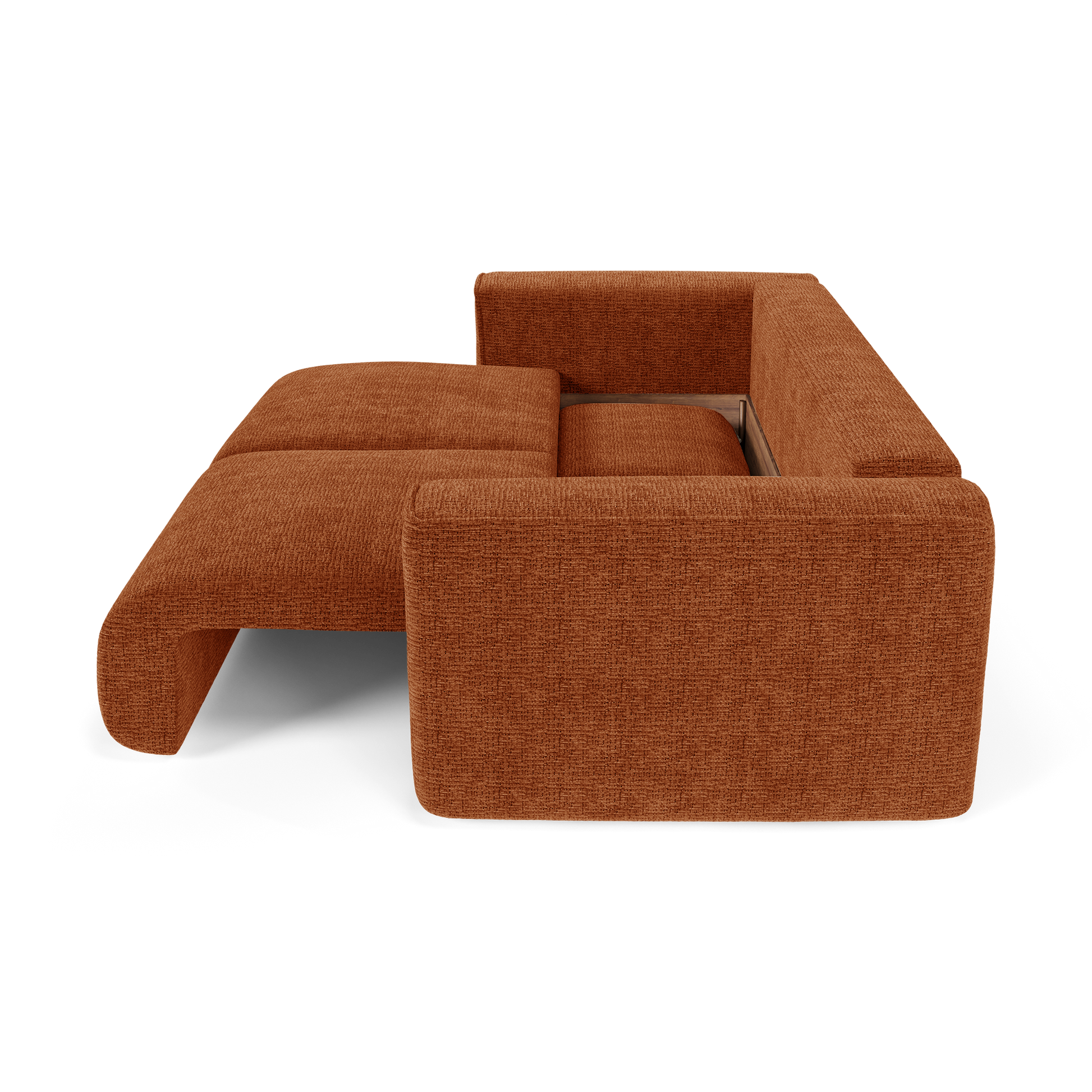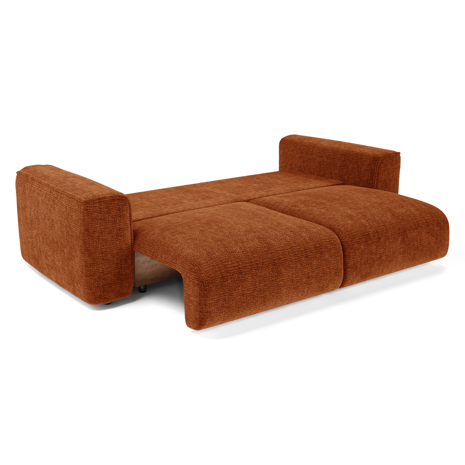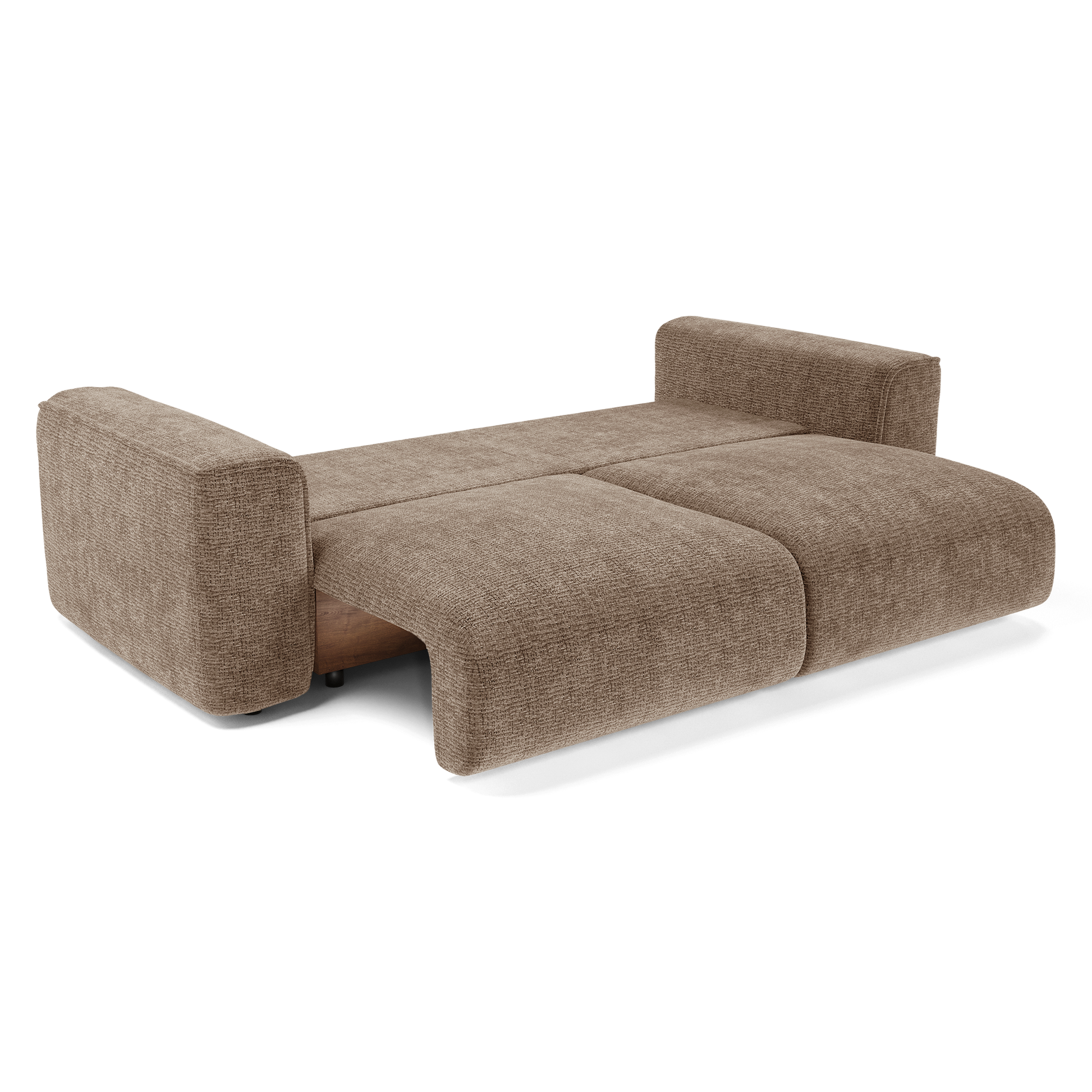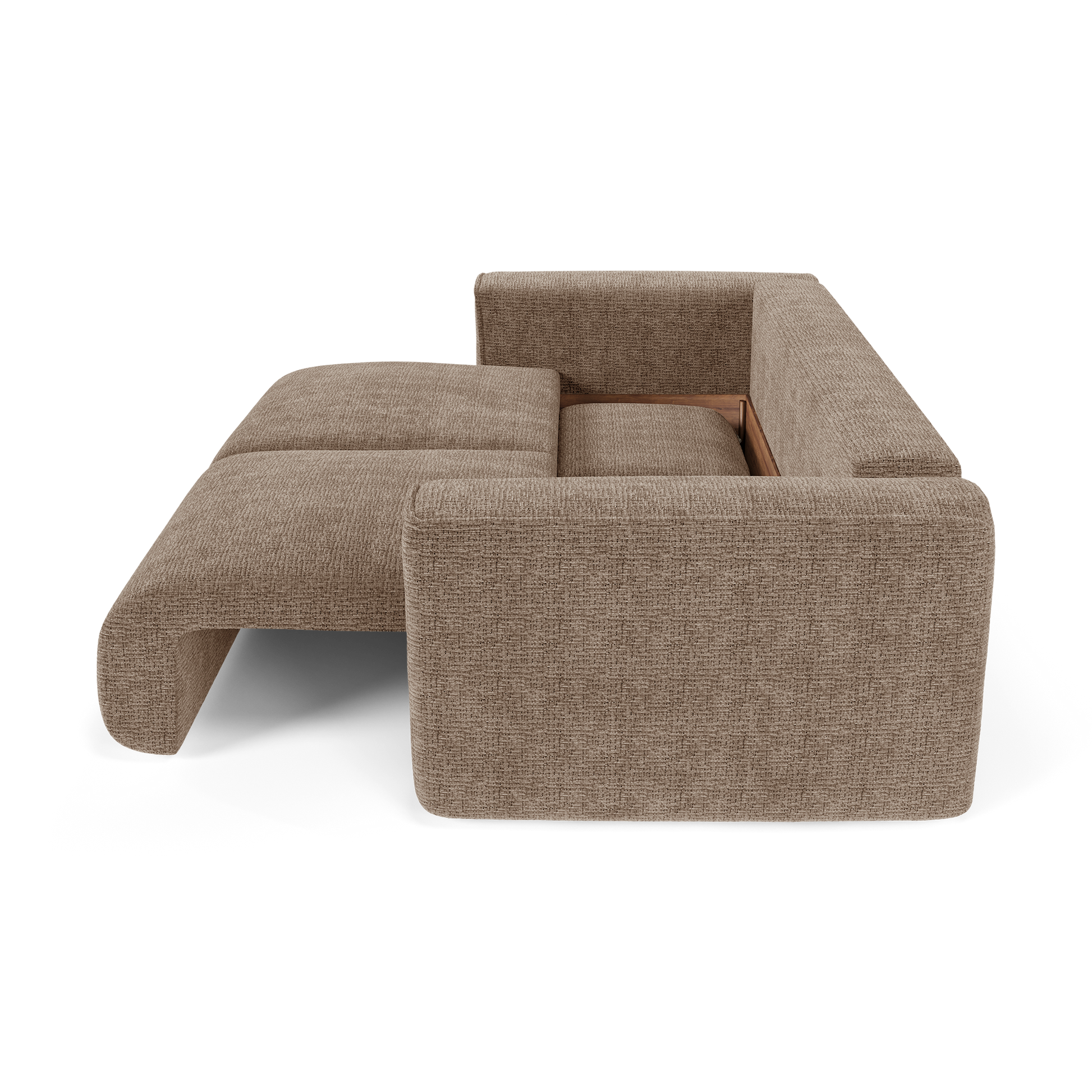 Canapé convertible 4 places avec coffre noyer COMO Tissu tramé toucher doux