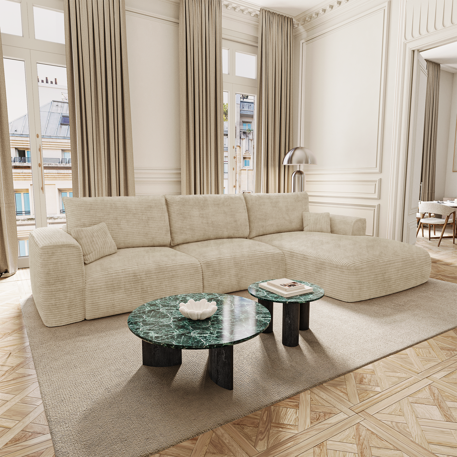 Le design du canapé COMO reste fidèle à l’esprit de la collection : formes douces, volumes généreux, lignes sobres. Il trouve sa place dans un intérieur contemporain, chaleureux ou épuré, et s’adapte à votre univers.
