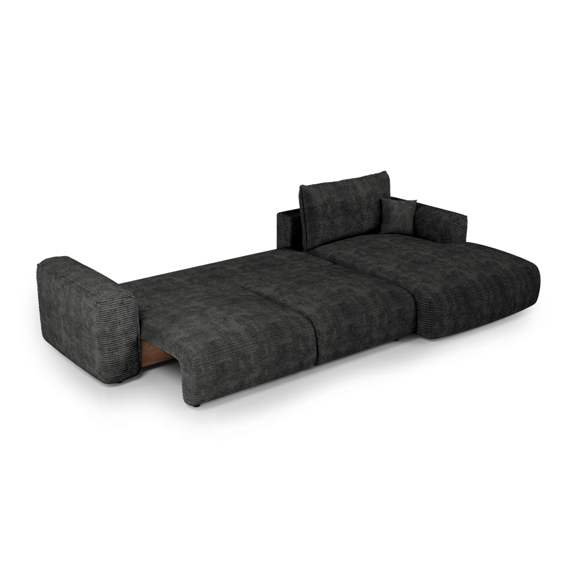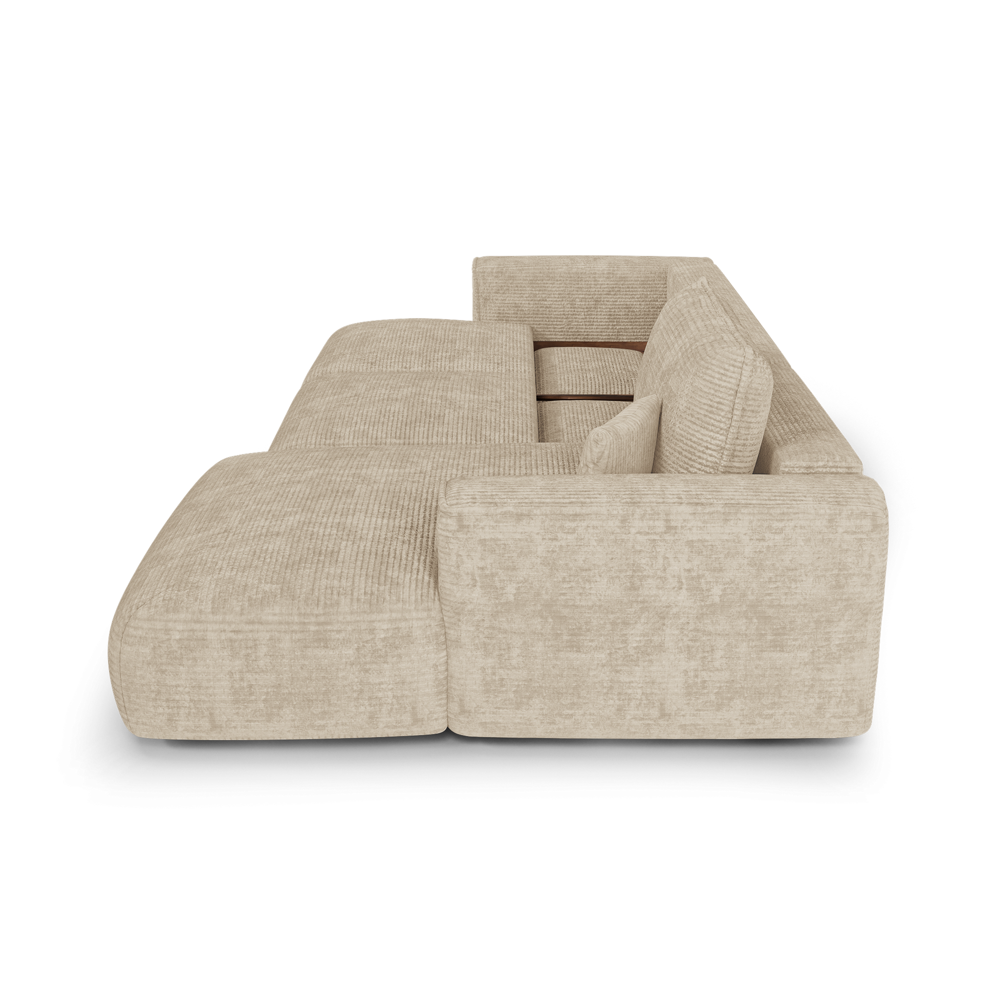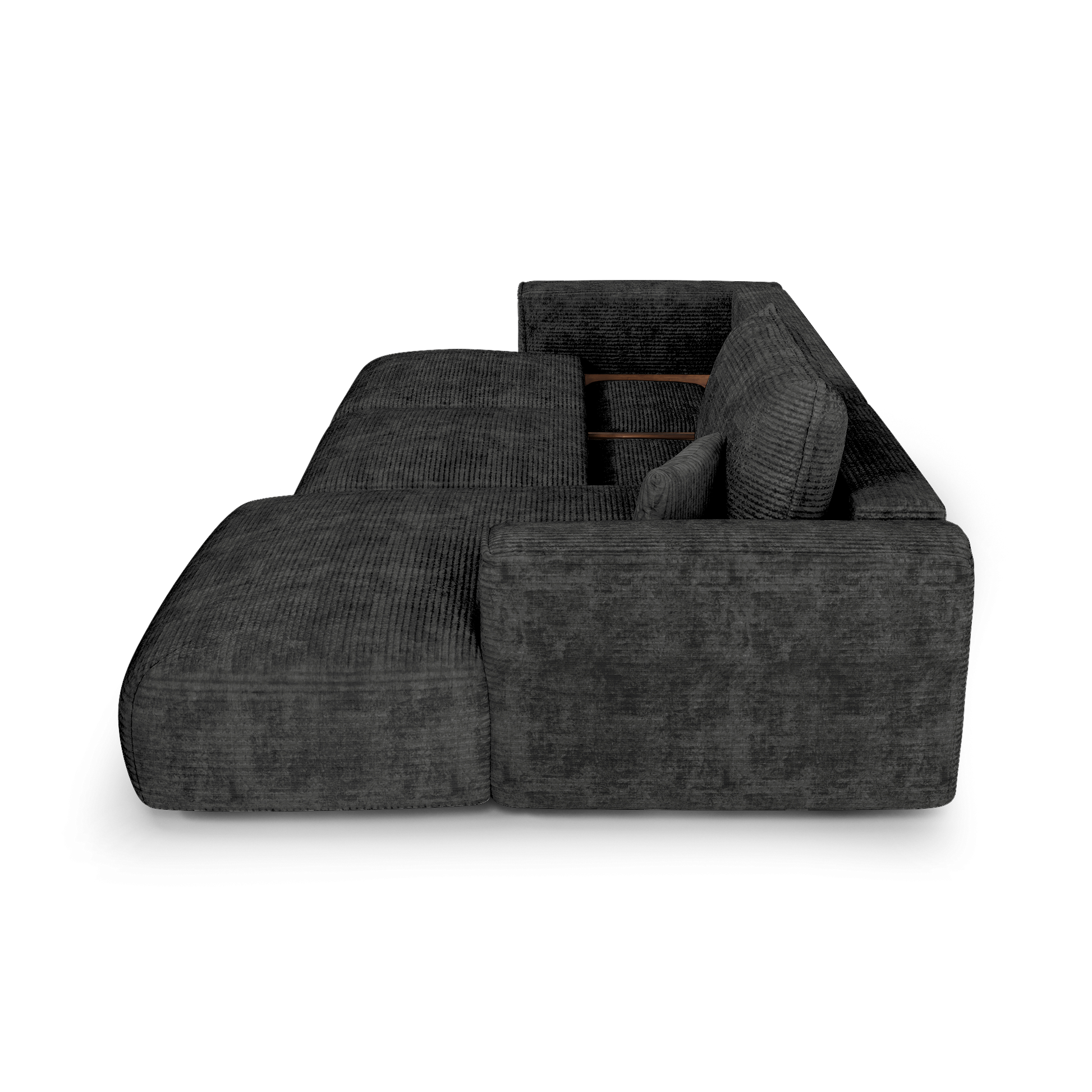 Canapé angle droit convertible avec coffre noyer COMO Velours côtelé