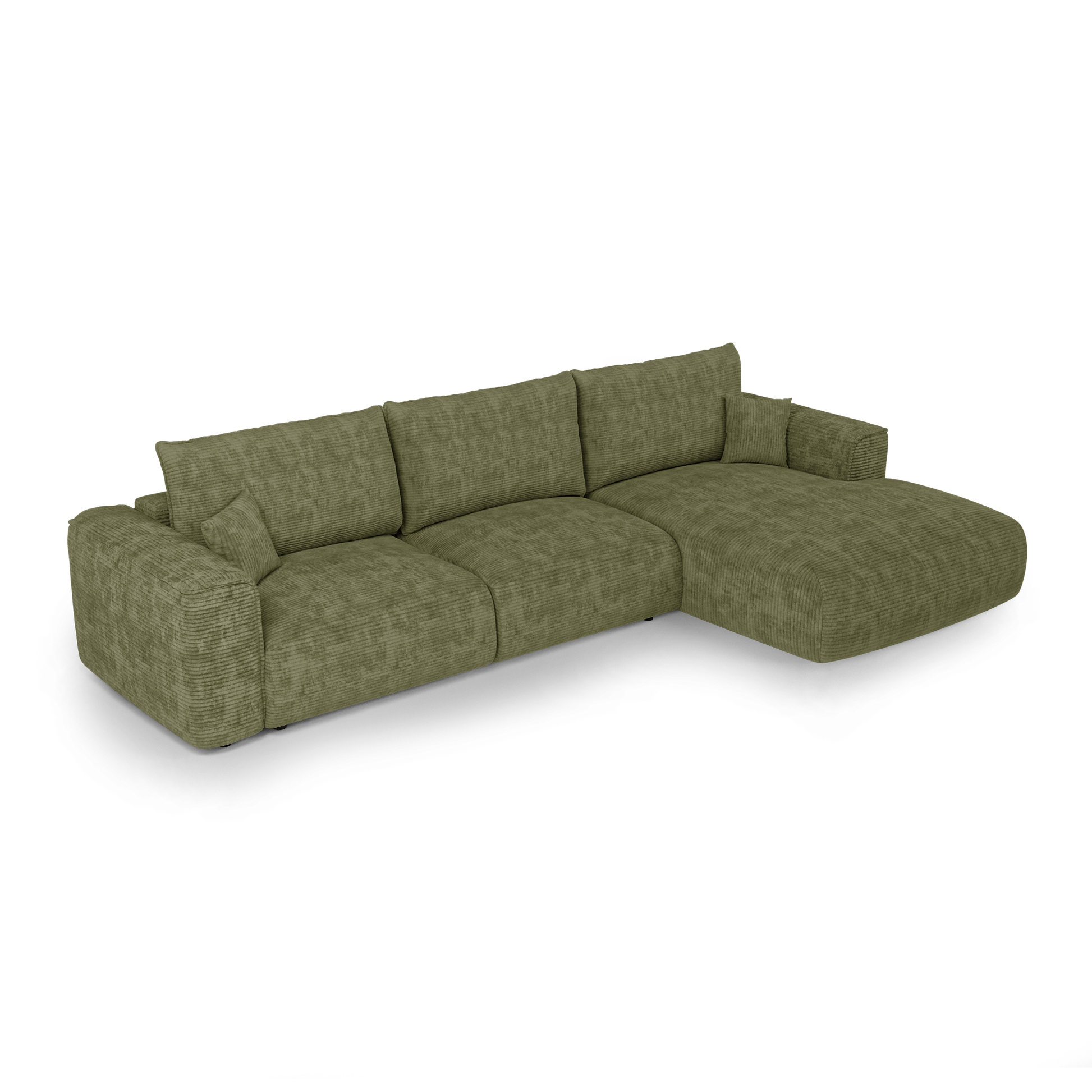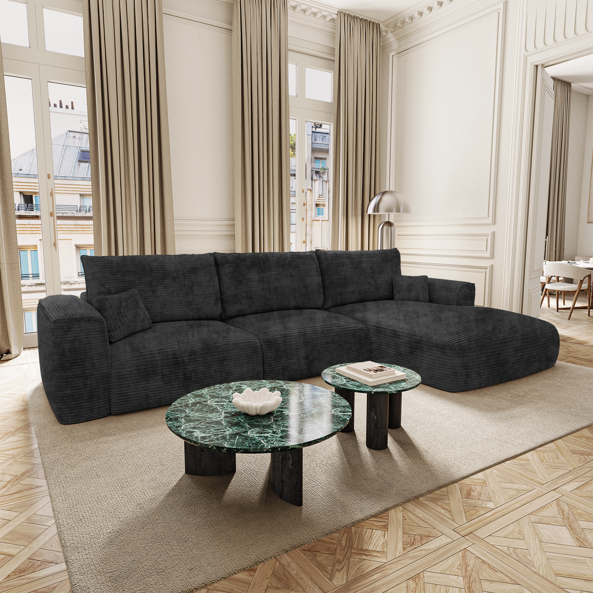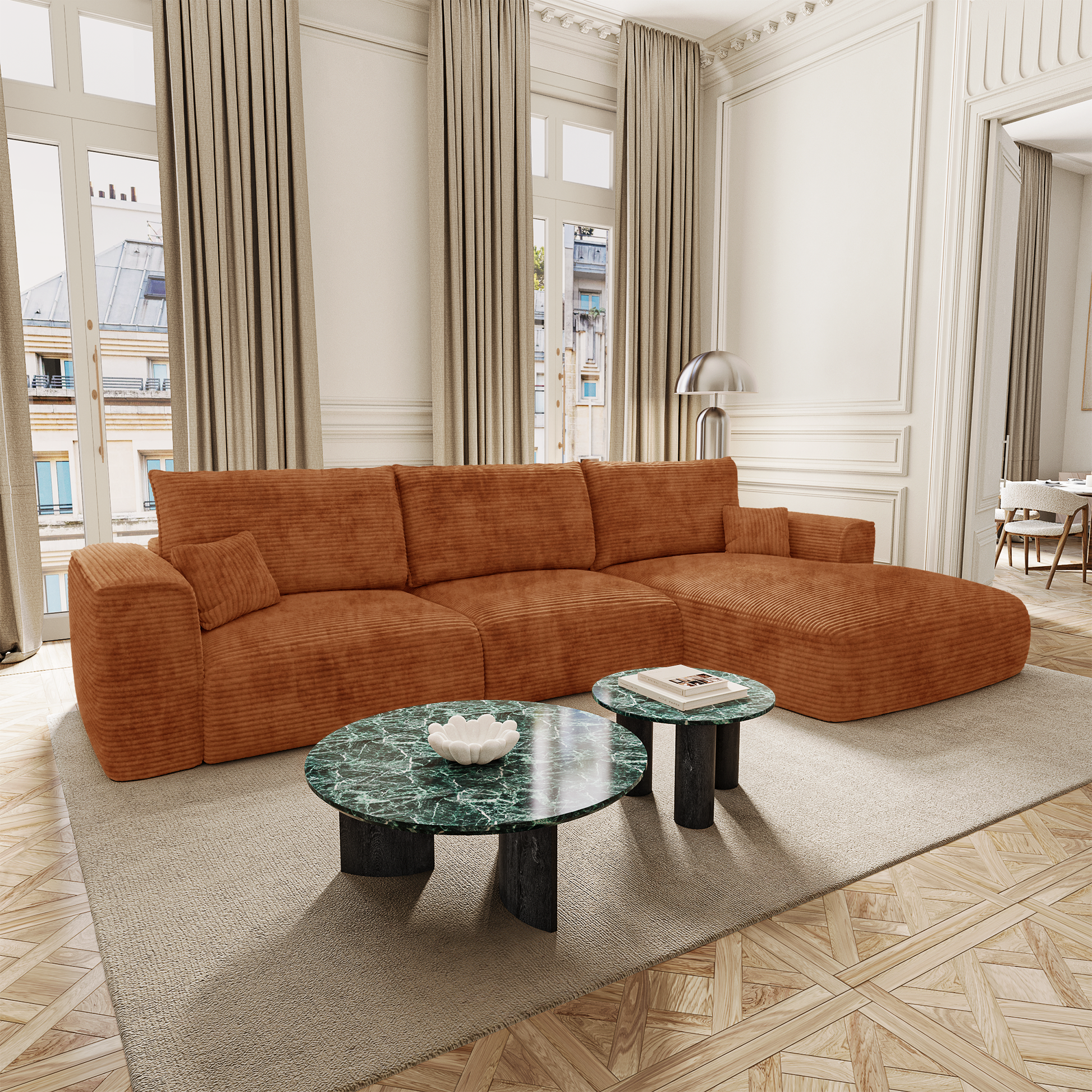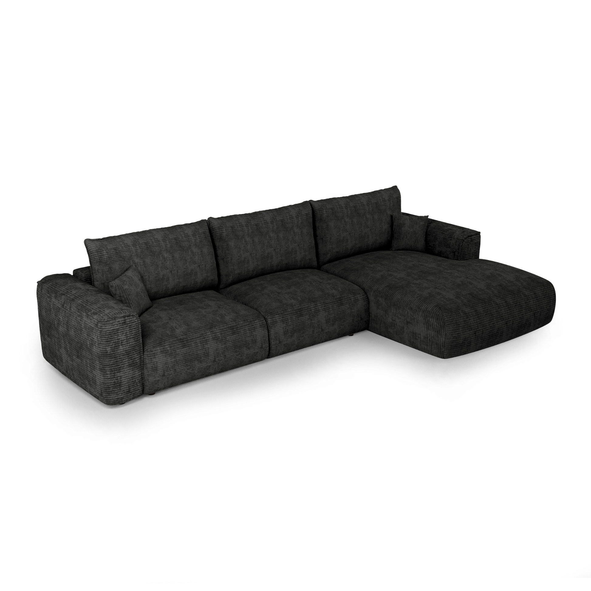 Canapé angle droit convertible avec coffre noyer COMO Velours côtelé