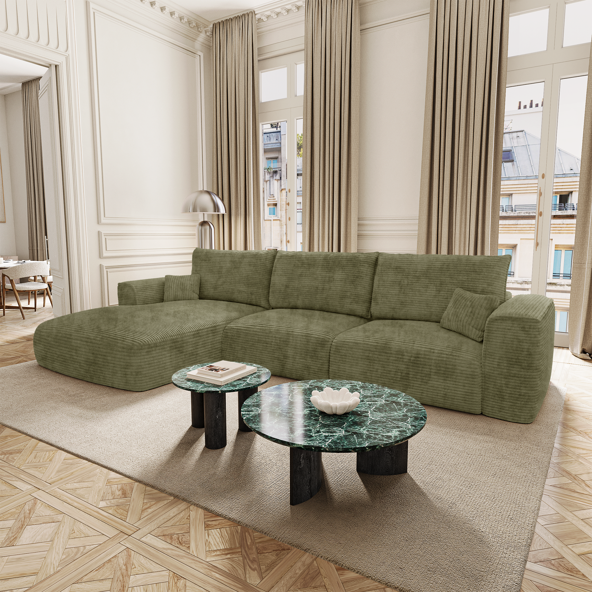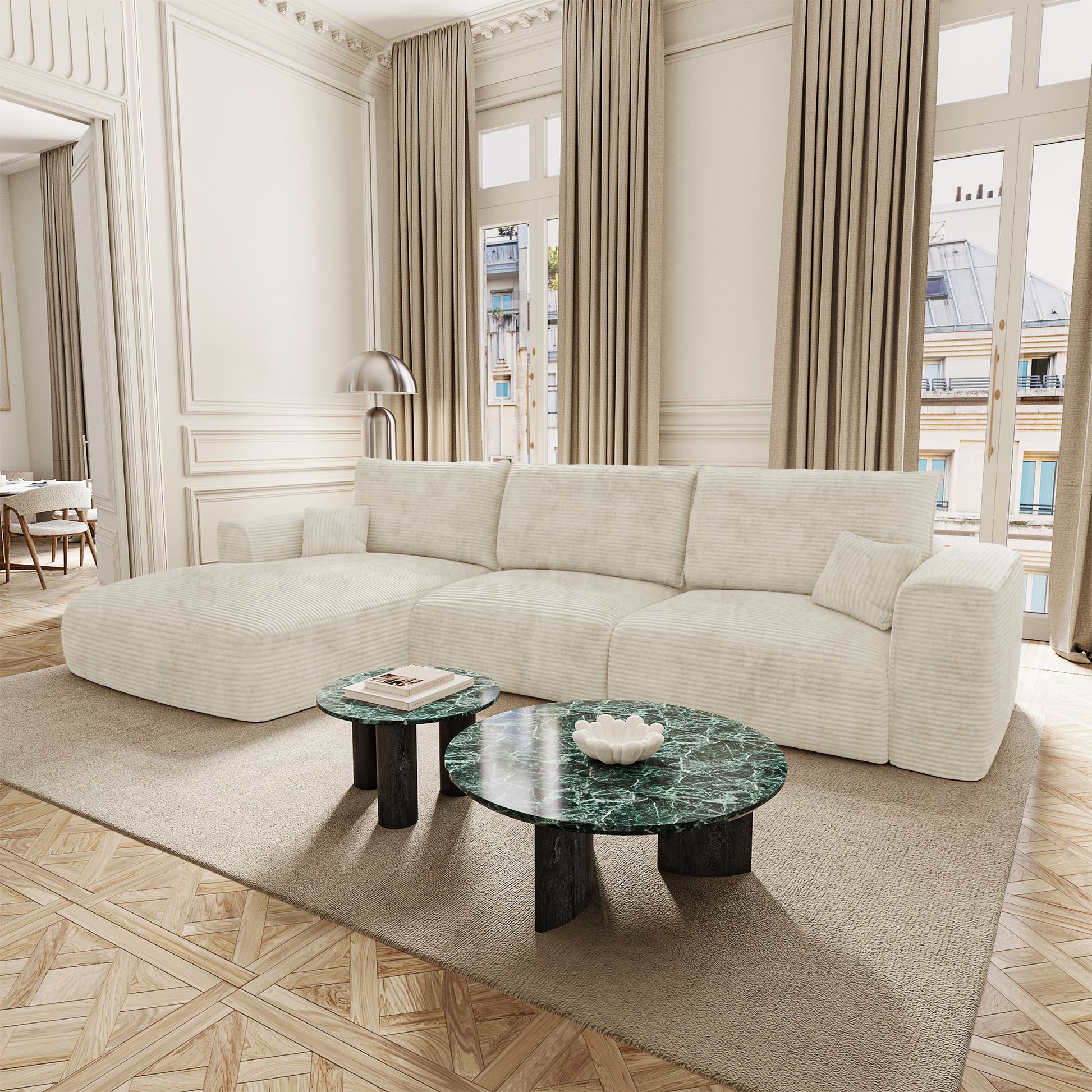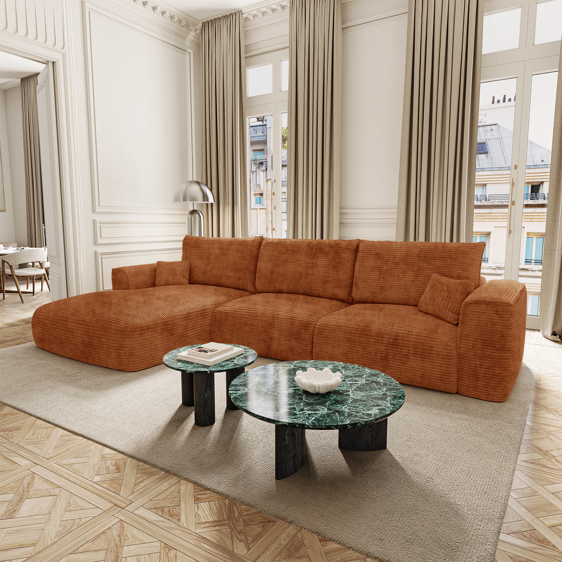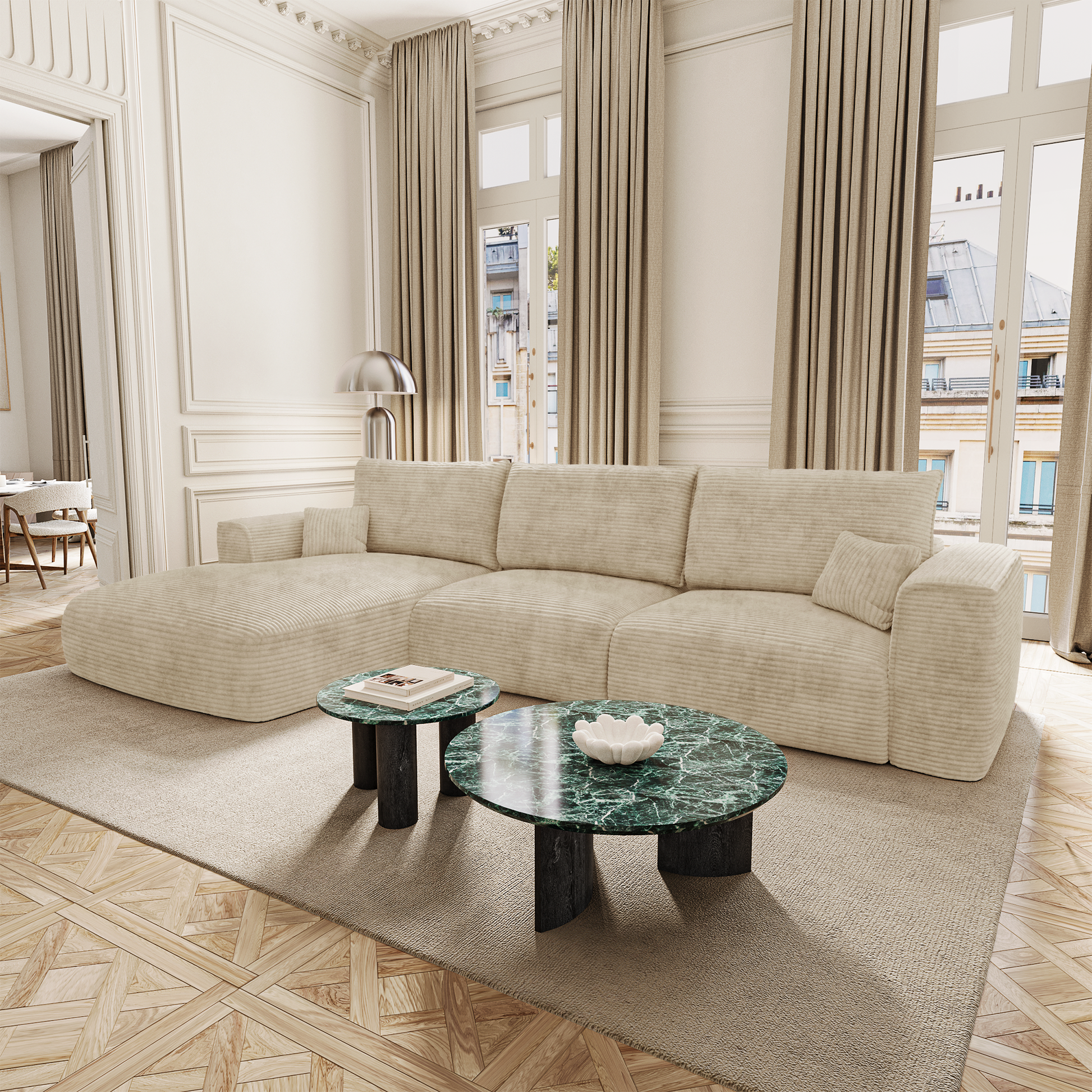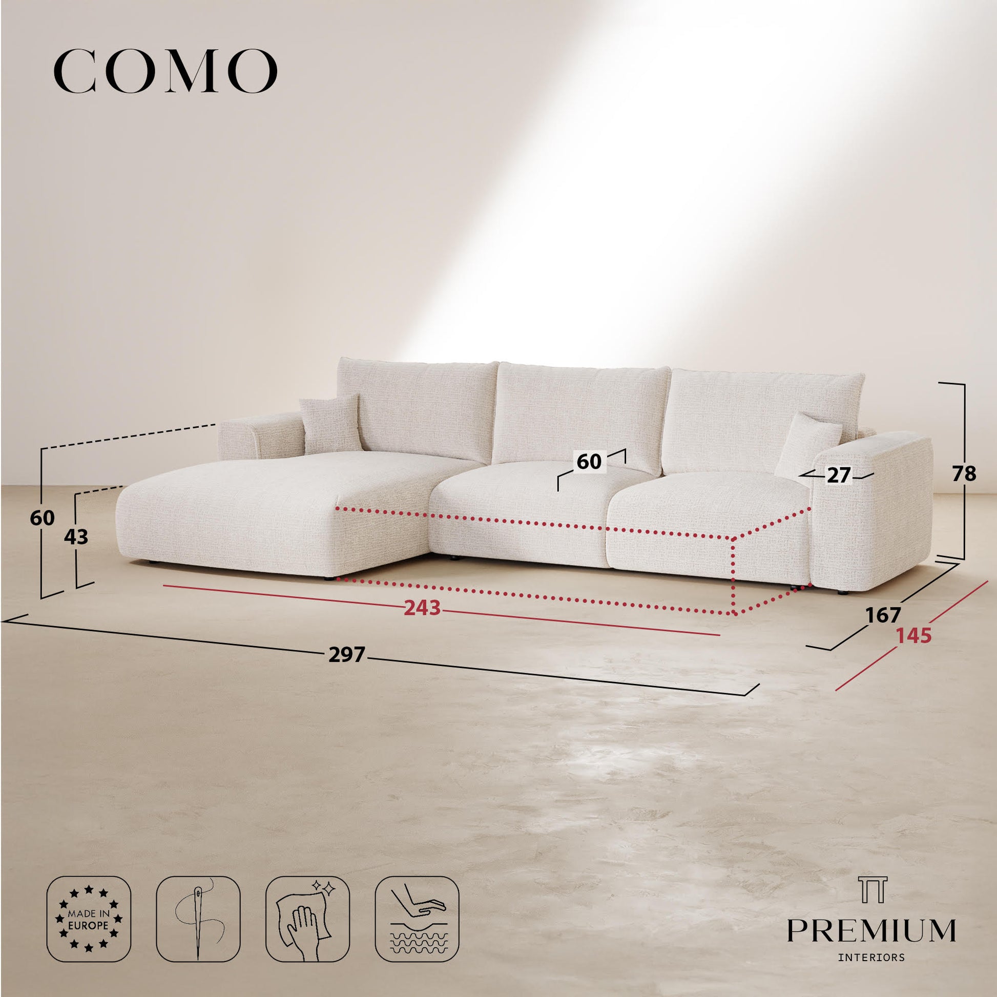 Côté design, COMO conserve les lignes douces et généreuses qui font l’identité de la collection. Ses accoudoirs larges, sa profondeur accueillante et sa silhouette harmonieuse en font un modèle aussi esthétique que fonctionnel. Il trouve naturellement sa place dans un intérieur élégant, qu’il soit contemporain, bohème ou classique.