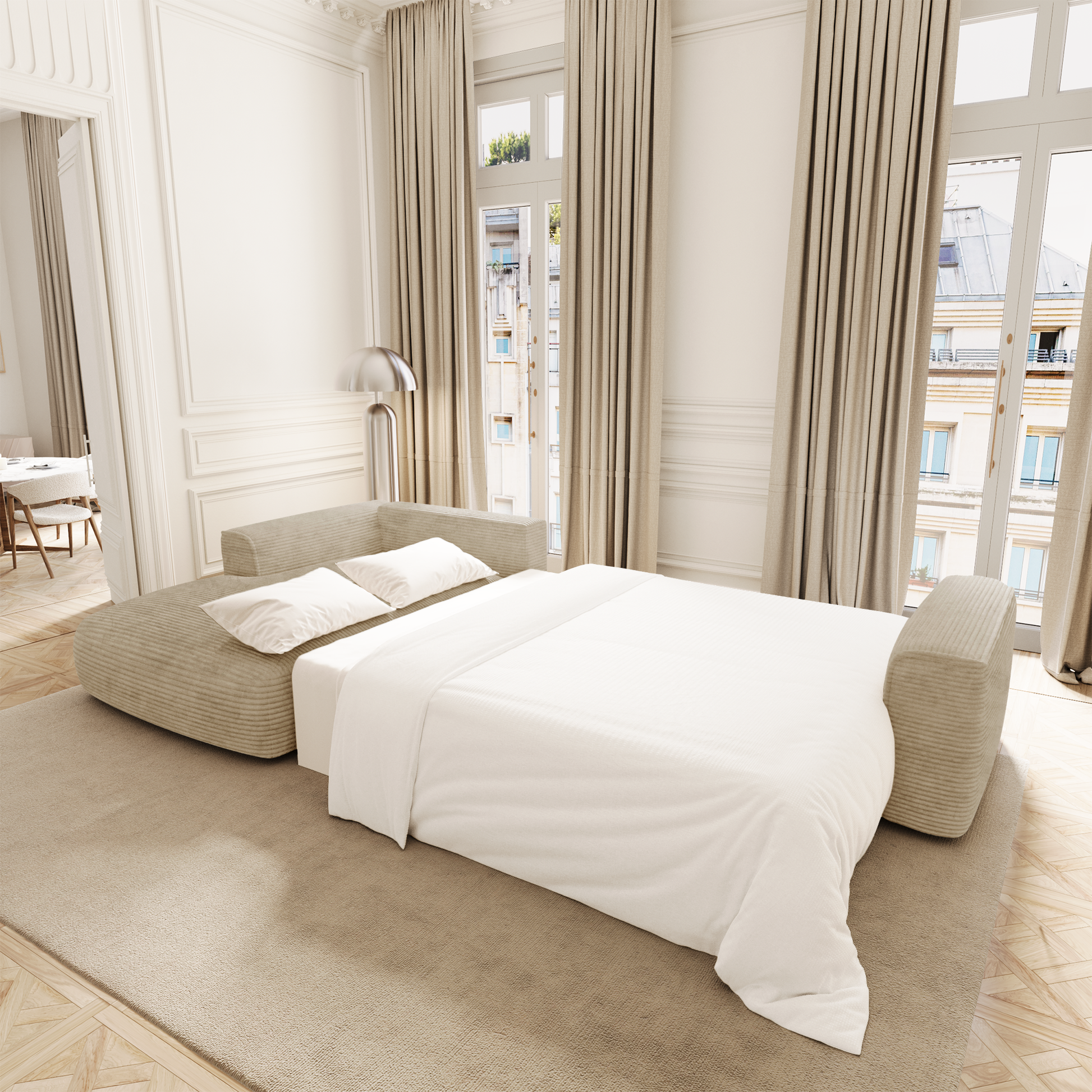 Le canapé COMO est pensé pour ceux qui recherchent à la fois style et praticité. Avec sa fonction convertible et son coffre de rangement dissimulé sous l’assise, il s’adapte à tous les rythmes de vie sans jamais sacrifier l’élégance.