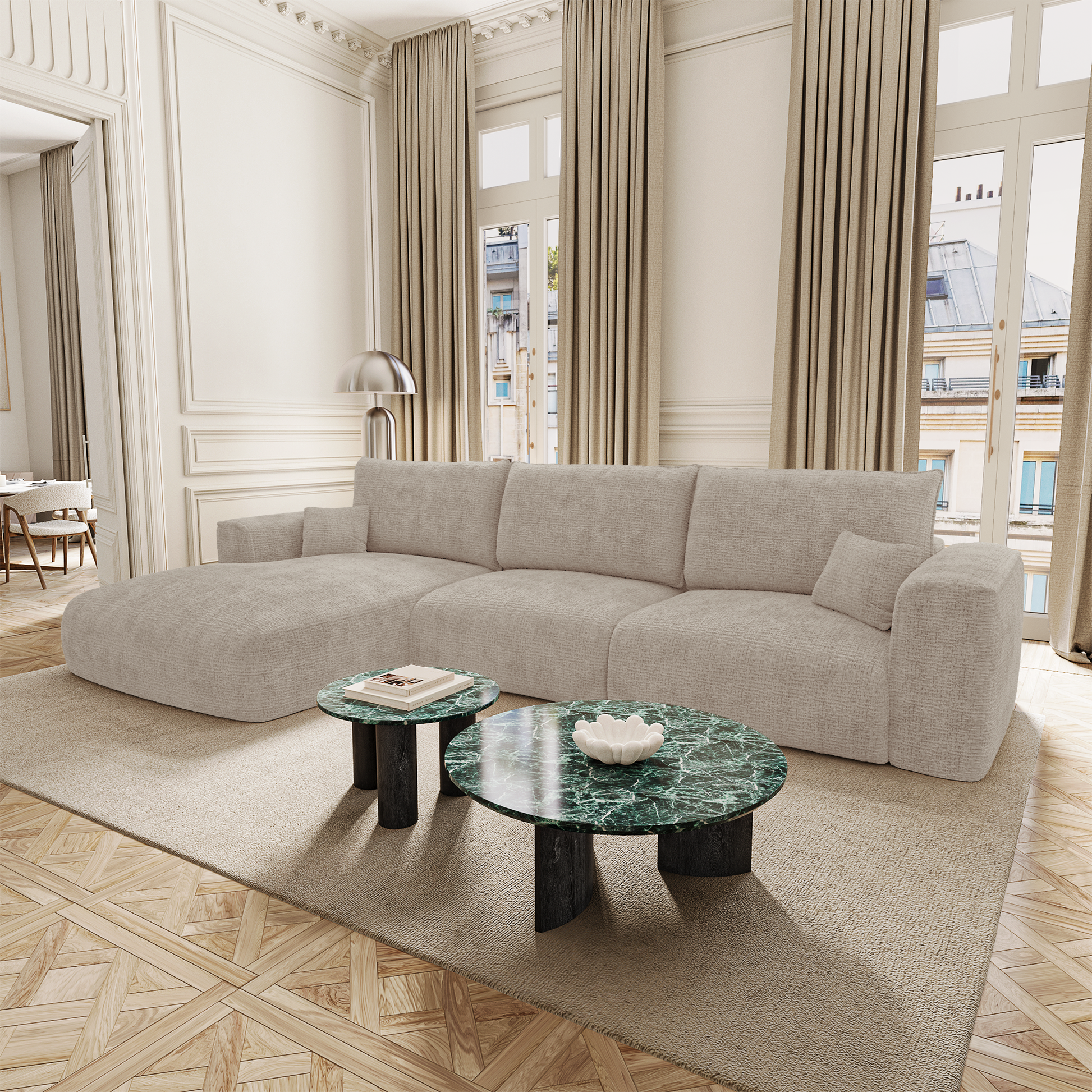 Le canapé COMO est pensé pour ceux qui recherchent à la fois style et praticité. Avec sa fonction convertible et son coffre de rangement dissimulé sous l’assise, il s’adapte à tous les rythmes de vie sans jamais sacrifier l’élégance.