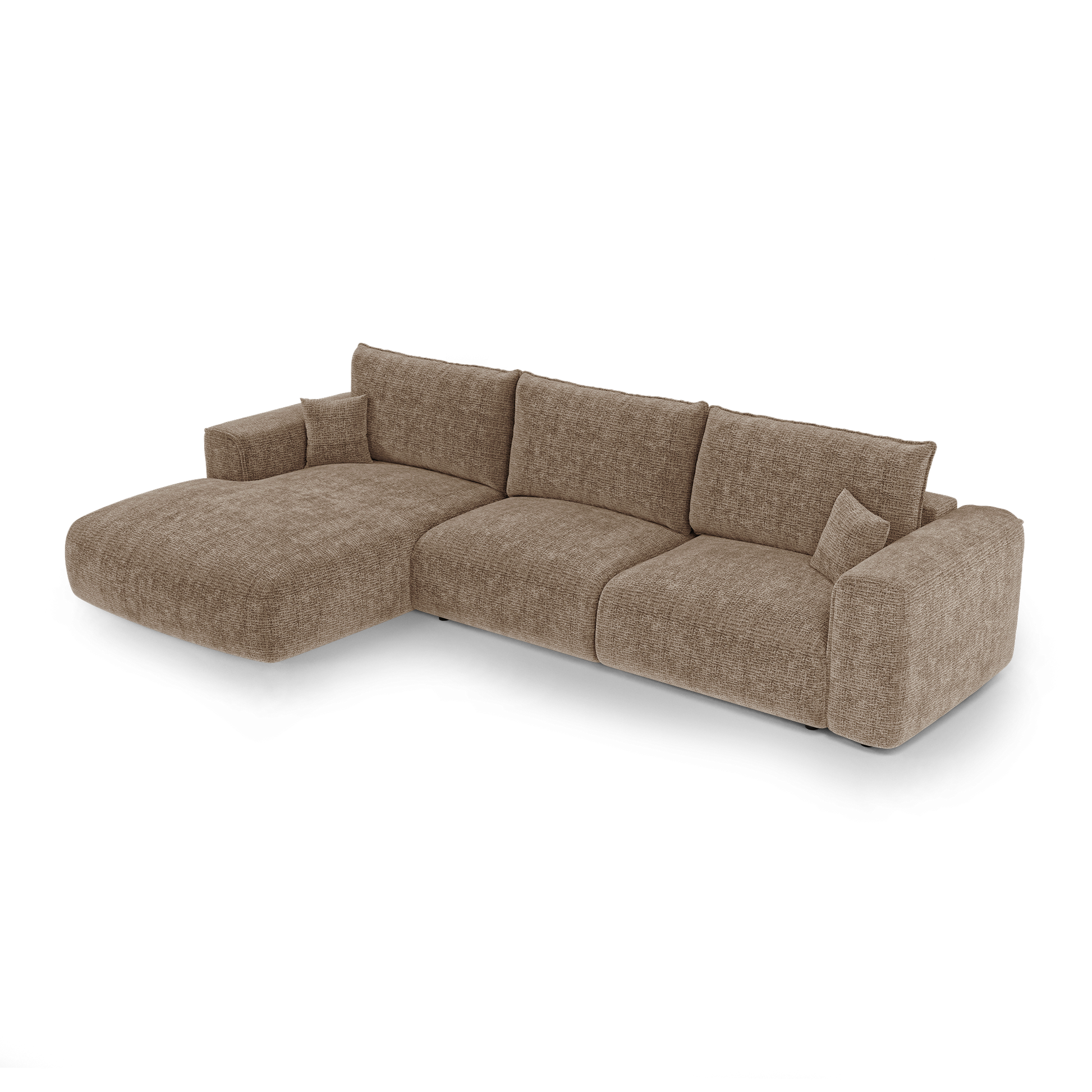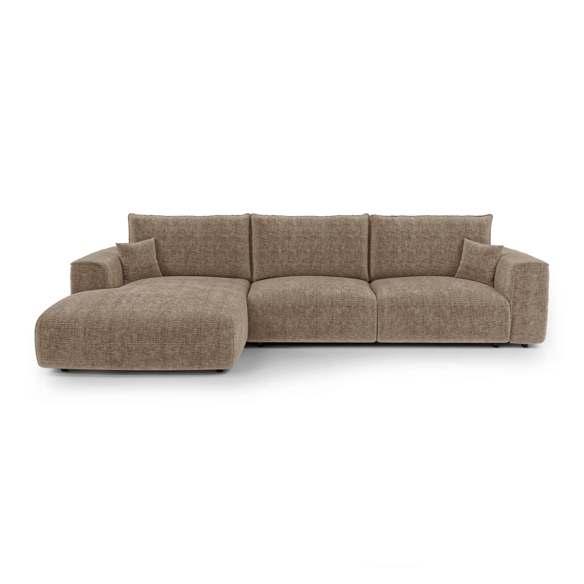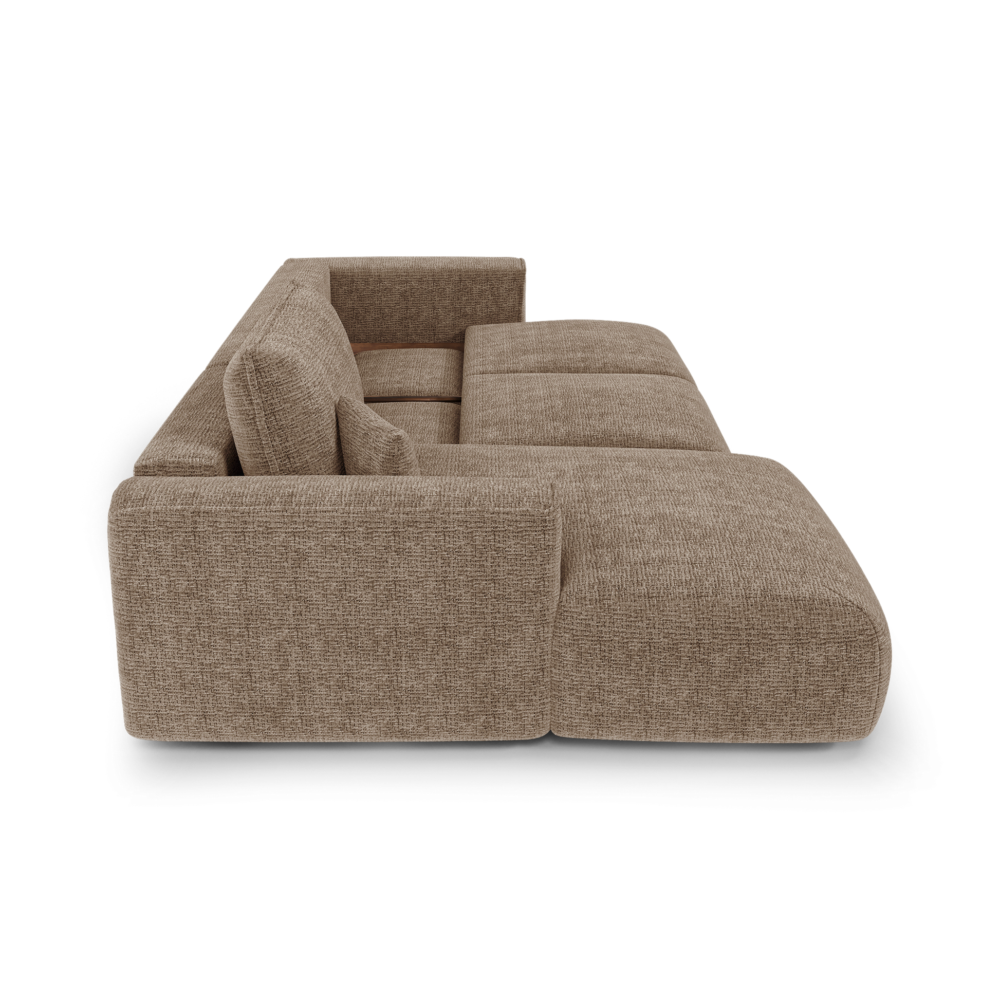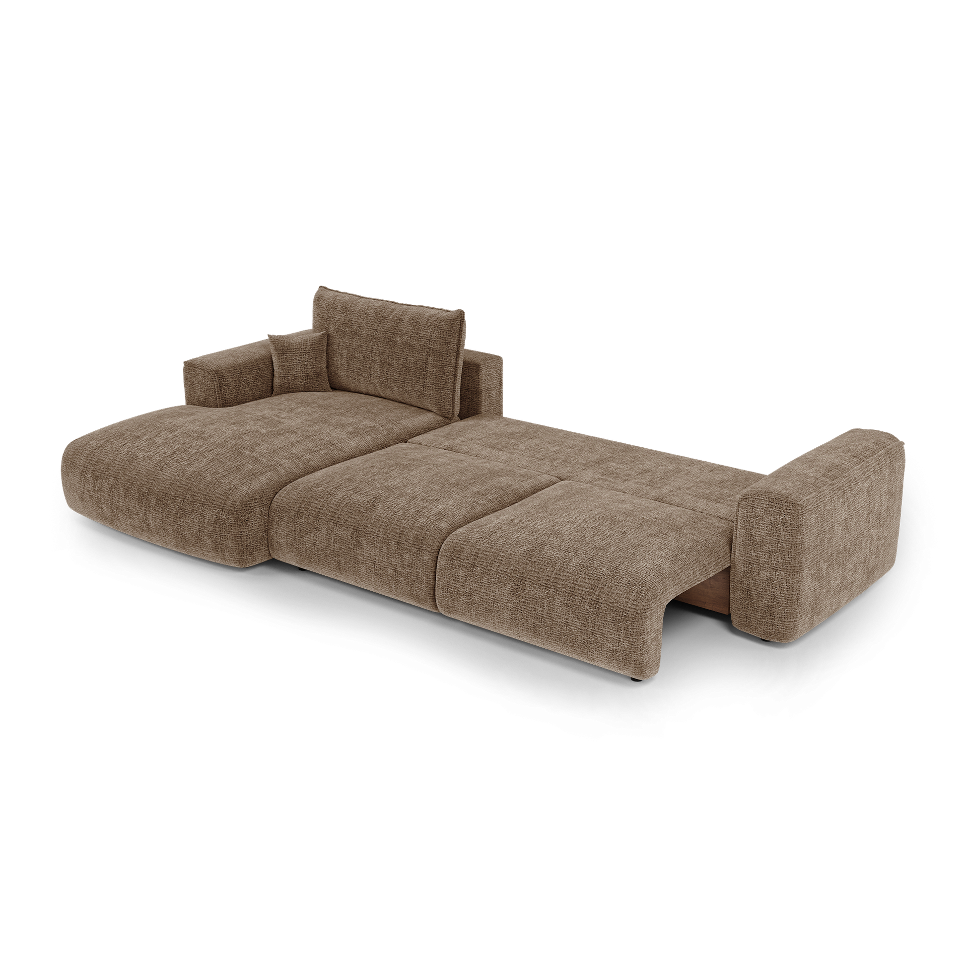 Canapé angle gauche convertible avec coffre noyer COMO Tissu tramé toucher doux