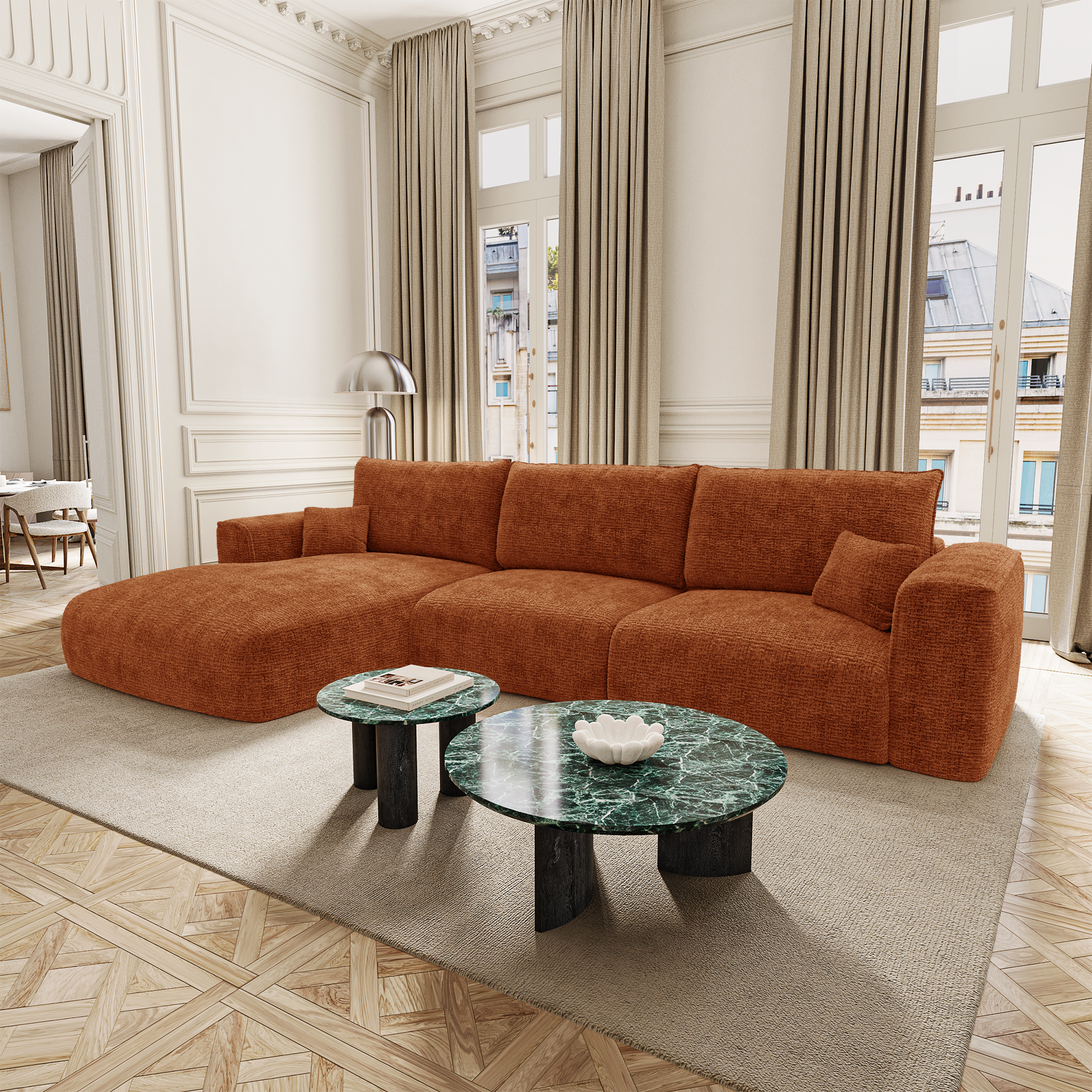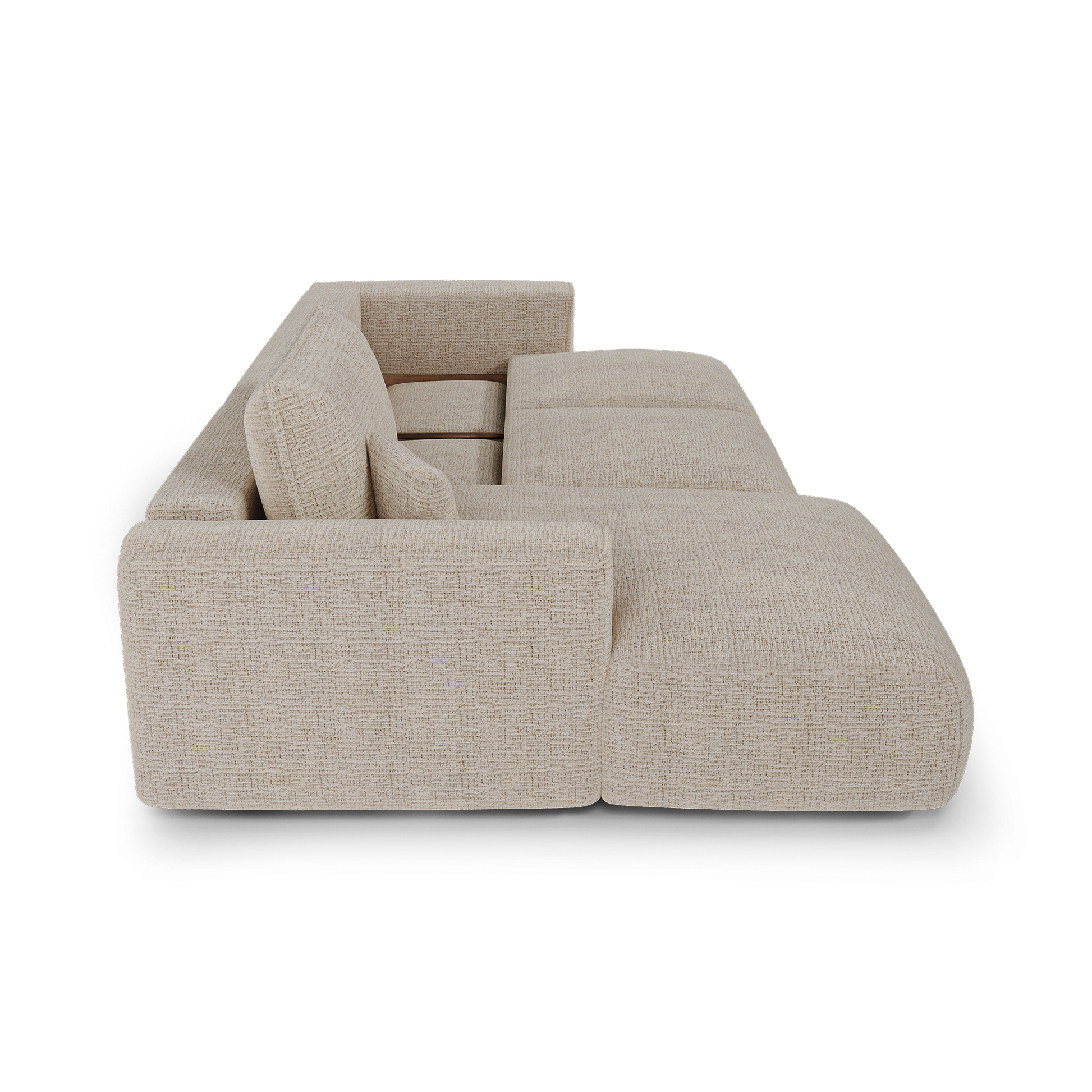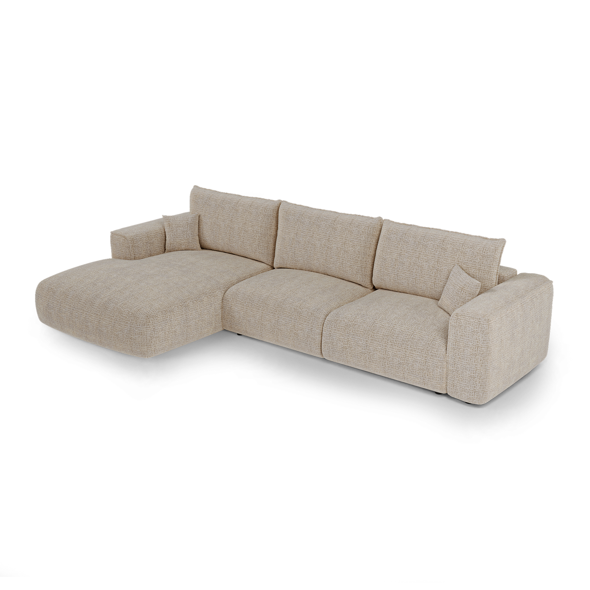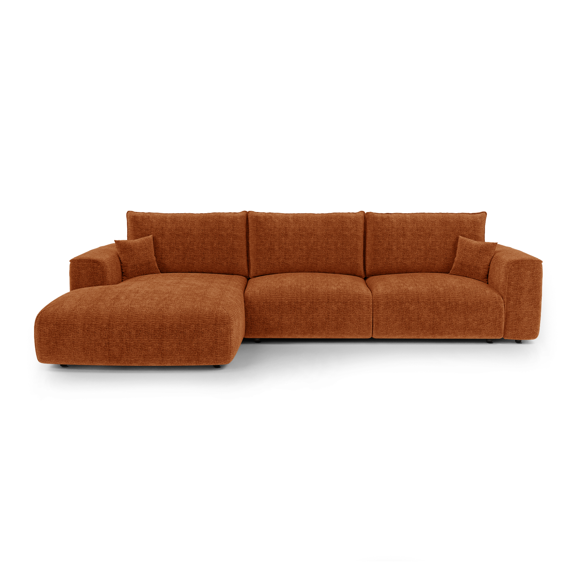 Canapé angle gauche convertible avec coffre noyer COMO Tissu tramé toucher doux
