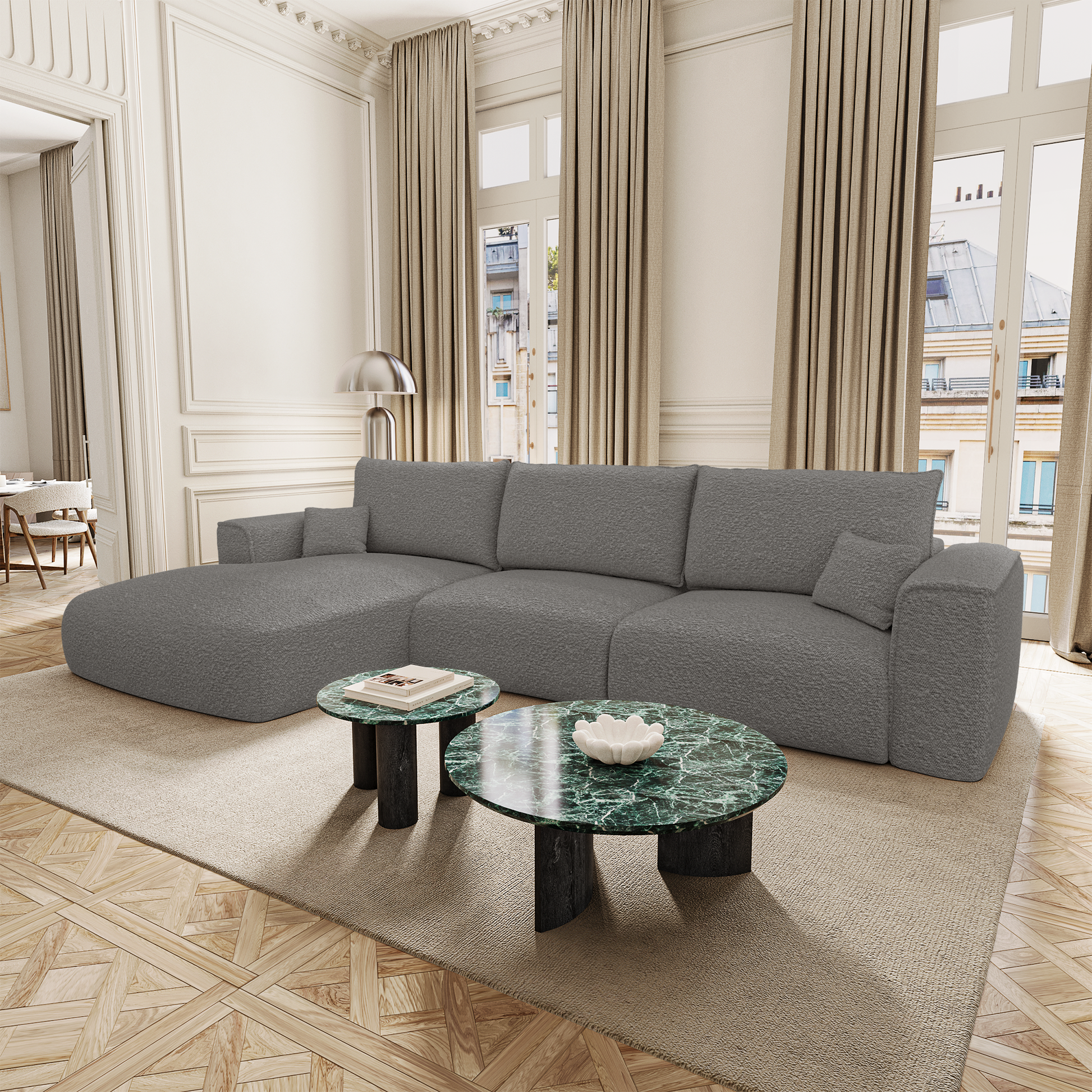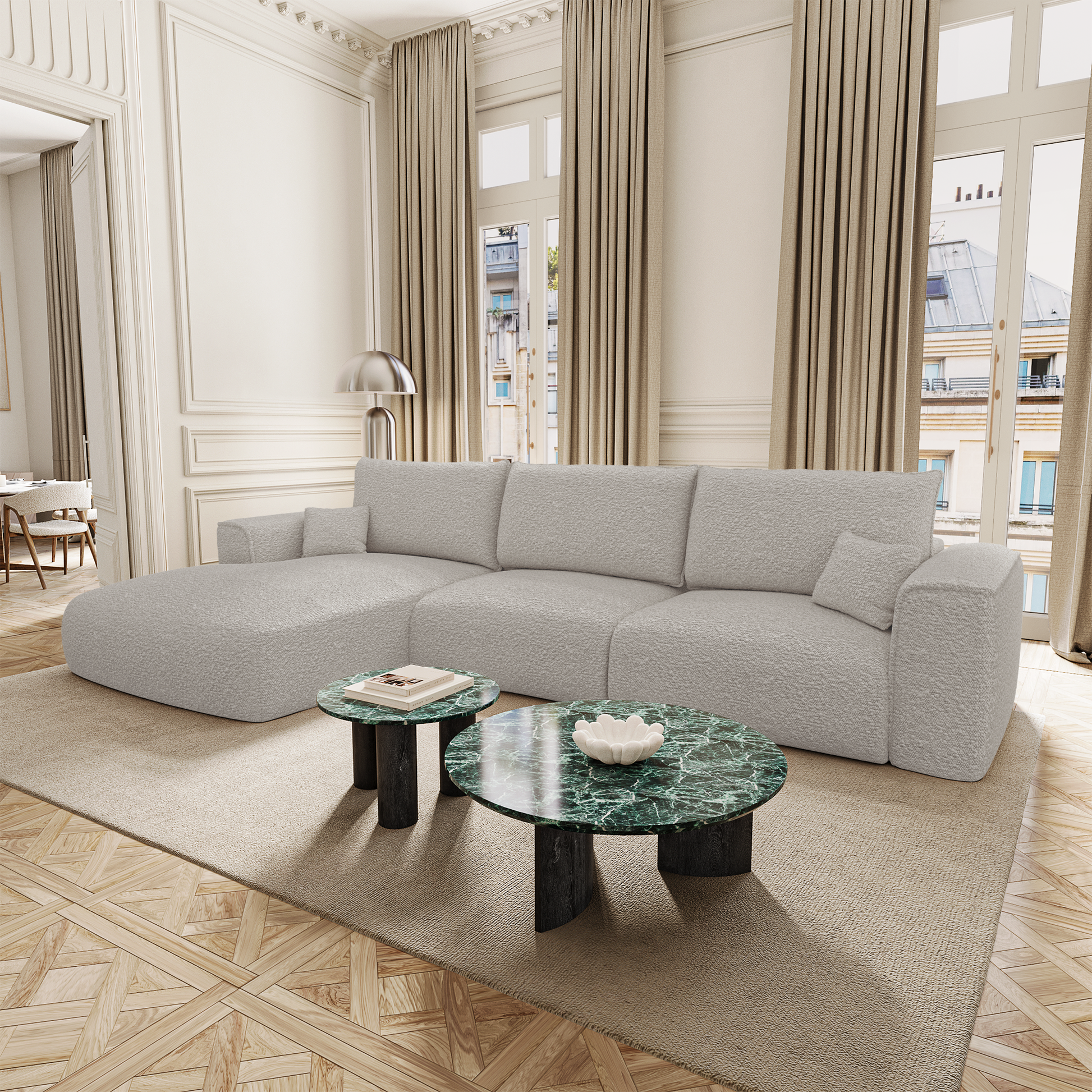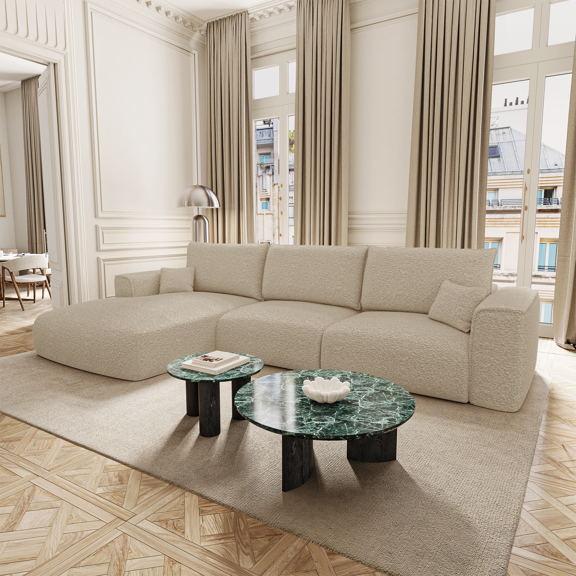 Côté design, COMO conserve les lignes douces et généreuses qui font l’identité de la collection. Ses accoudoirs larges, sa profondeur accueillante et sa silhouette harmonieuse en font un modèle aussi esthétique que fonctionnel. Il trouve naturellement sa place dans un intérieur élégant, qu’il soit contemporain, bohème ou classique.
