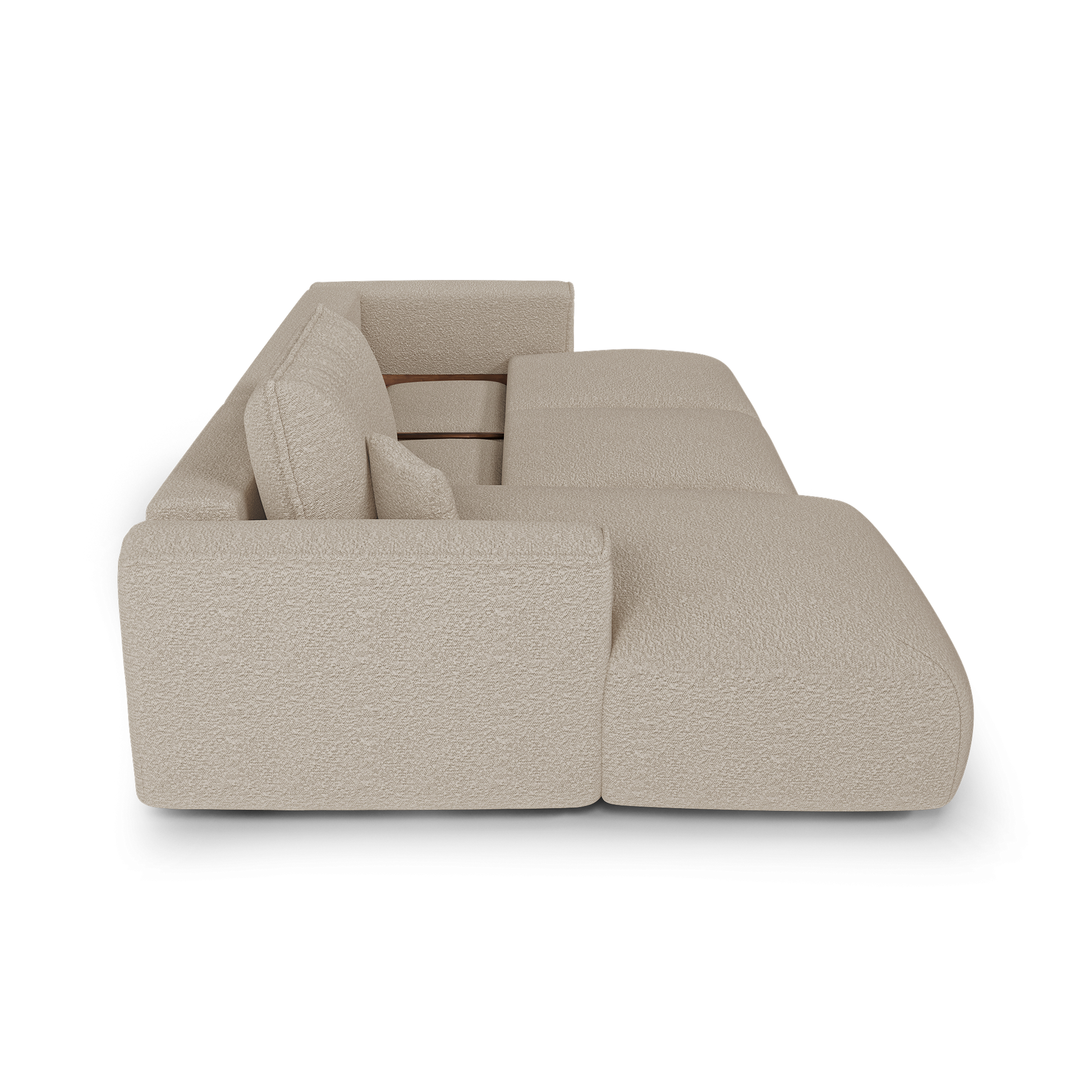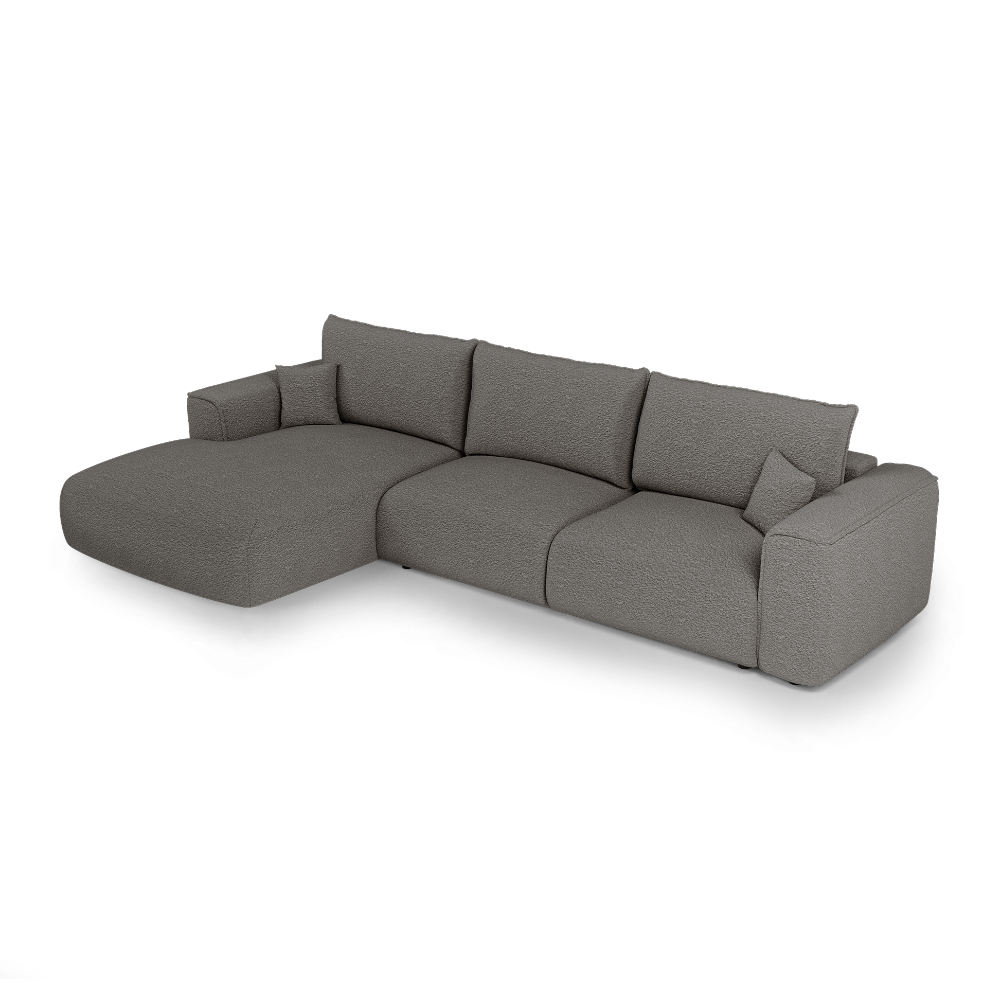 Canapé angle gauche convertible avec coffre noyer COMO Tissu bouclette