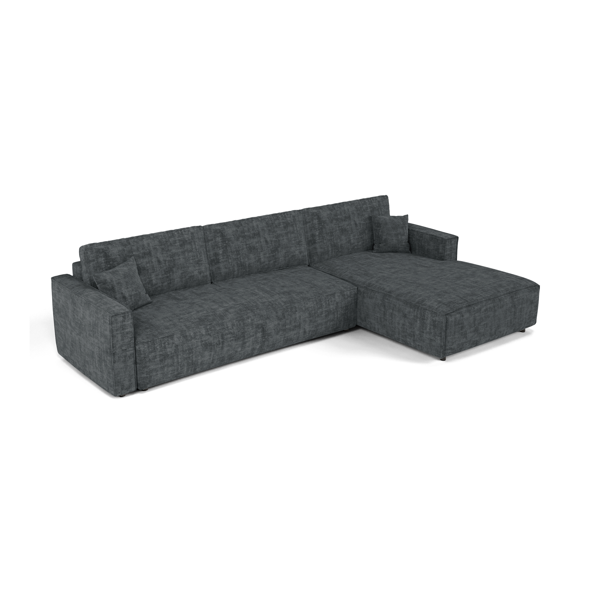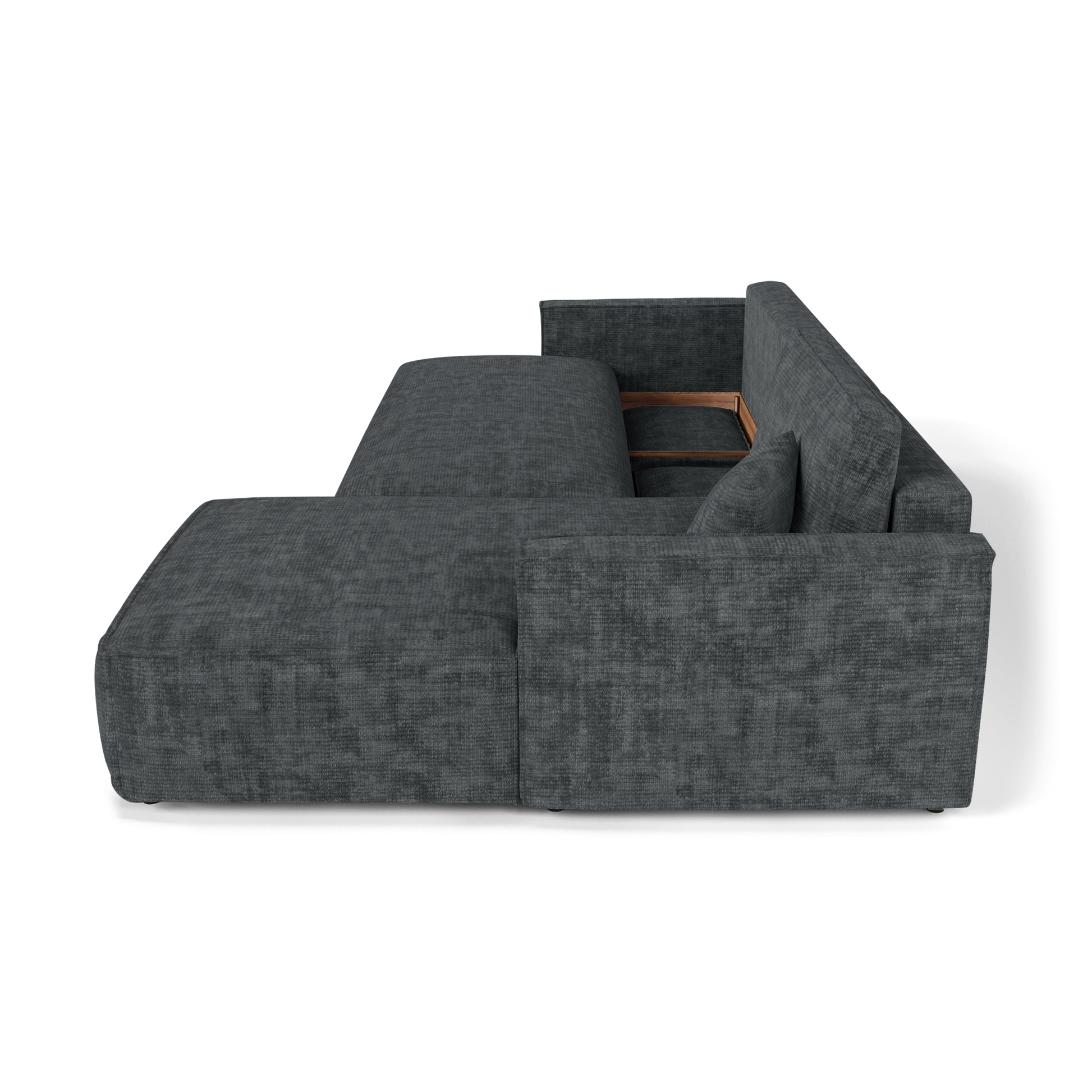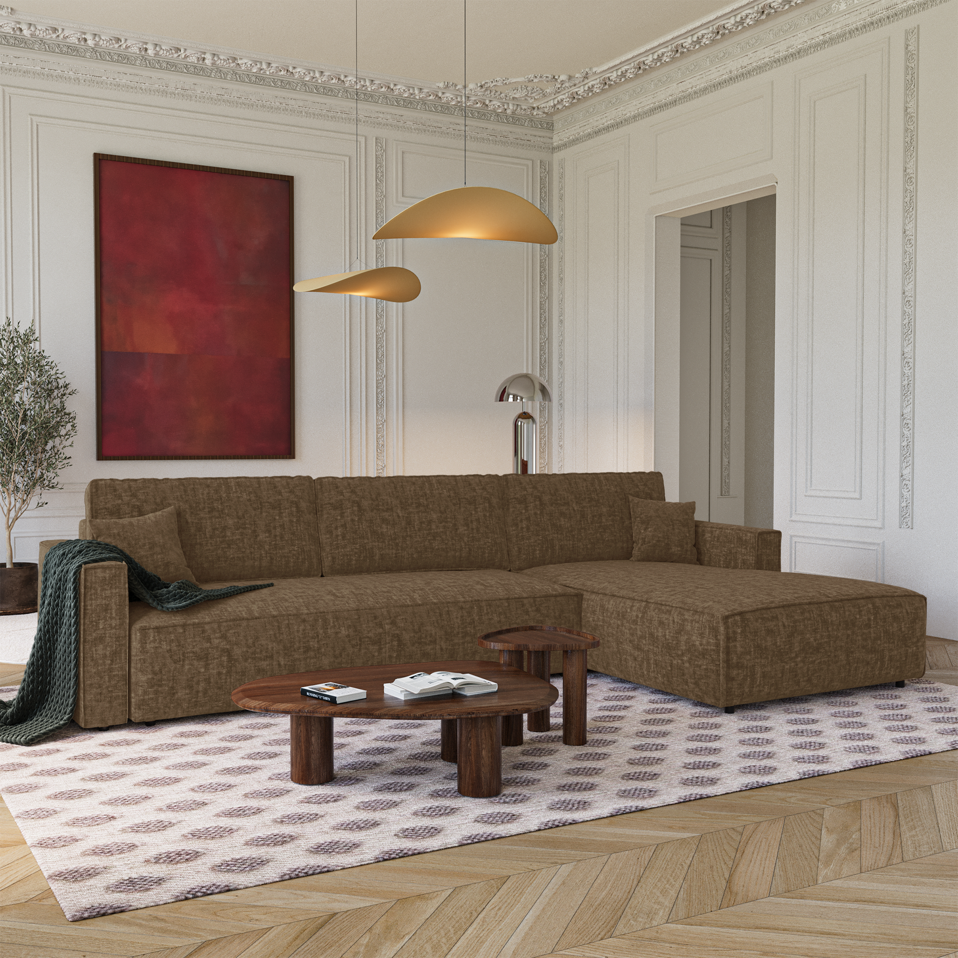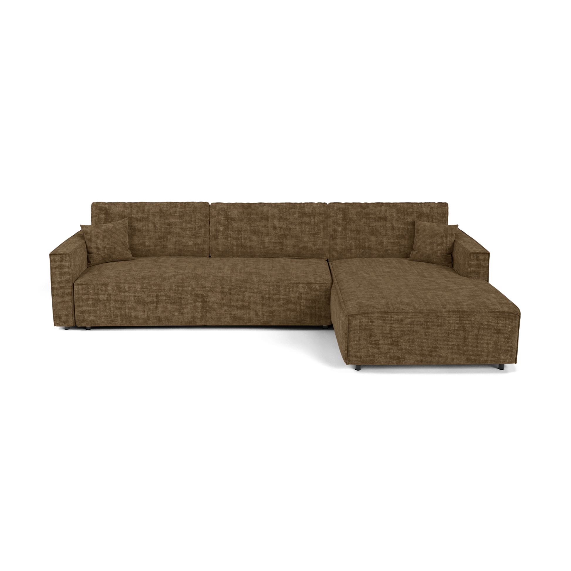Canapé d'angle droit convertible avec coffre noyer KELY Velours texturé