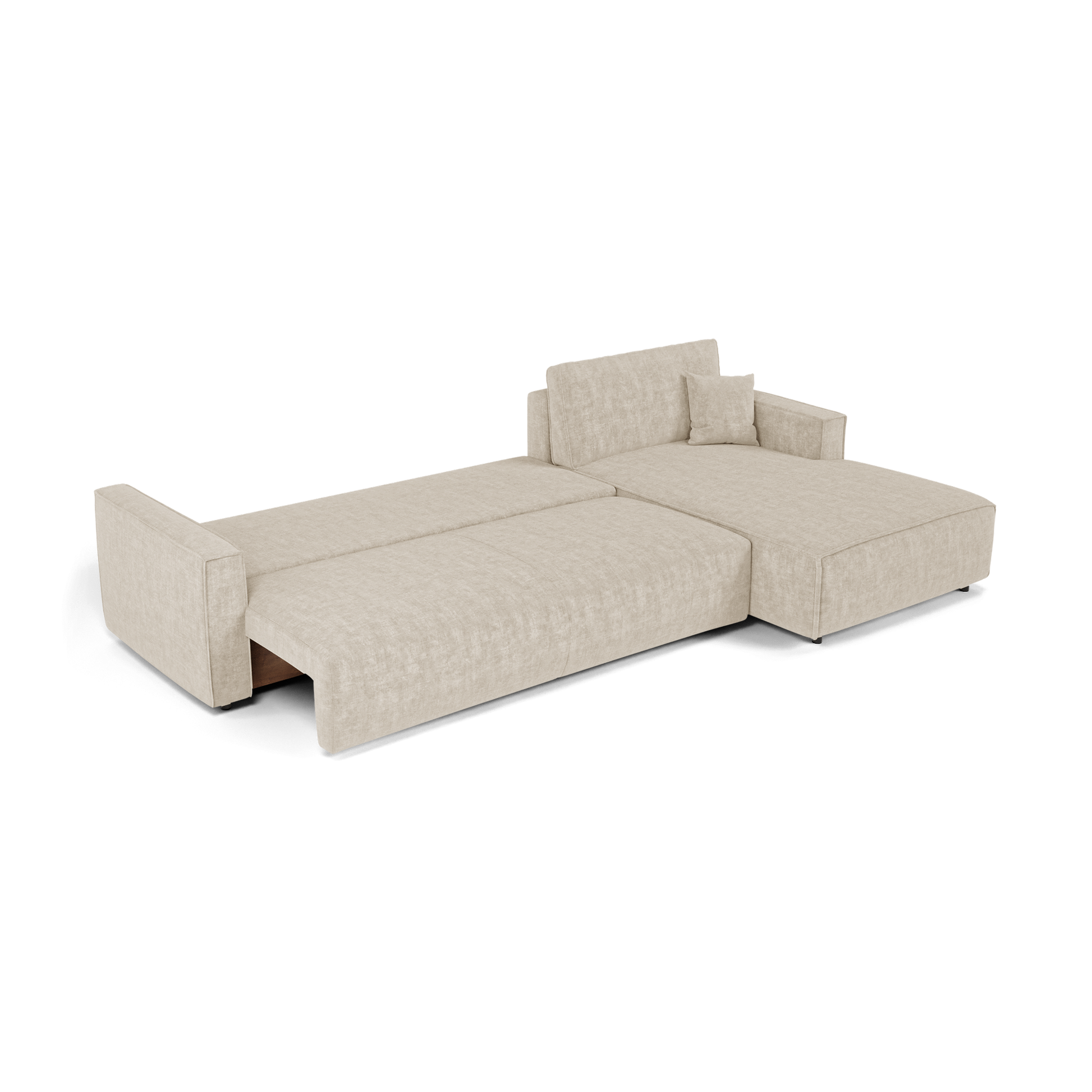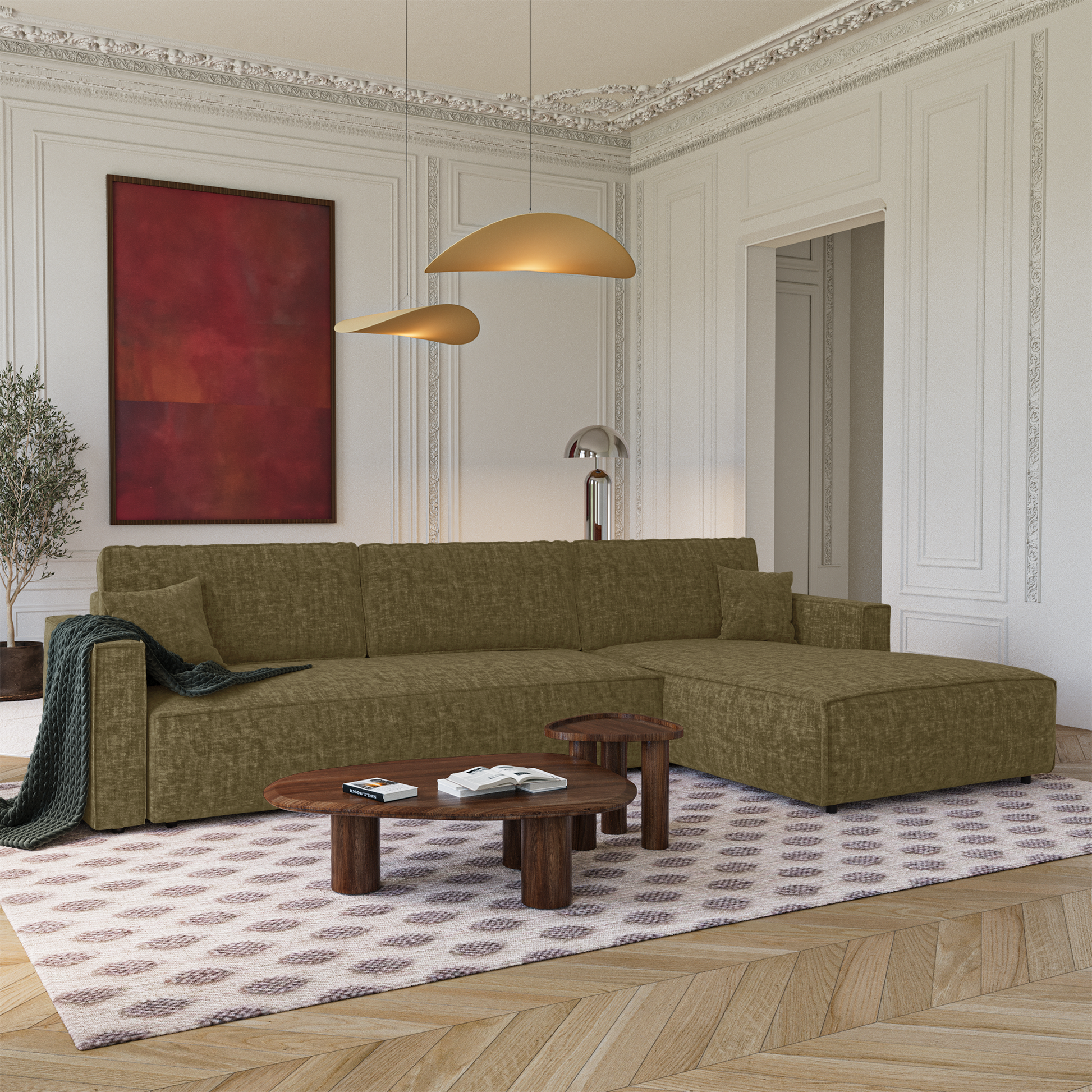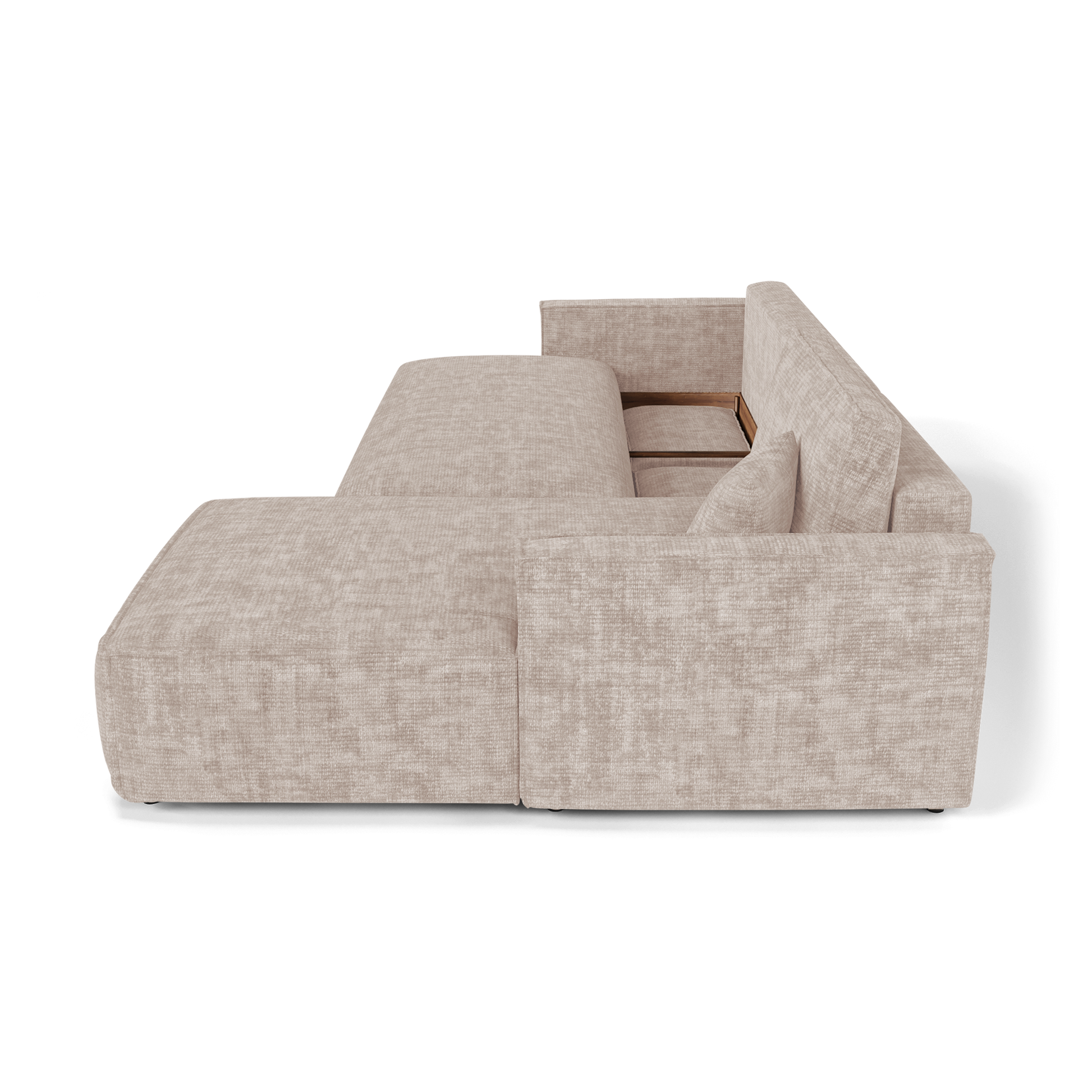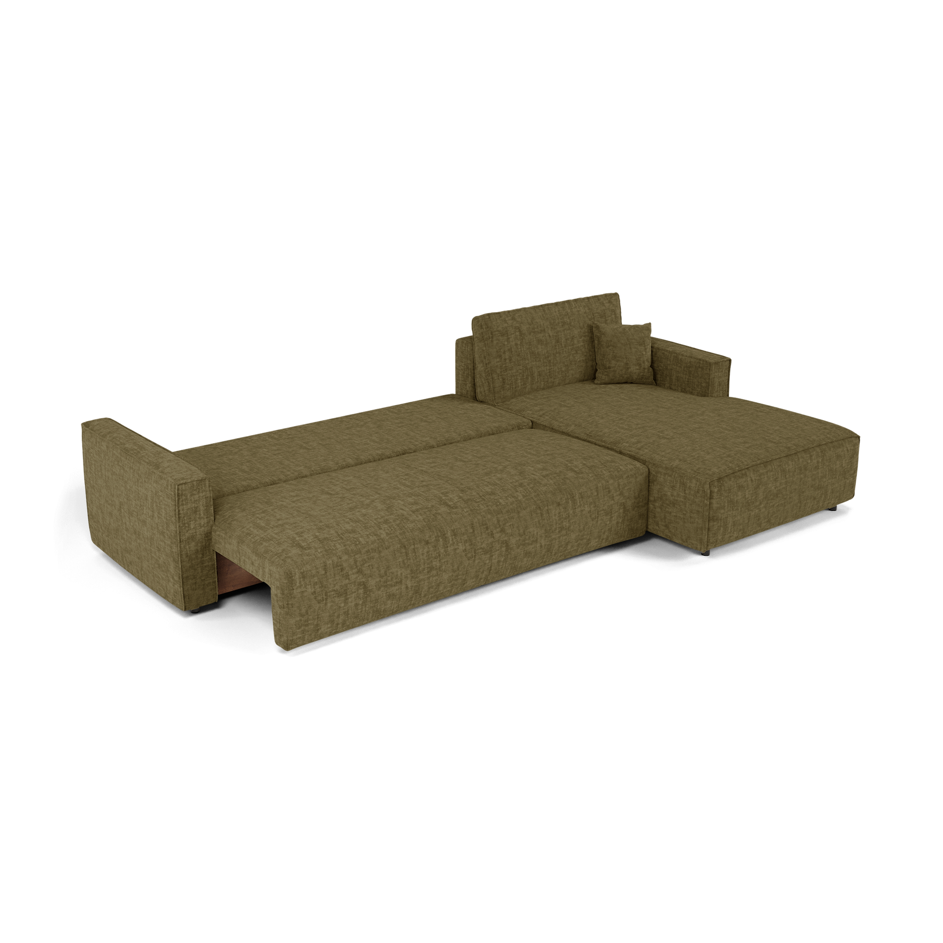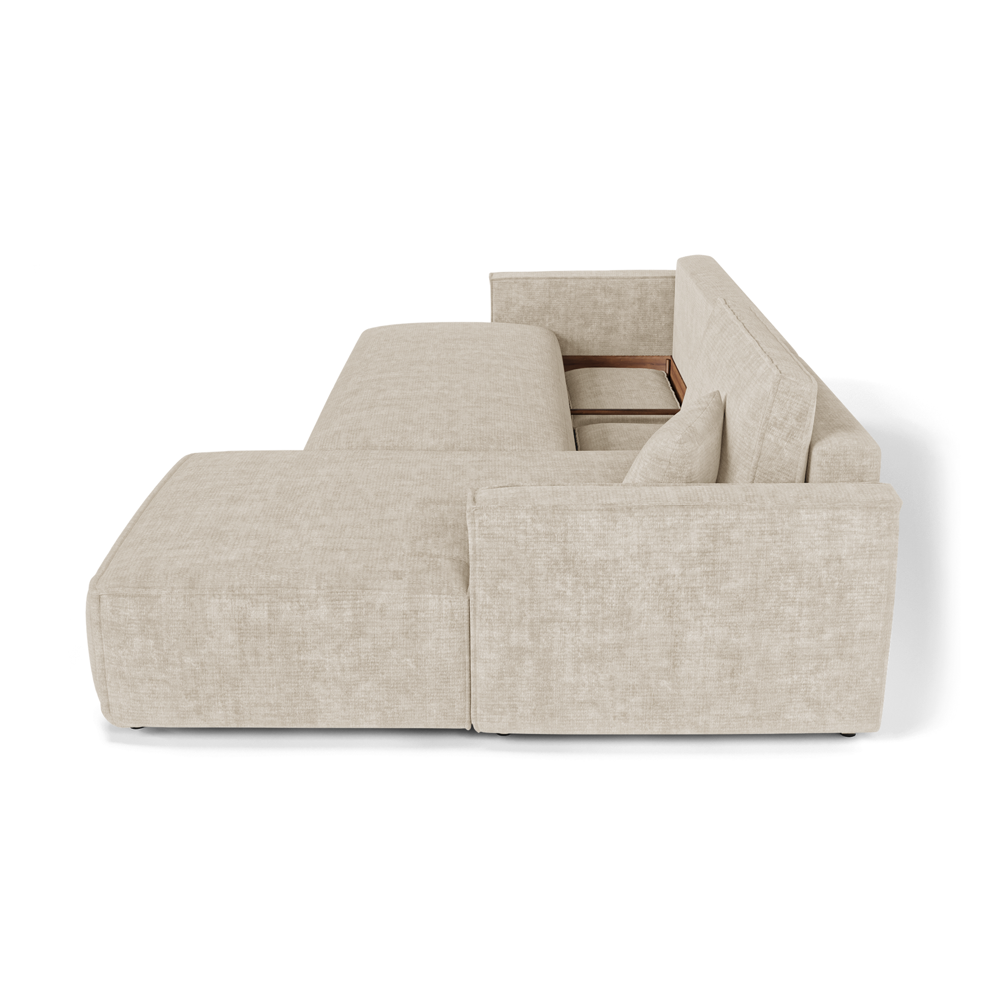 Canapé d'angle droit convertible avec coffre noyer KELY Velours texturé