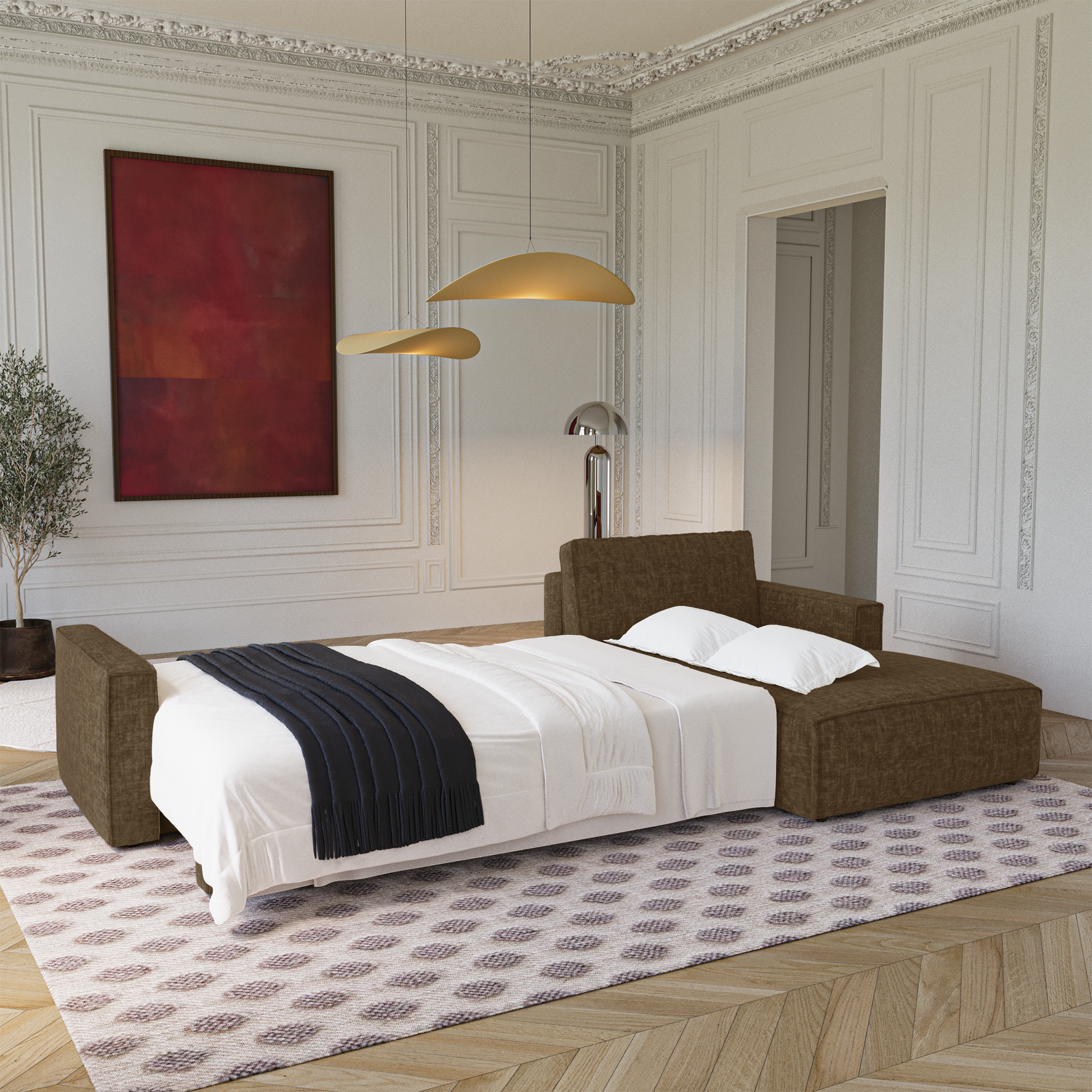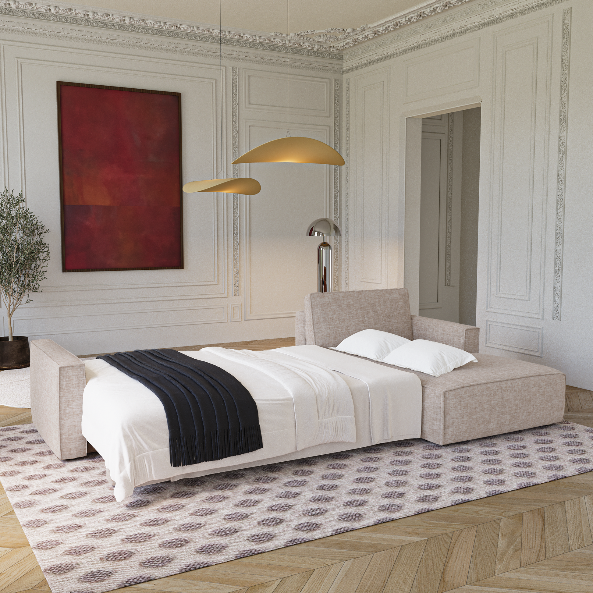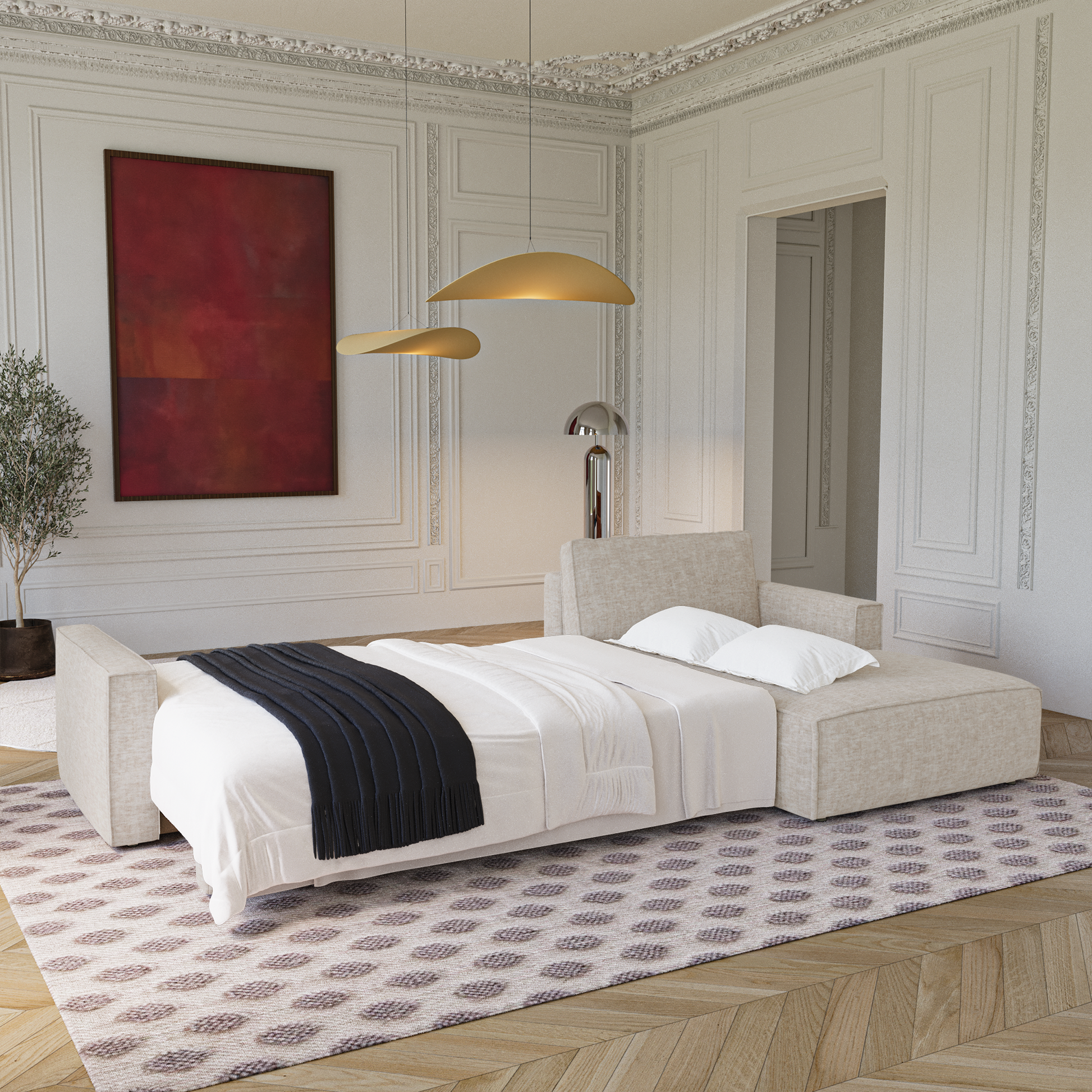Derrière son apparente simplicité, KELY intègre un couchage d’appoint pratique et confortable, idéal pour accueillir des invités. Le système convertible se déploie facilement, permettant une transformation fluide du canapé en lit en quelques gestes. Parfait pour les petits espaces ou les intérieurs modulables, il vous accompagne dans tous les moments de vie.