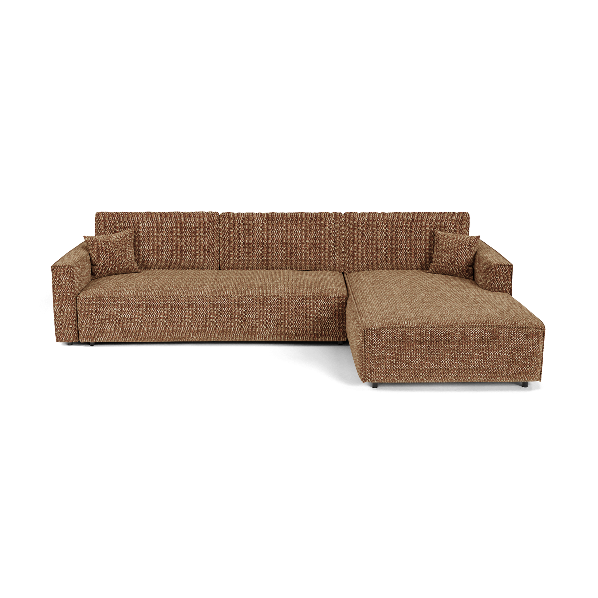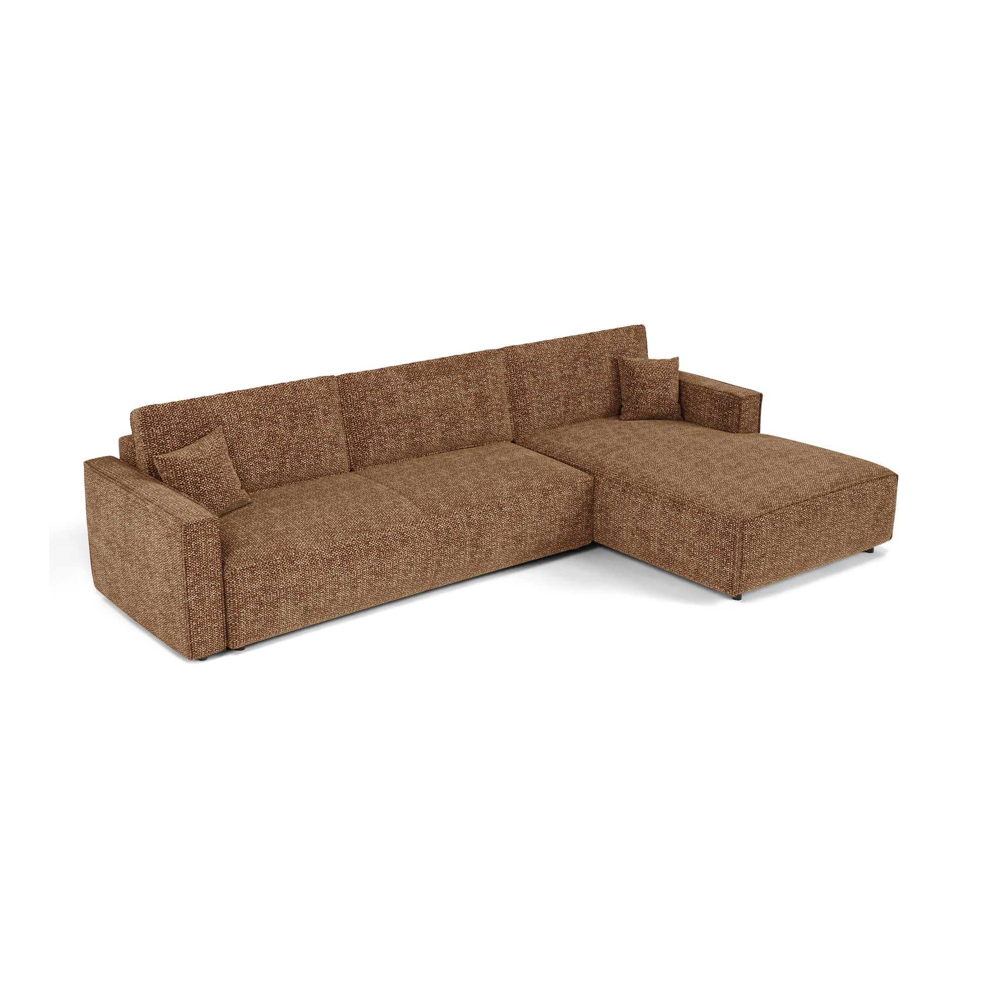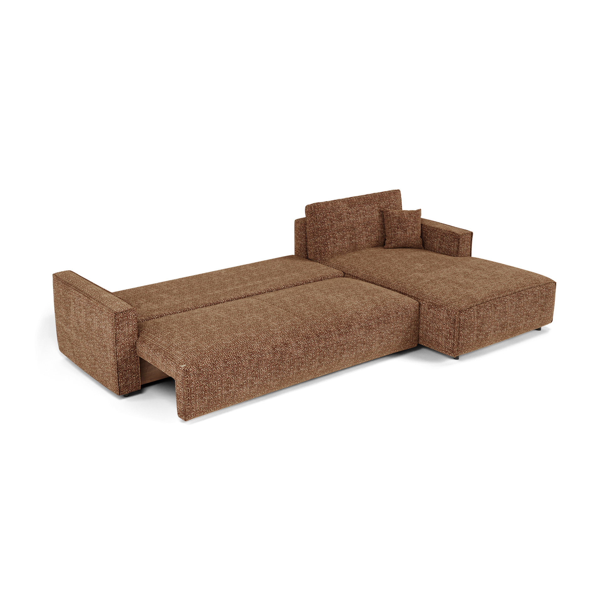 Canapé d'angle droit convertible avec coffre noyer KELY Tissu effet tweed