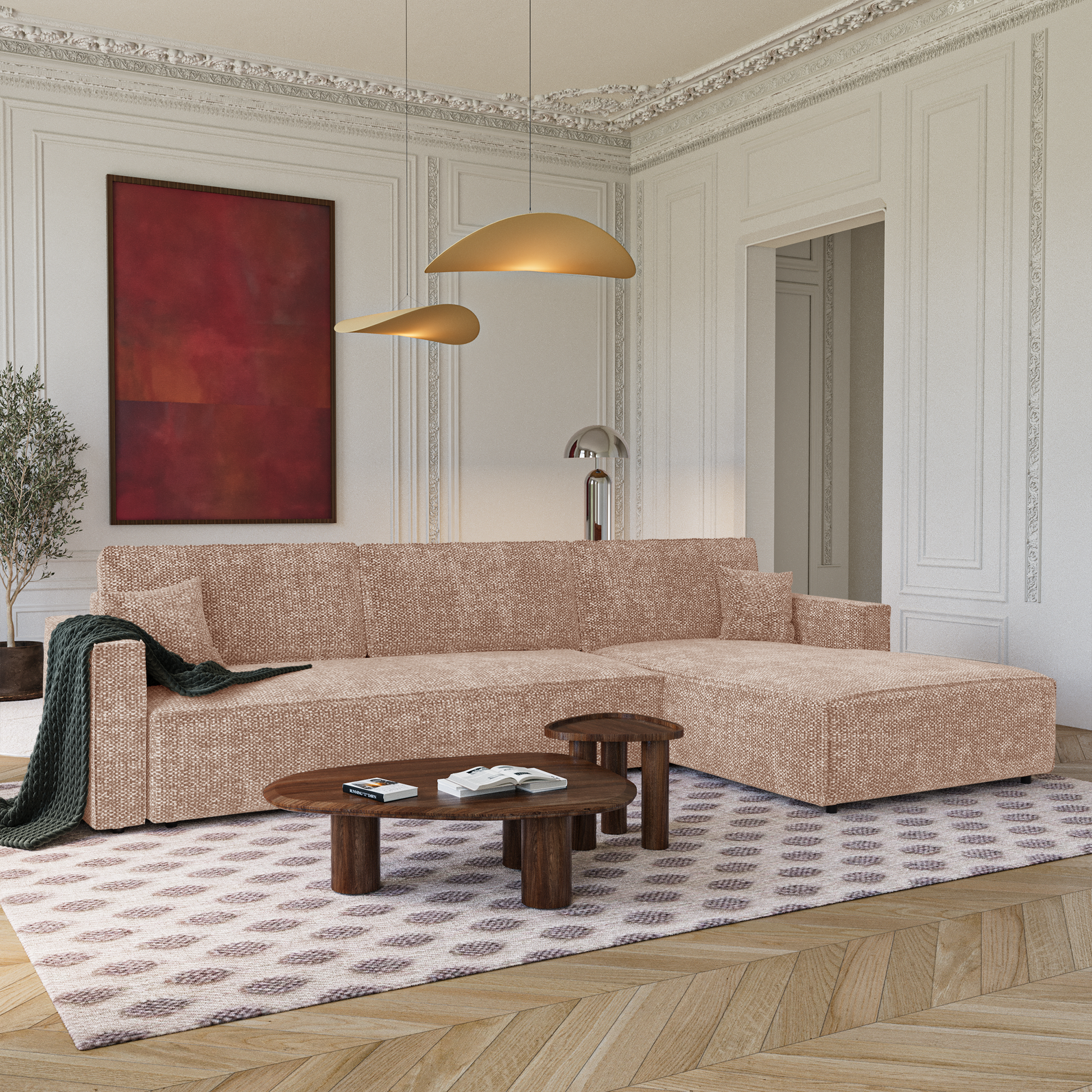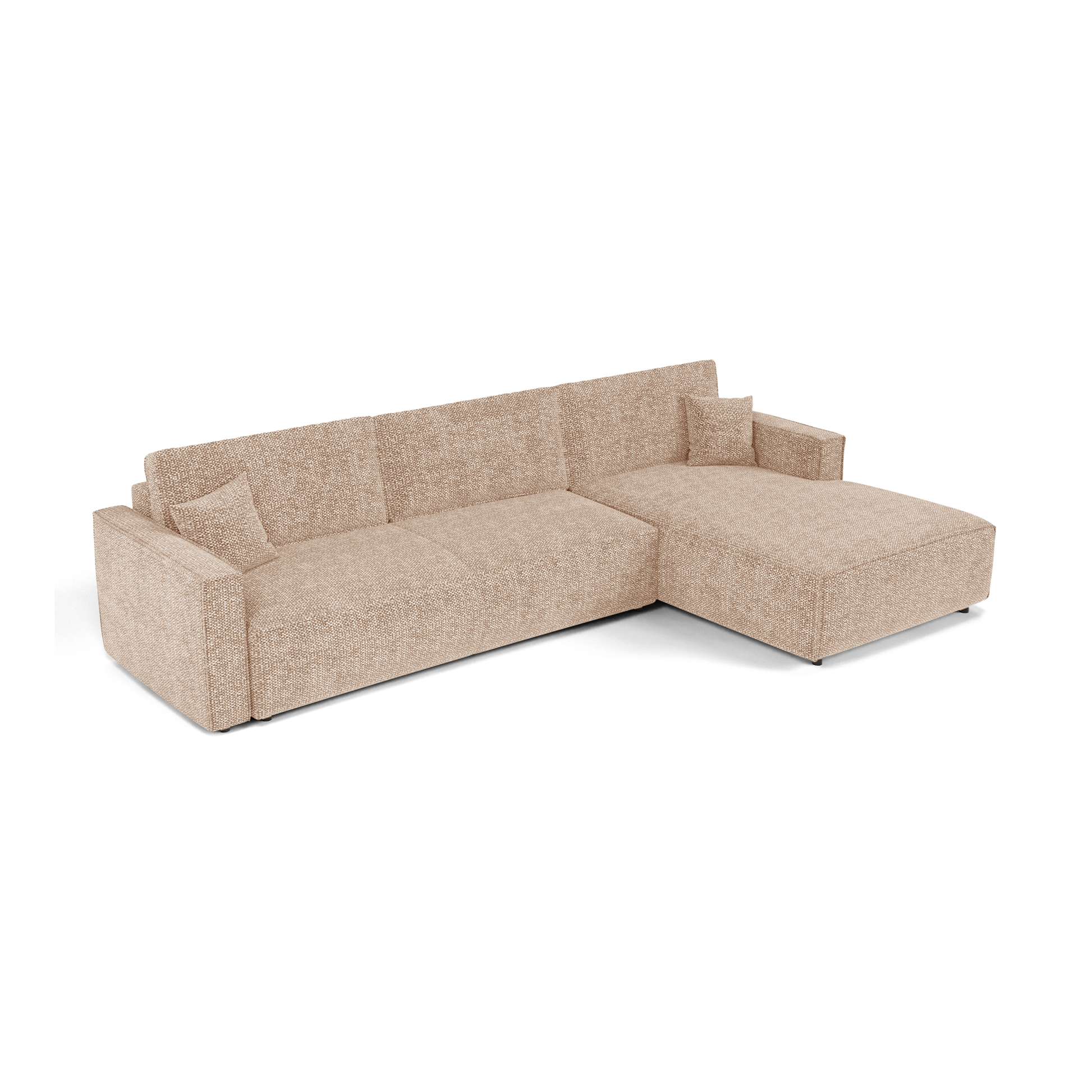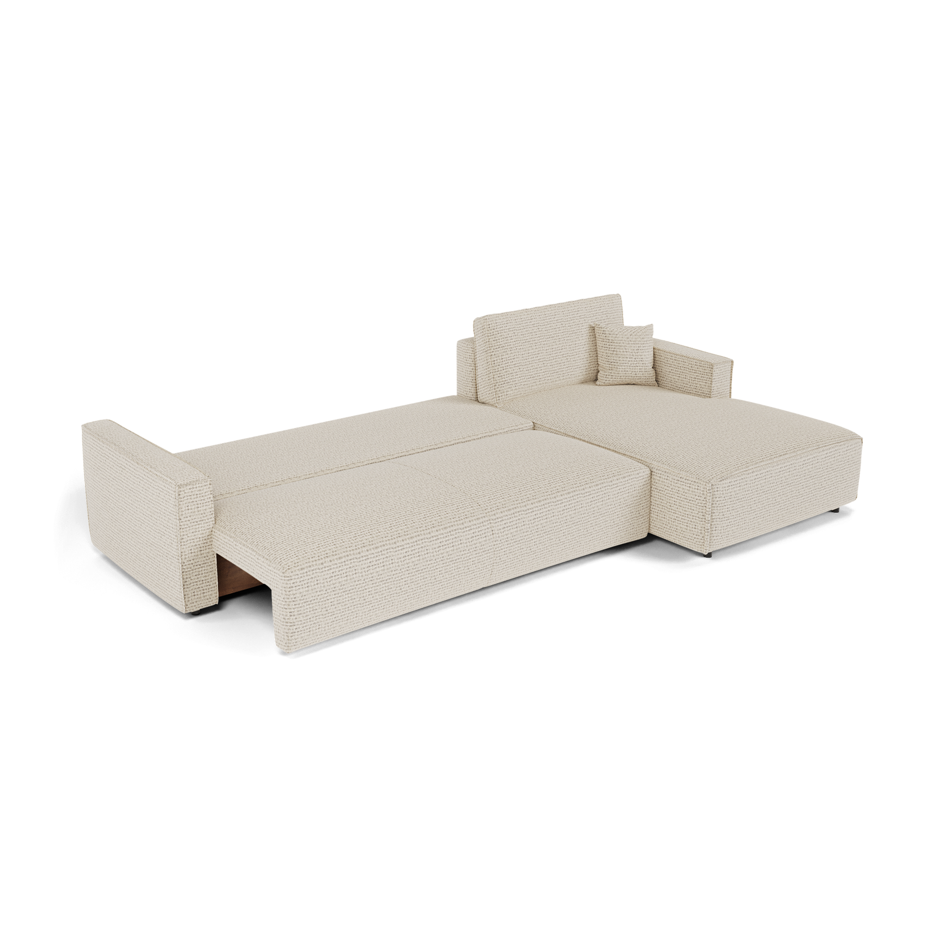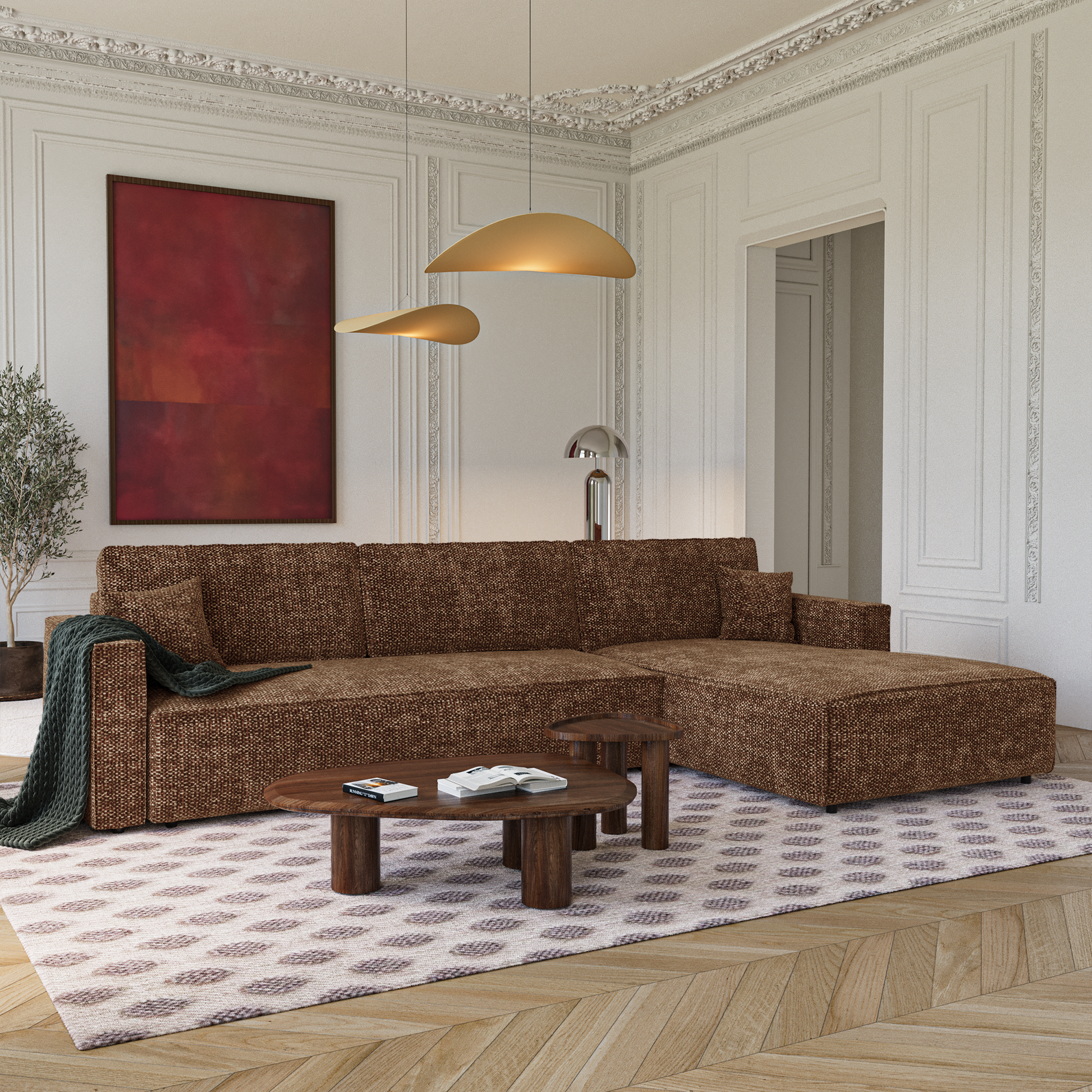 Canapé d'angle droit convertible avec coffre noyer KELY Tissu effet tweed
