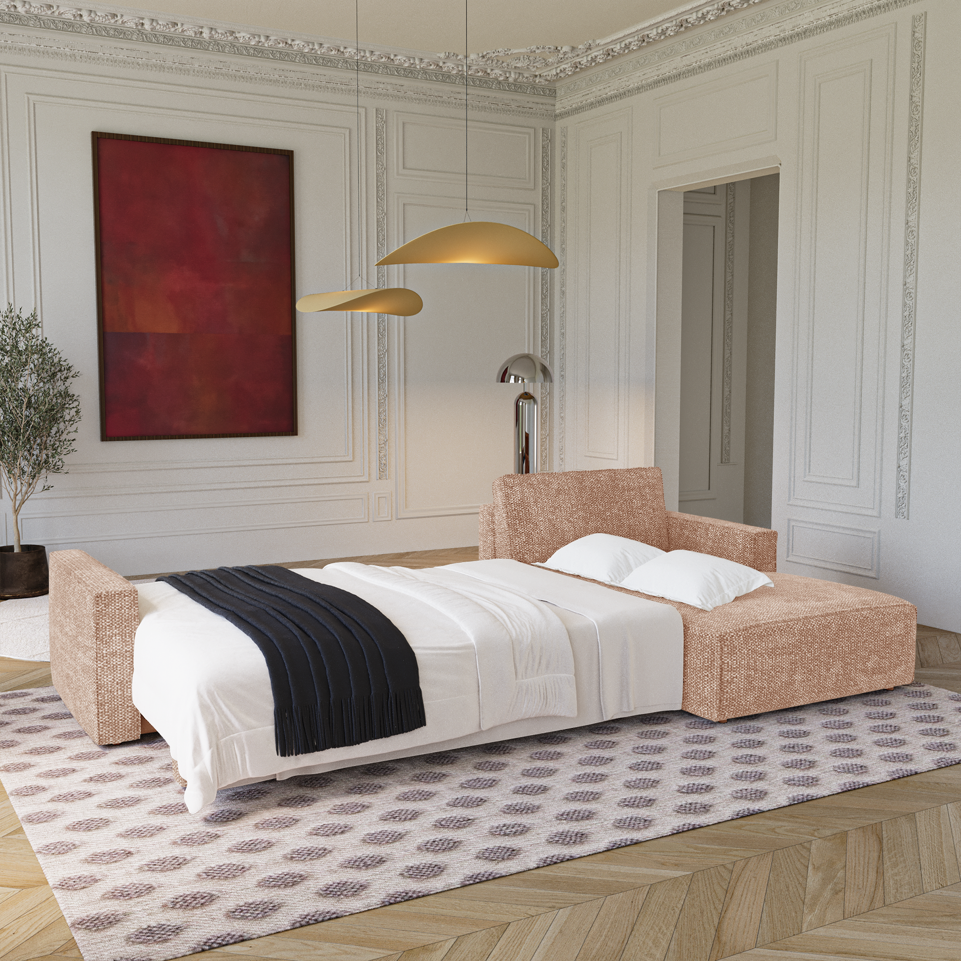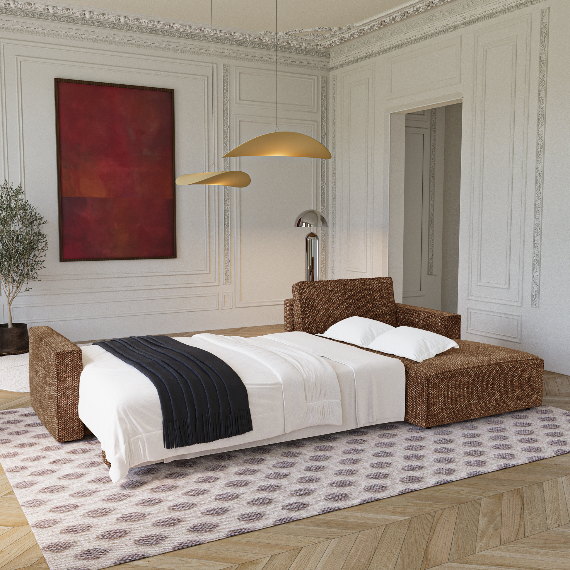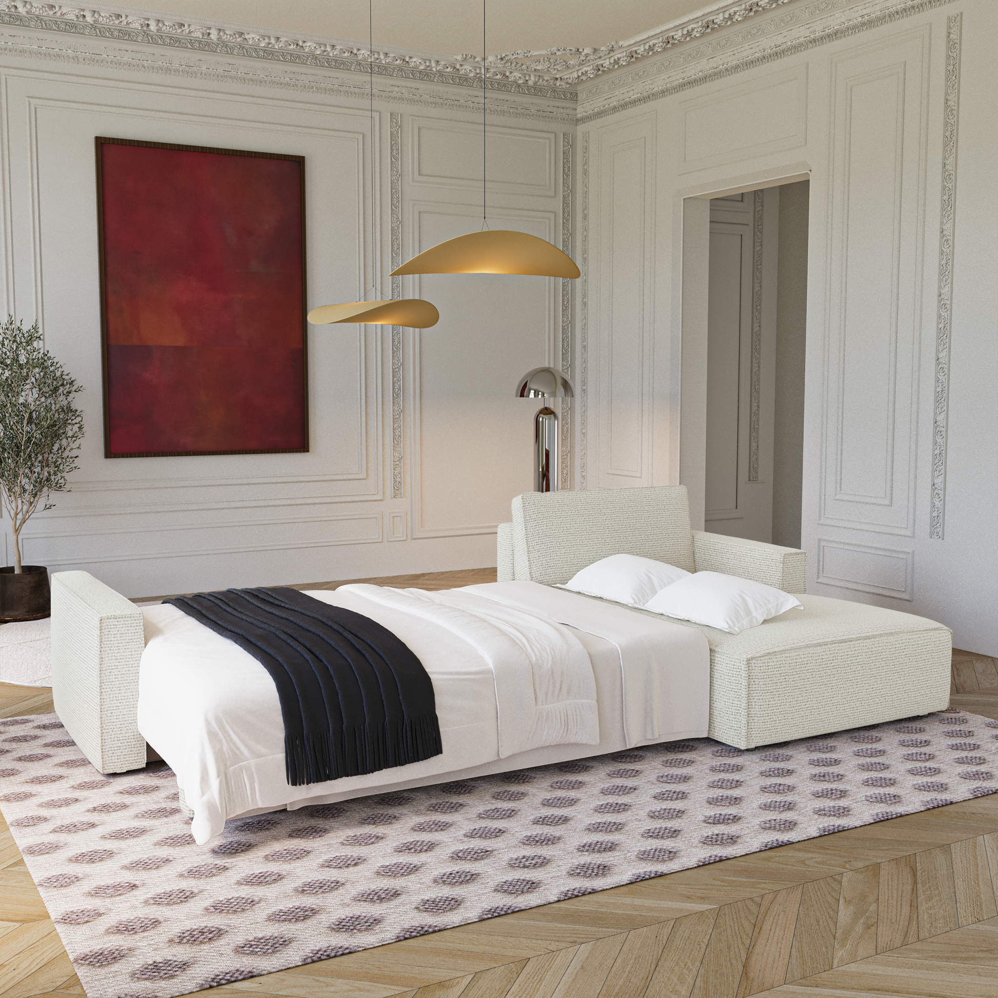 Derrière son apparente simplicité, KELY intègre un couchage d’appoint pratique et confortable, idéal pour accueillir des invités. Le système convertible se déploie facilement, permettant une transformation fluide du canapé en lit en quelques gestes. Parfait pour les petits espaces ou les intérieurs modulables, il vous accompagne dans tous les moments de vie.