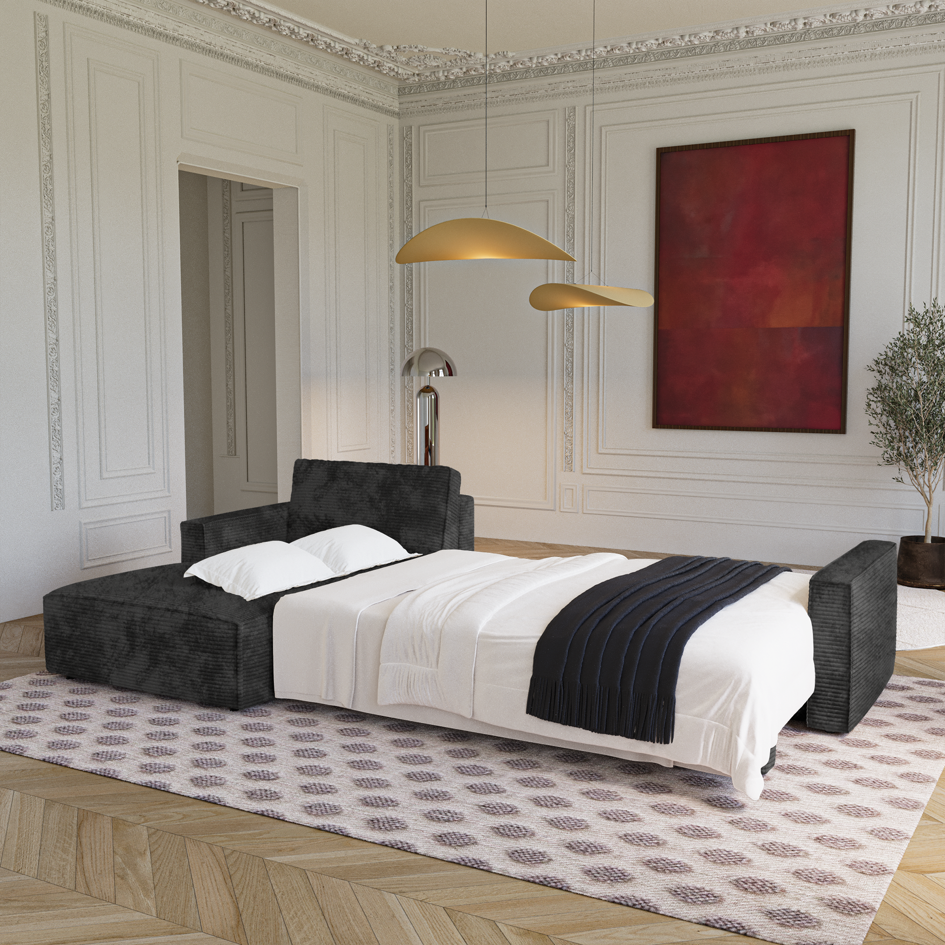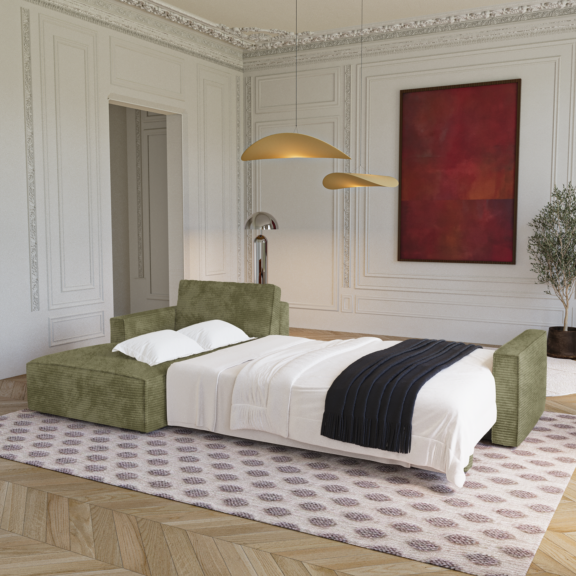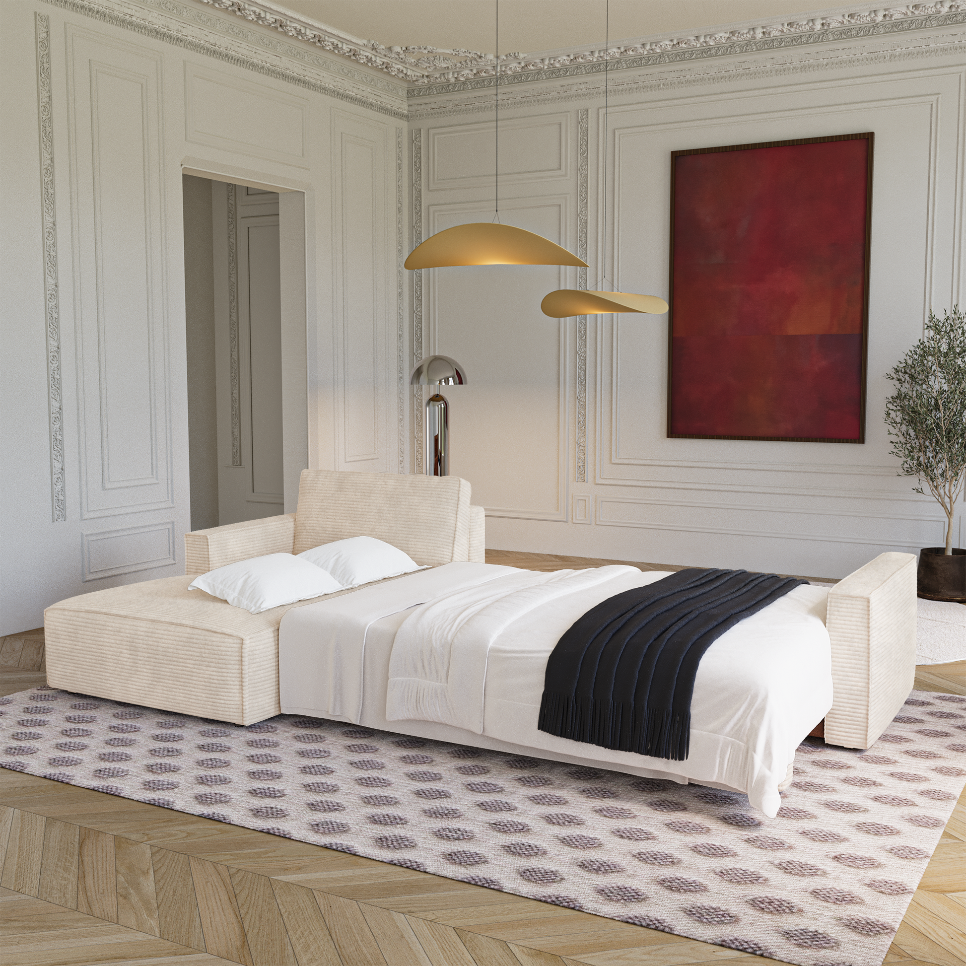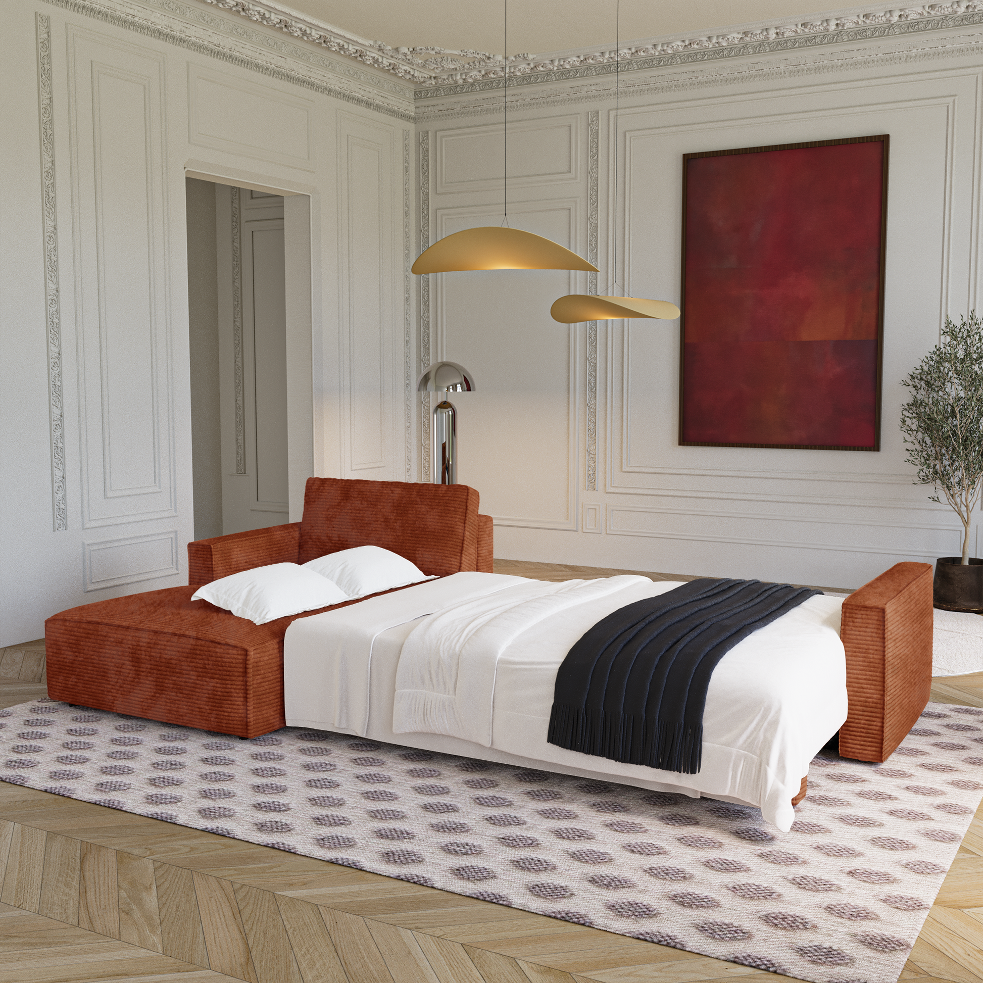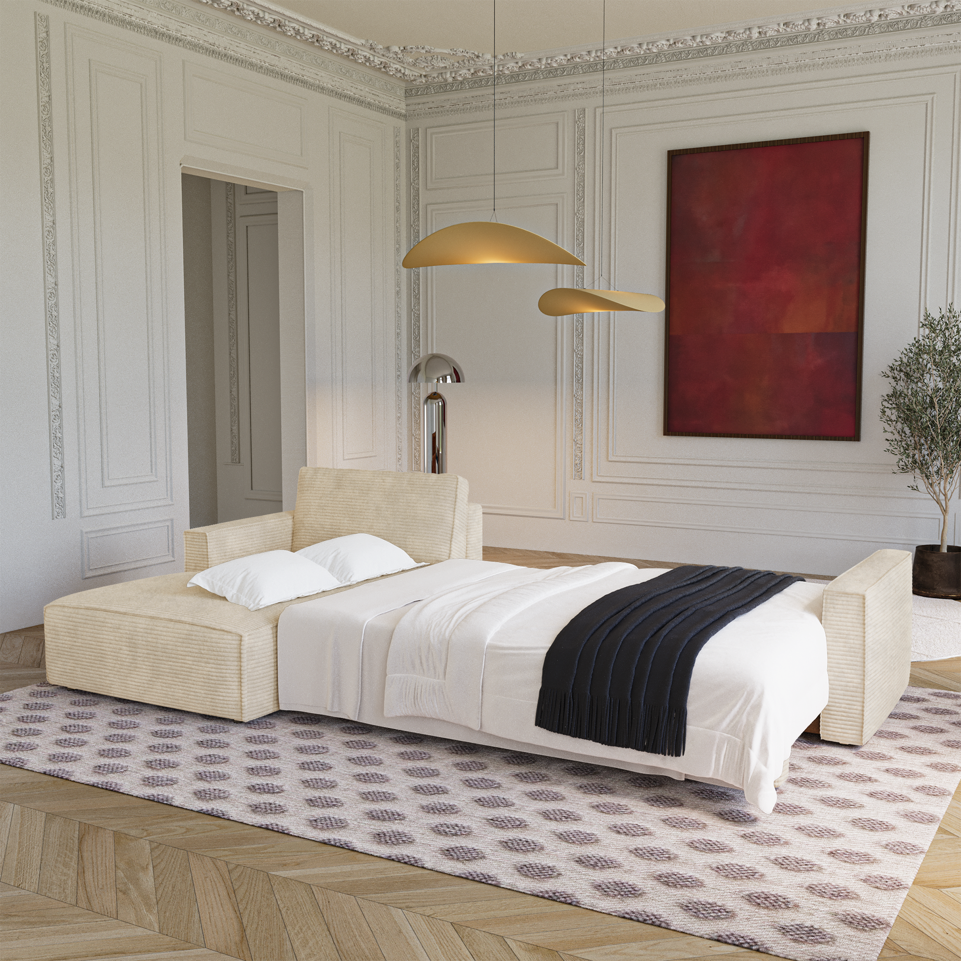 Derrière son apparente simplicité, KELY intègre un couchage d’appoint pratique et confortable, idéal pour accueillir des invités. Le système convertible se déploie facilement, permettant une transformation fluide du canapé en lit en quelques gestes. Parfait pour les petits espaces ou les intérieurs modulables, il vous accompagne dans tous les moments de vie.