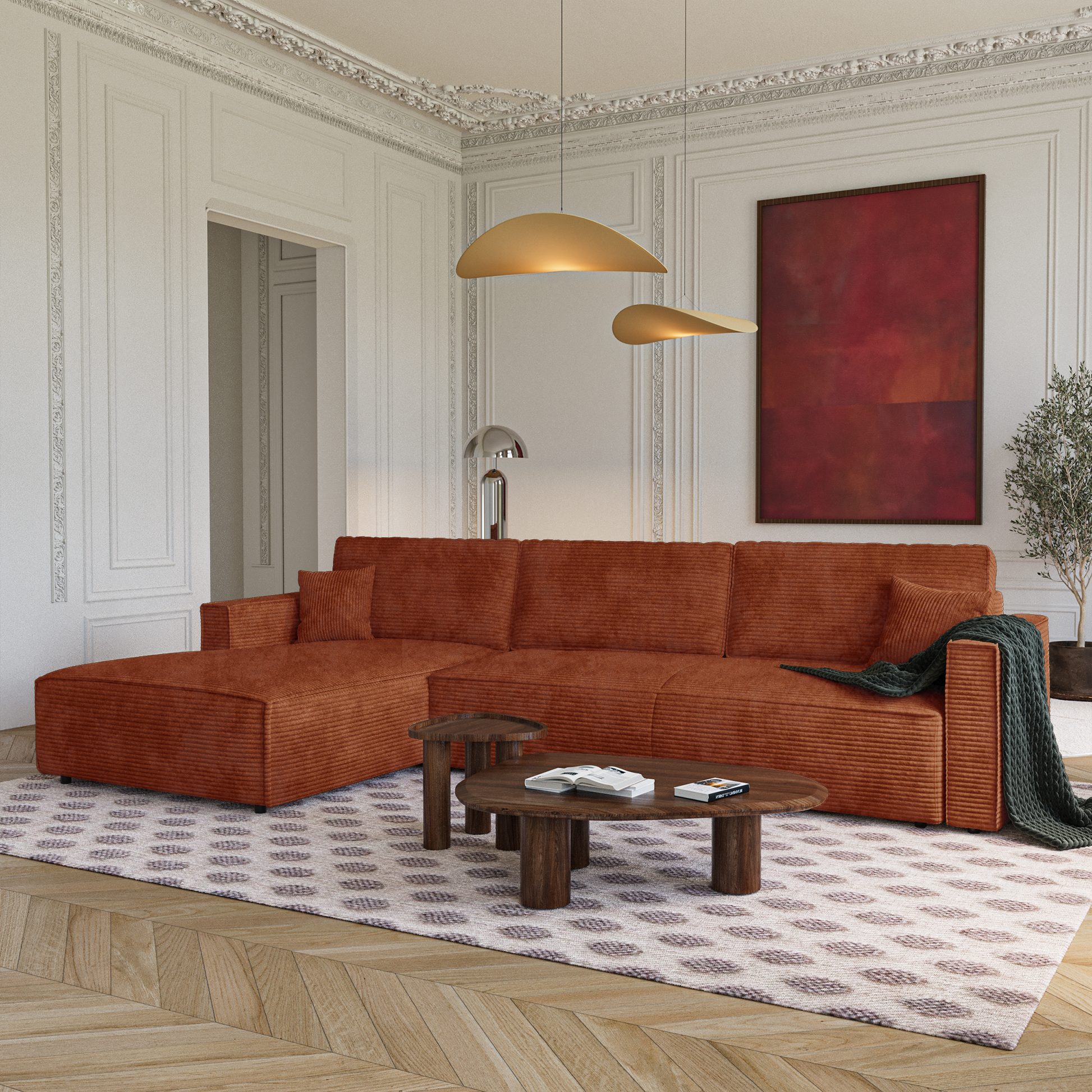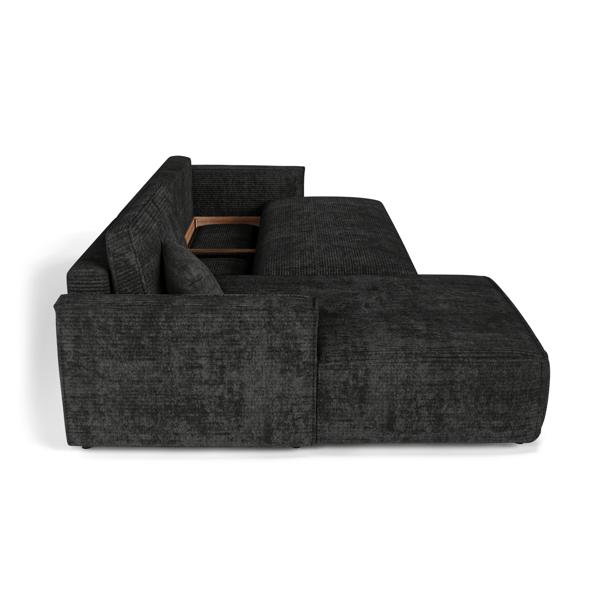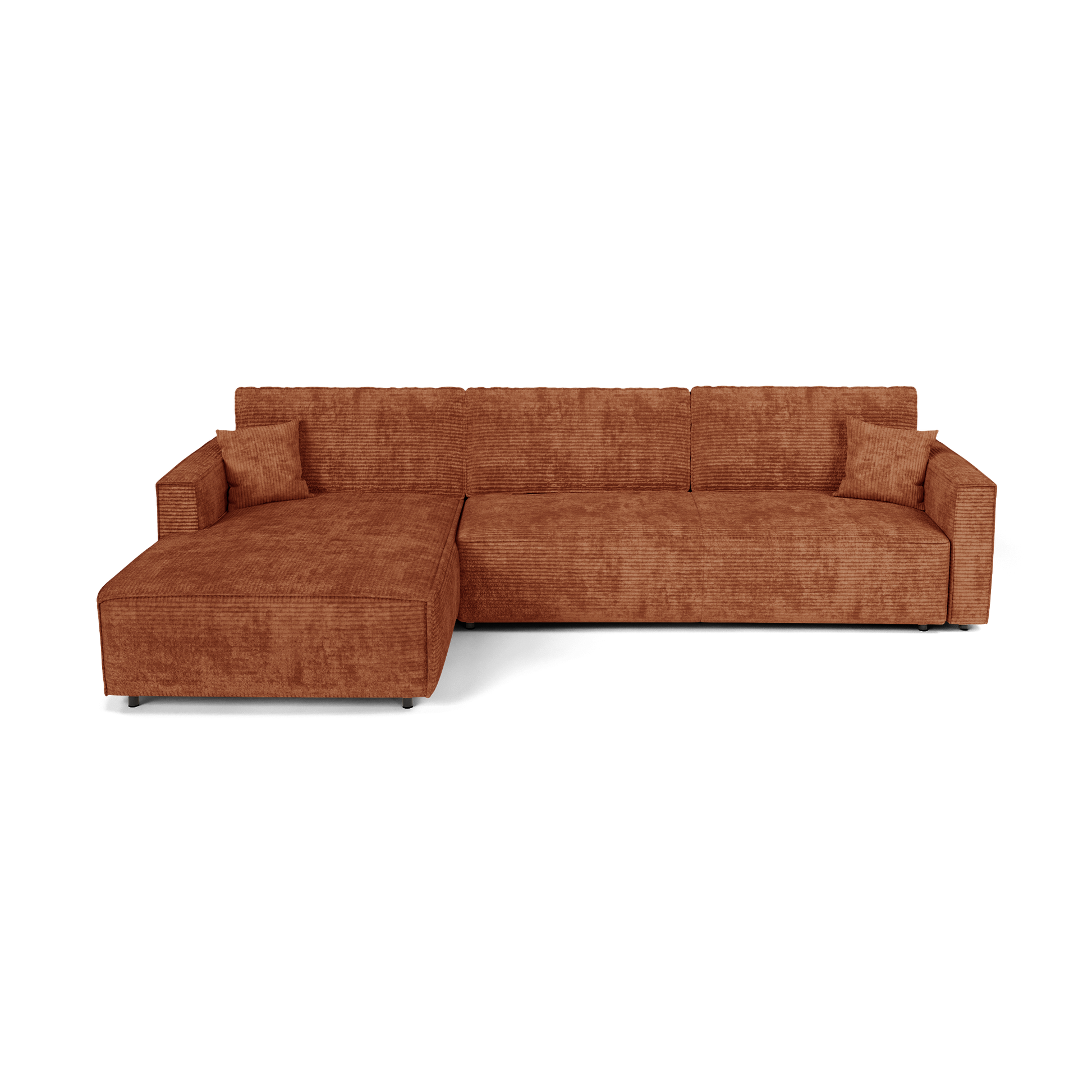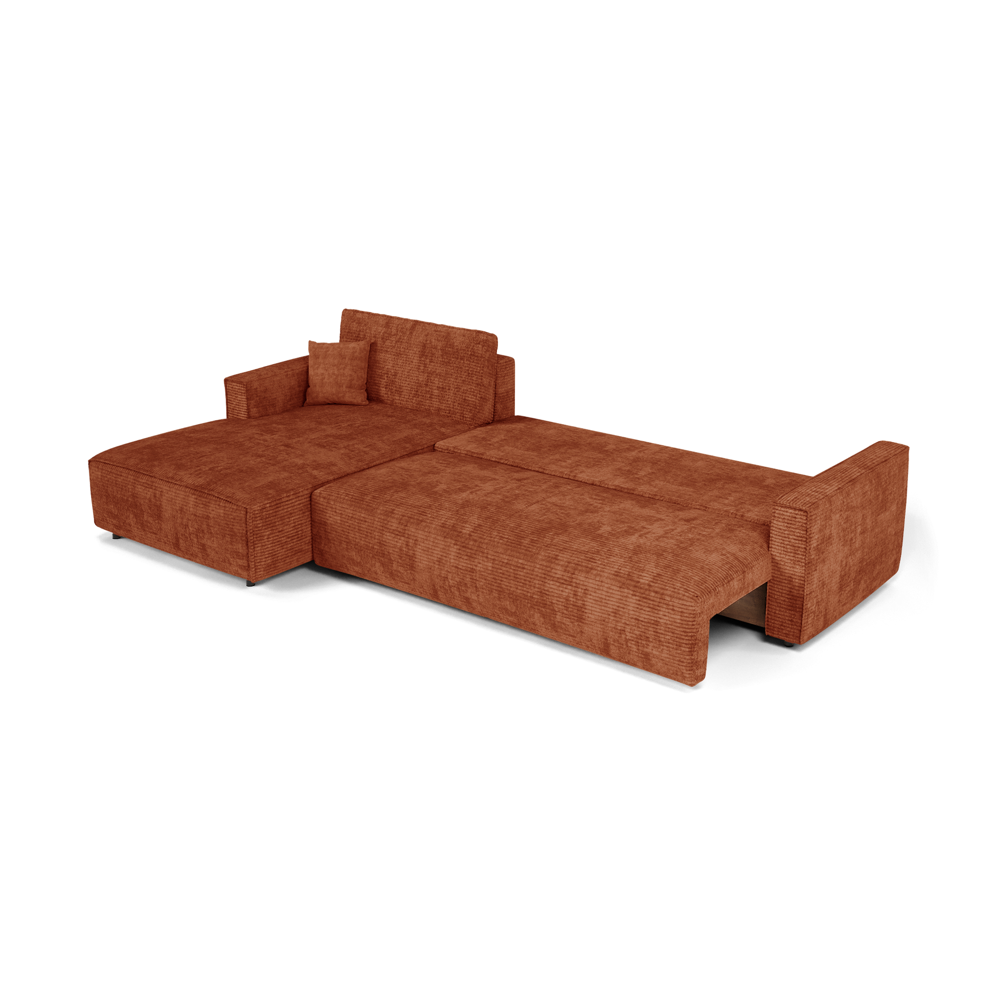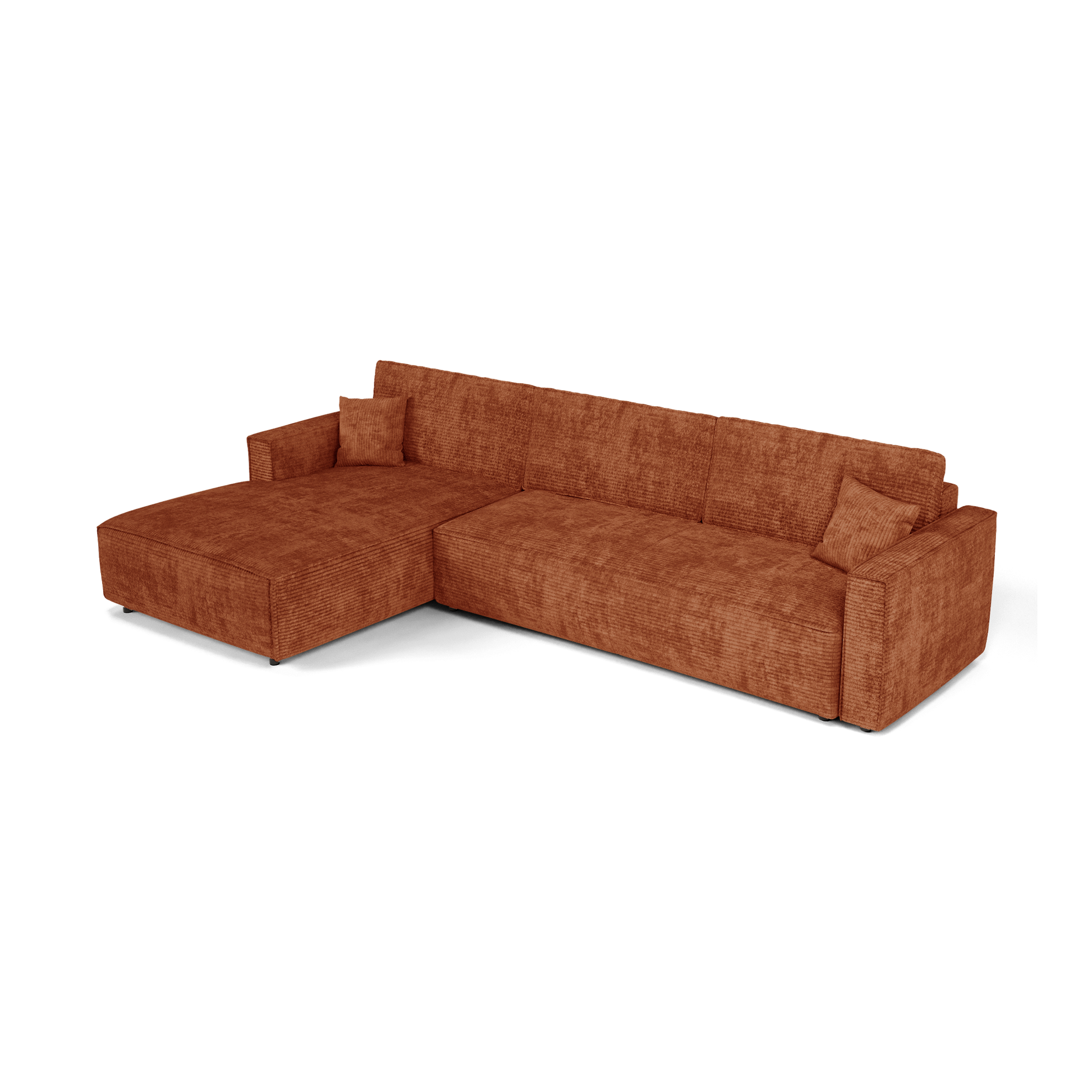 Canapé d'angle gauche convertible avec coffre noyer KELY Velours côtelé