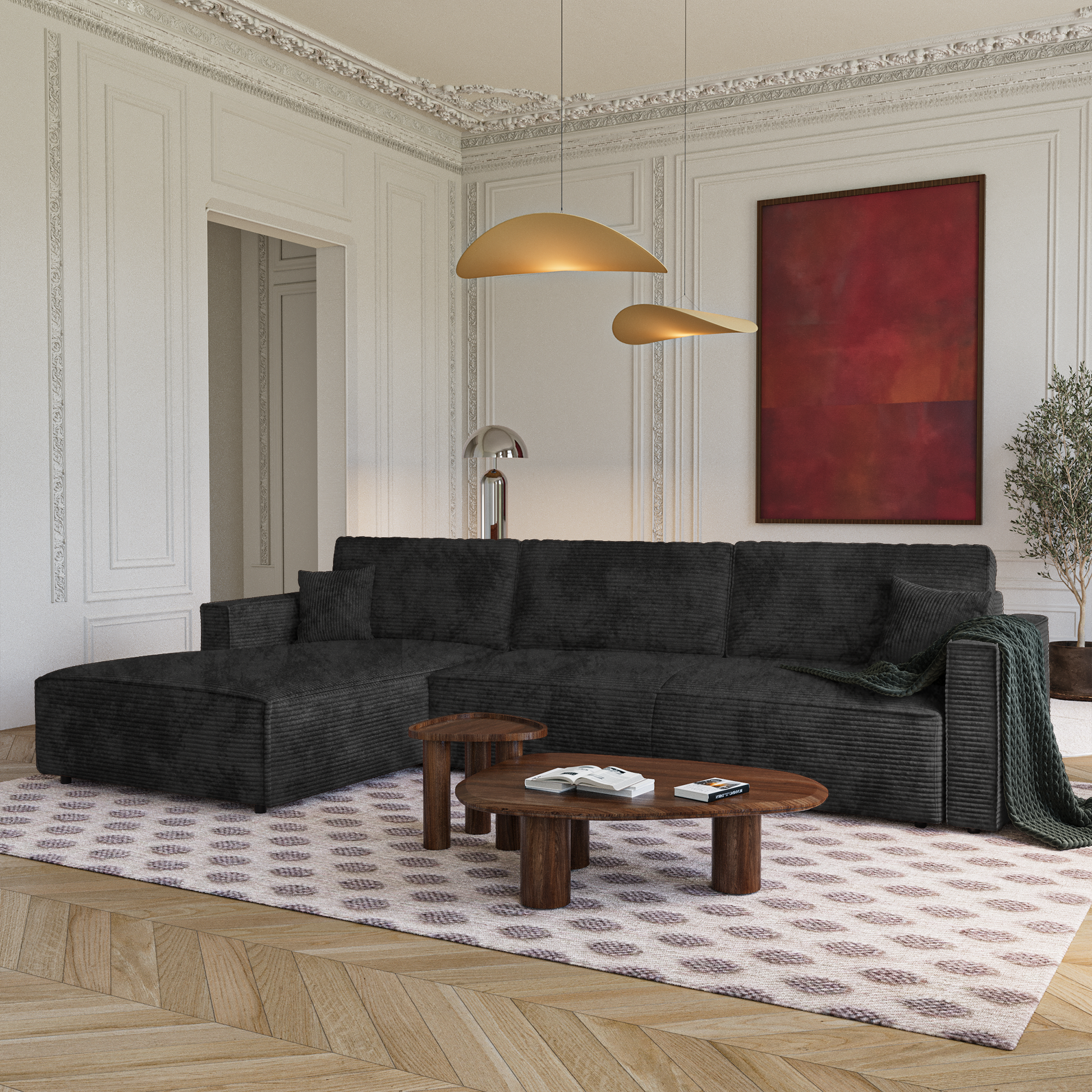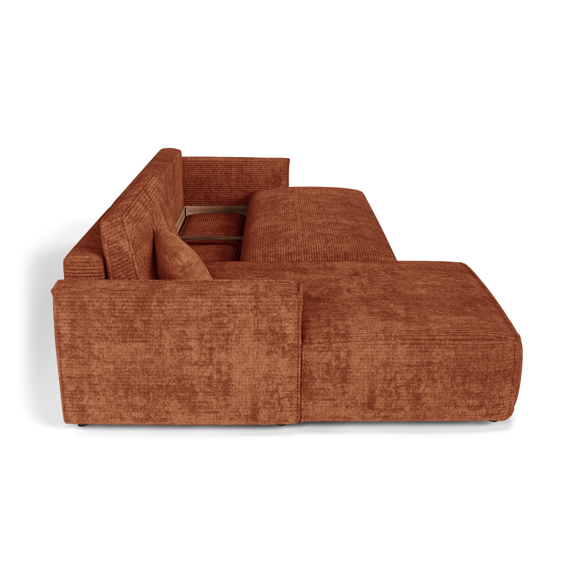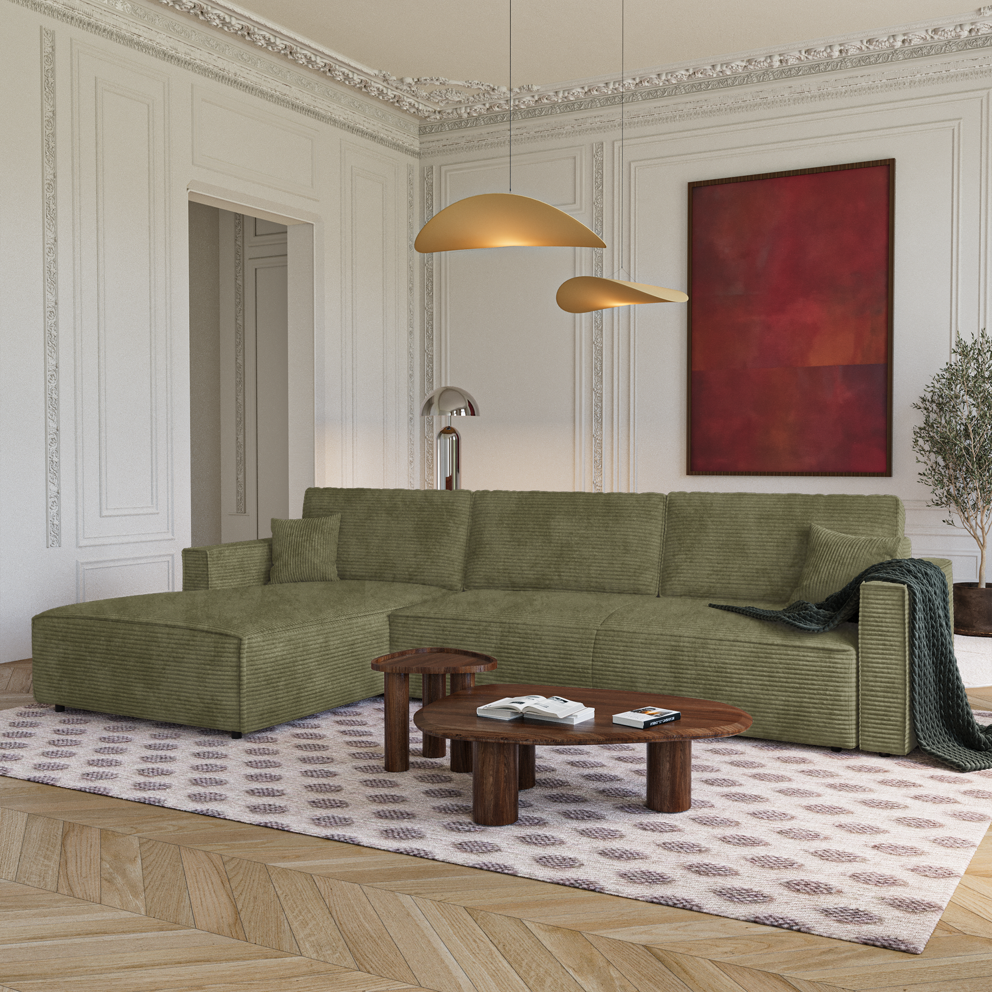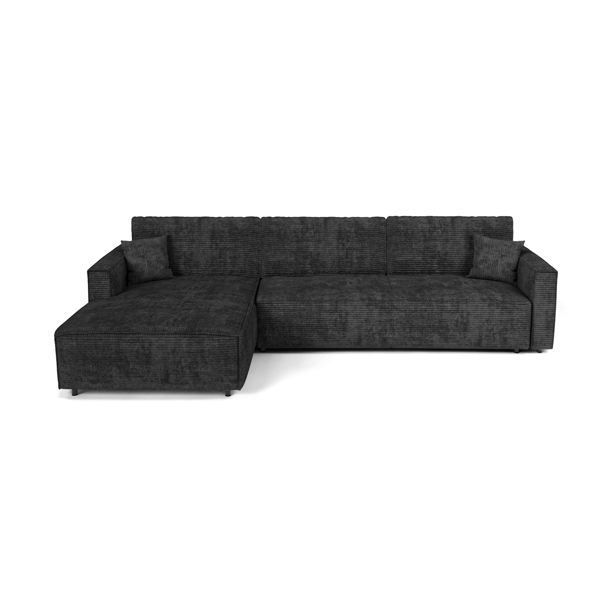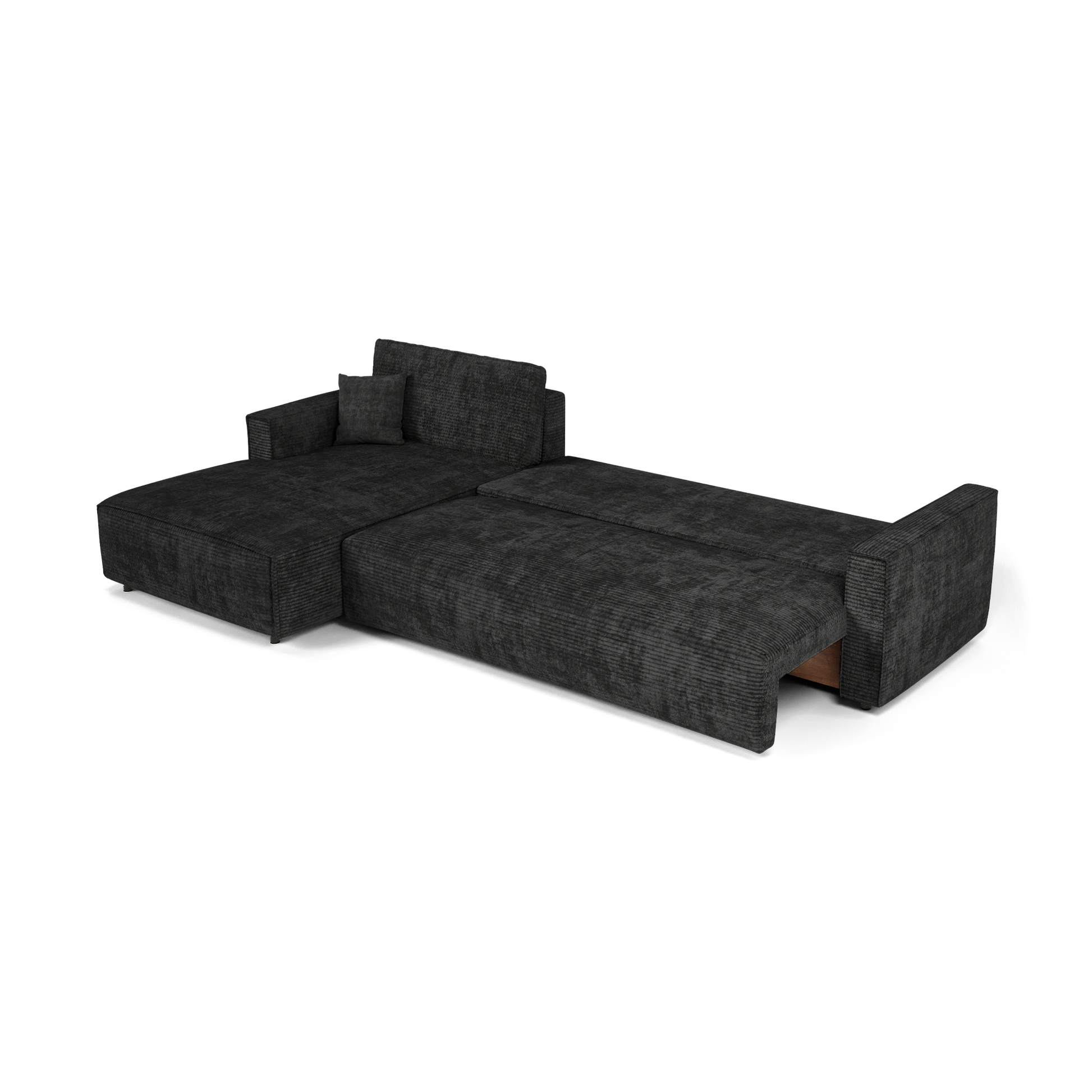 Canapé d'angle gauche convertible avec coffre noyer KELY Velours côtelé