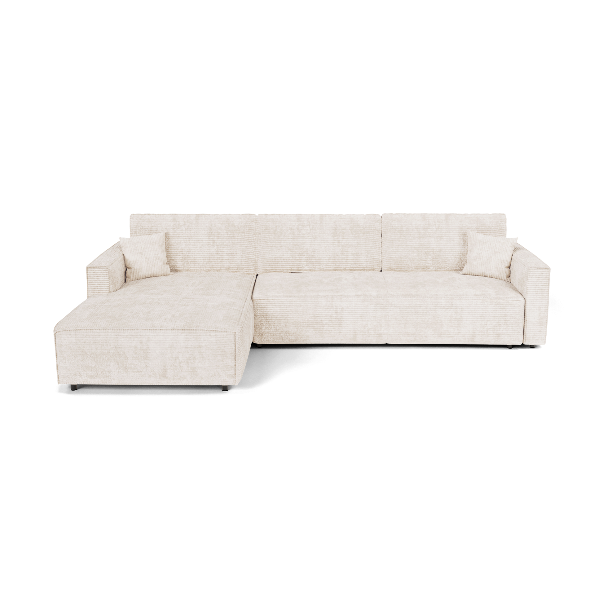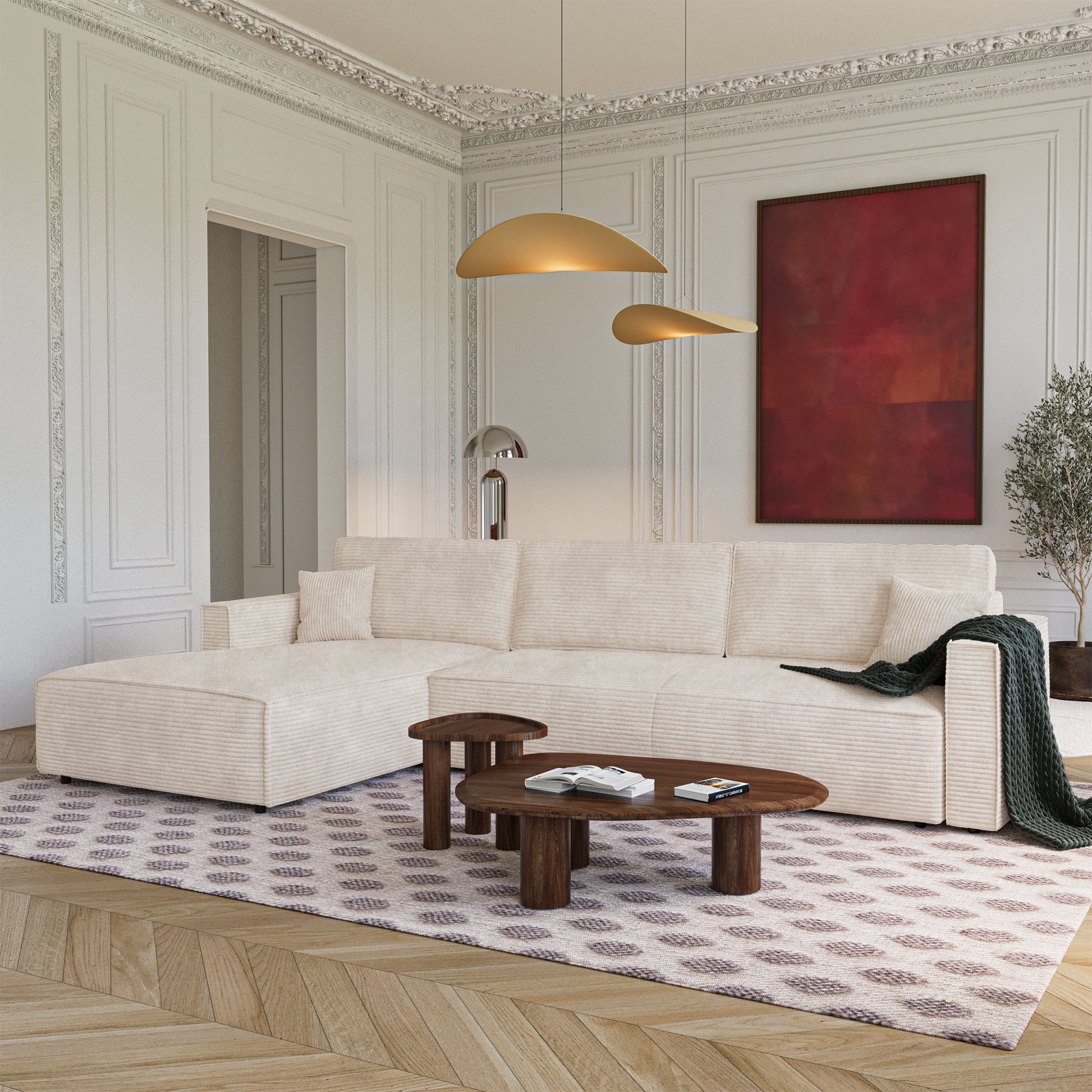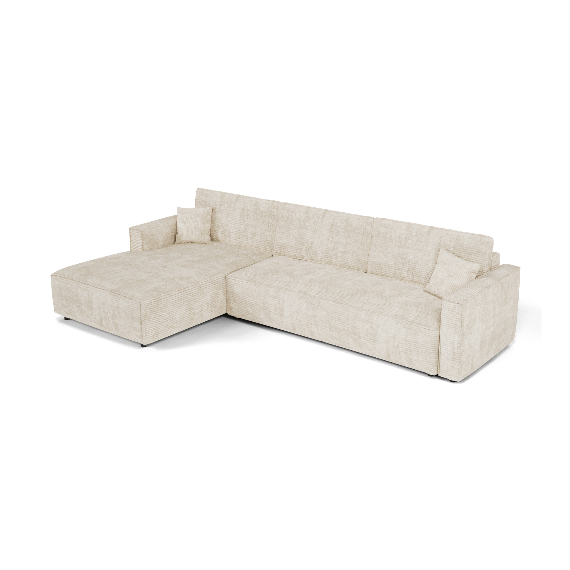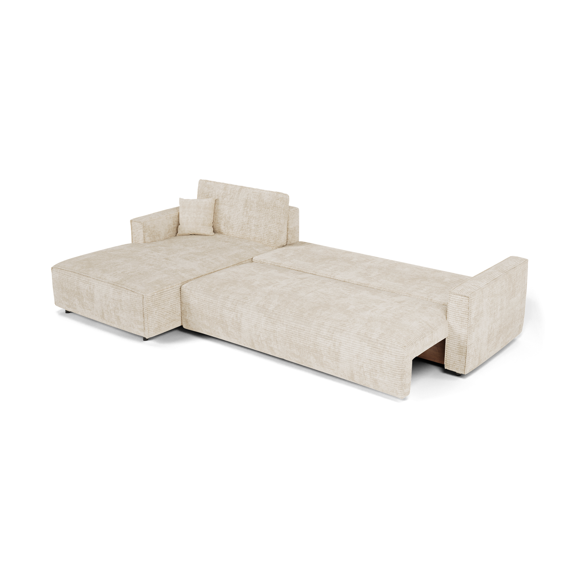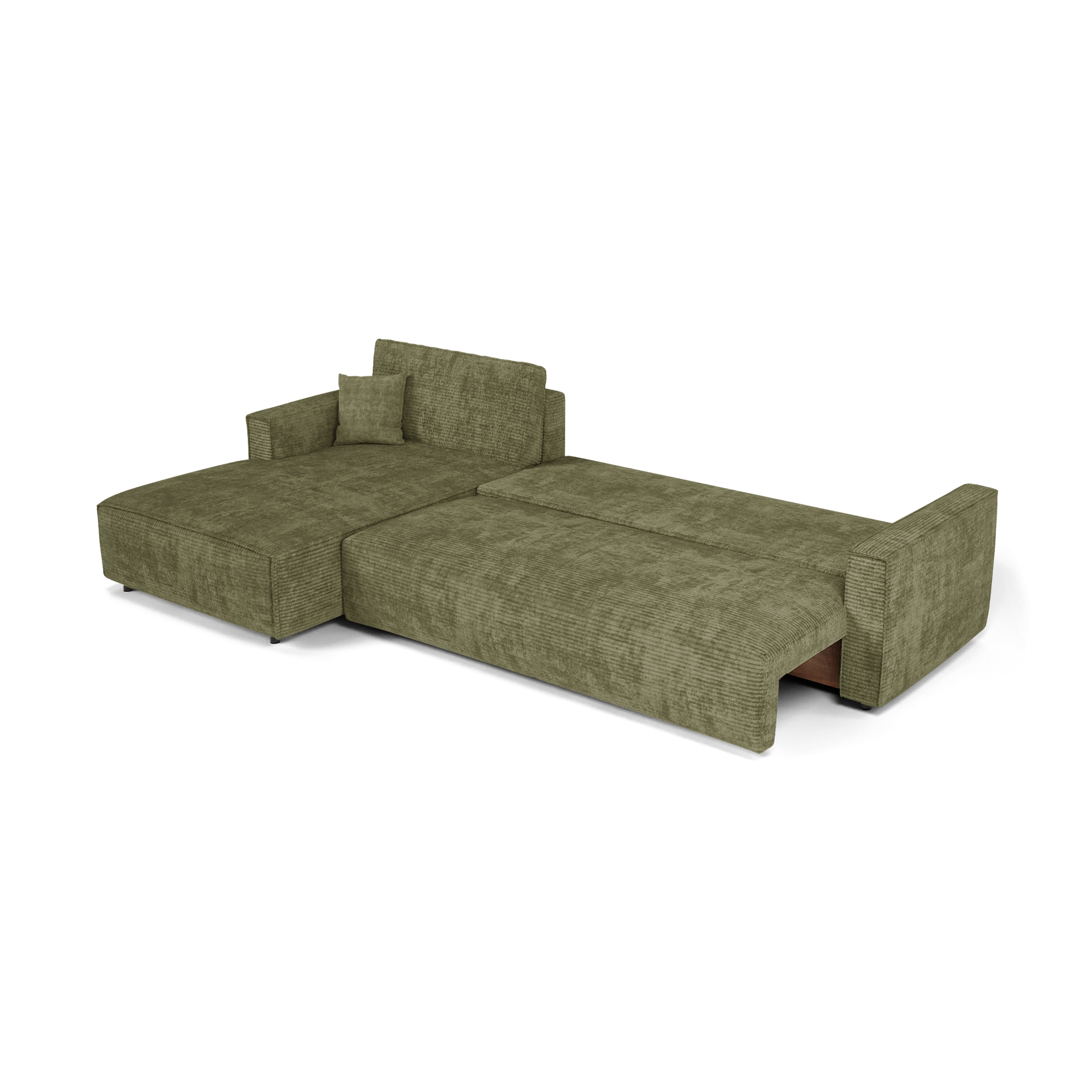 Canapé d'angle gauche convertible avec coffre noyer KELY Velours côtelé