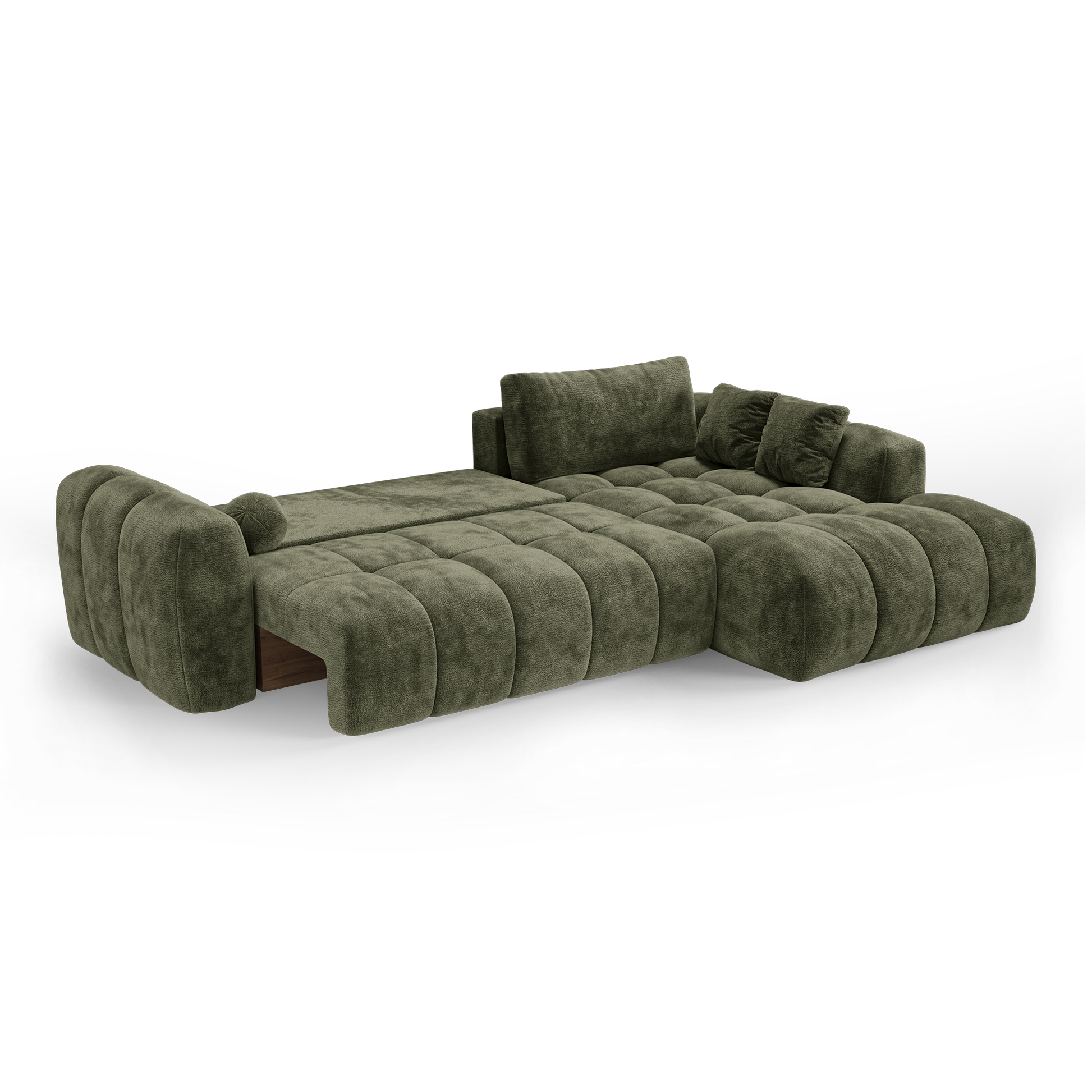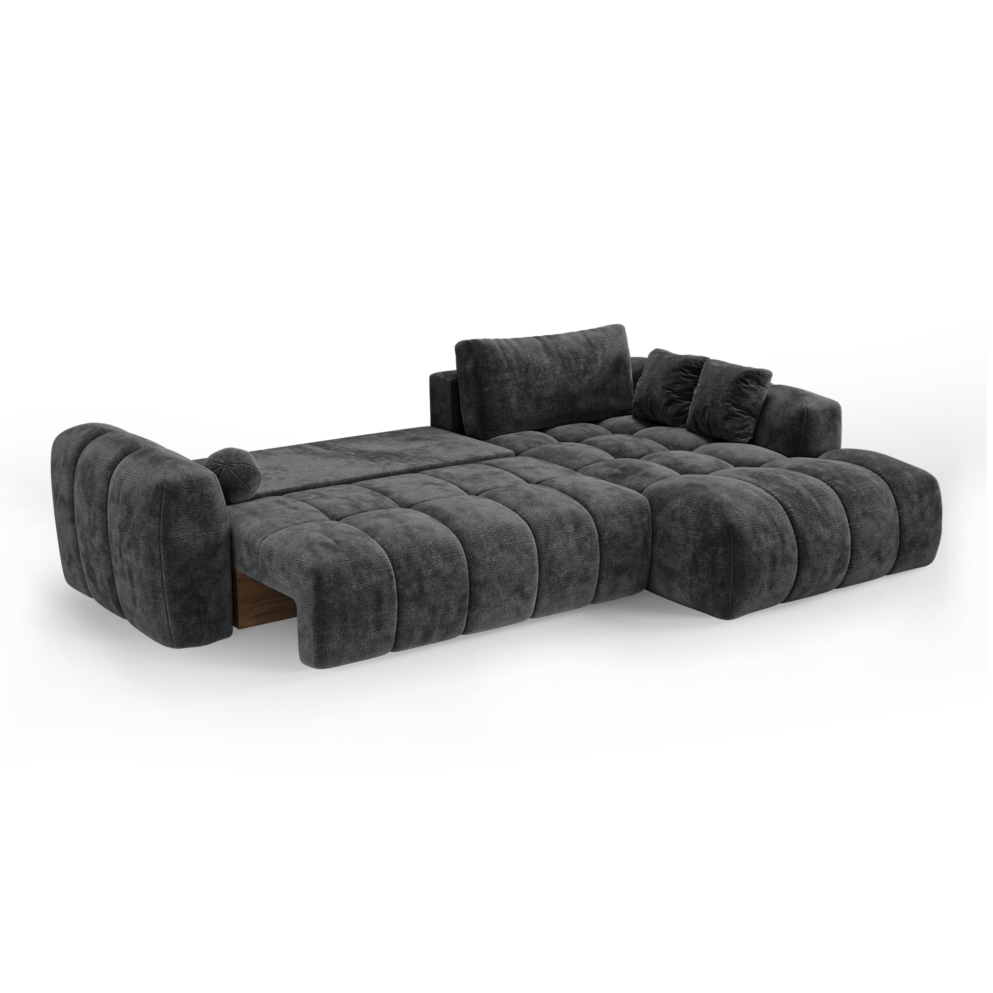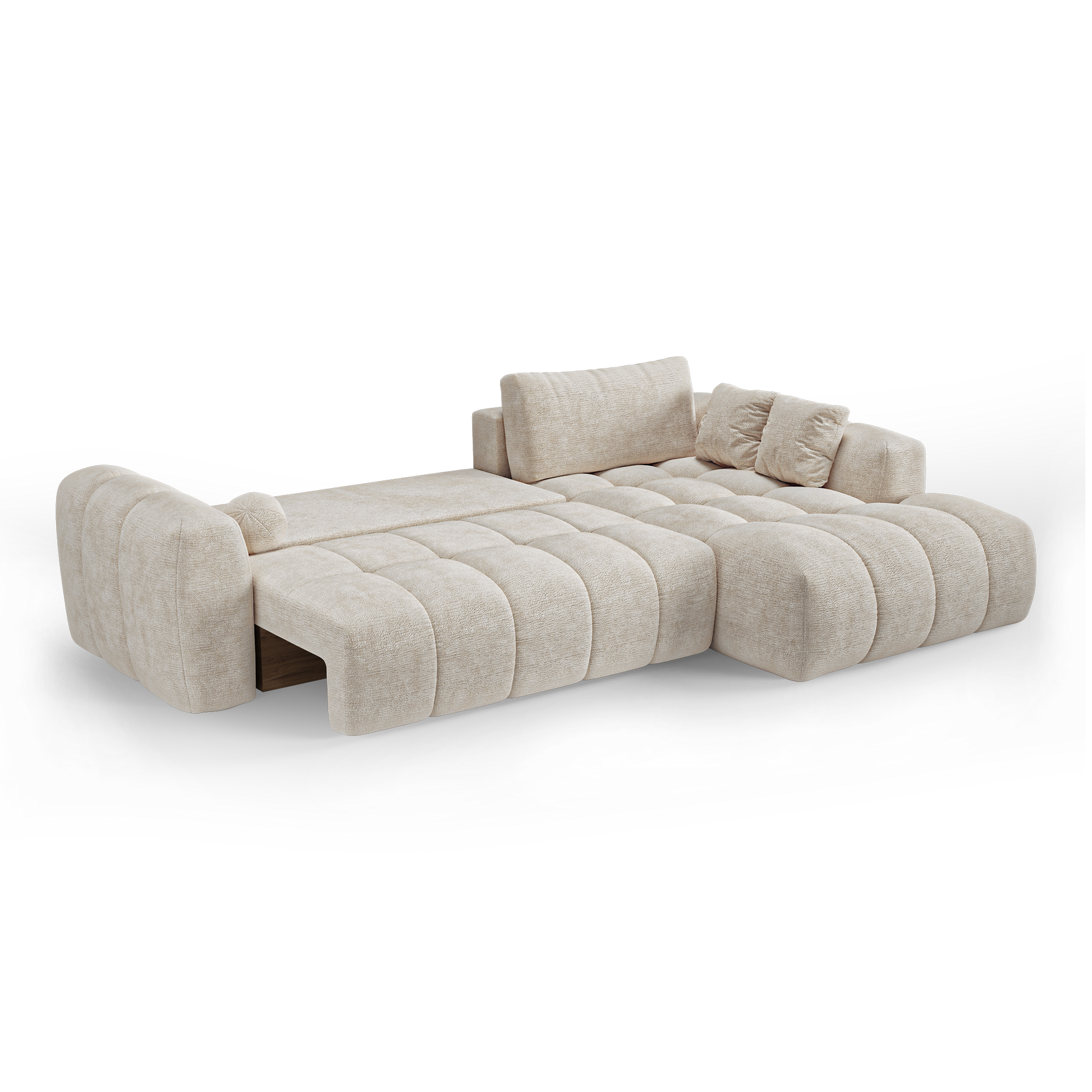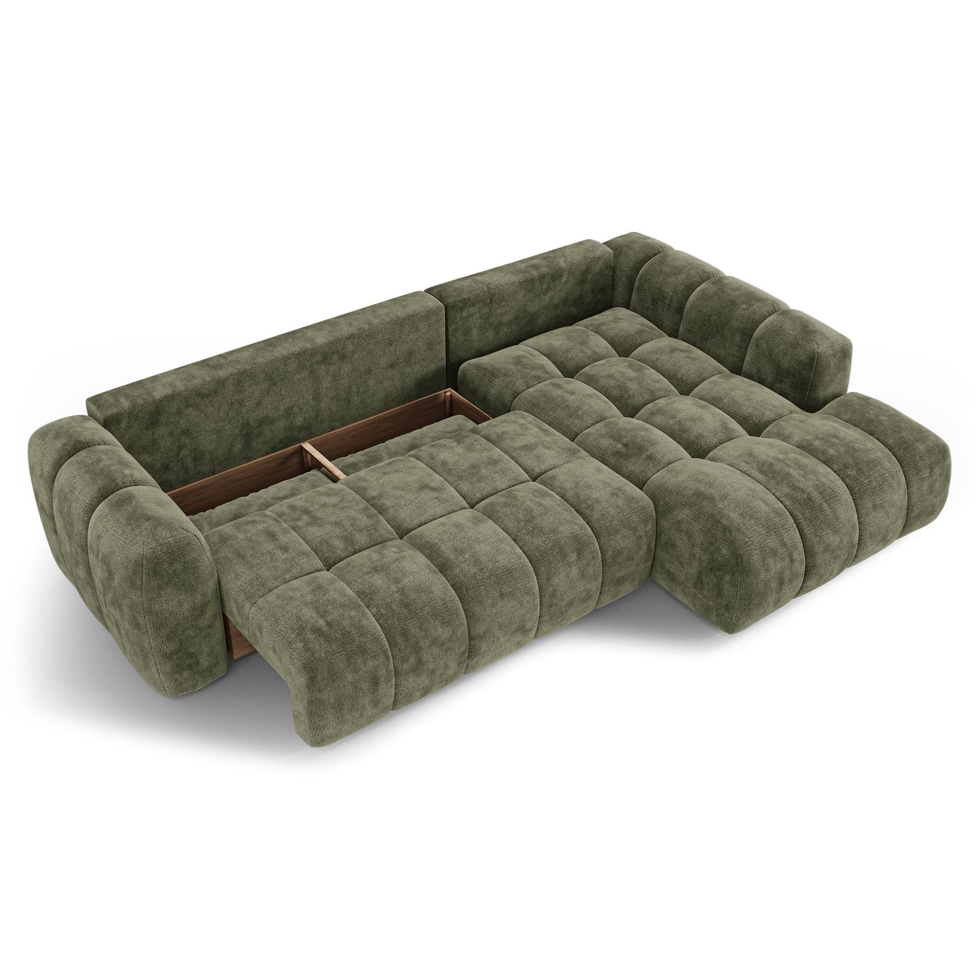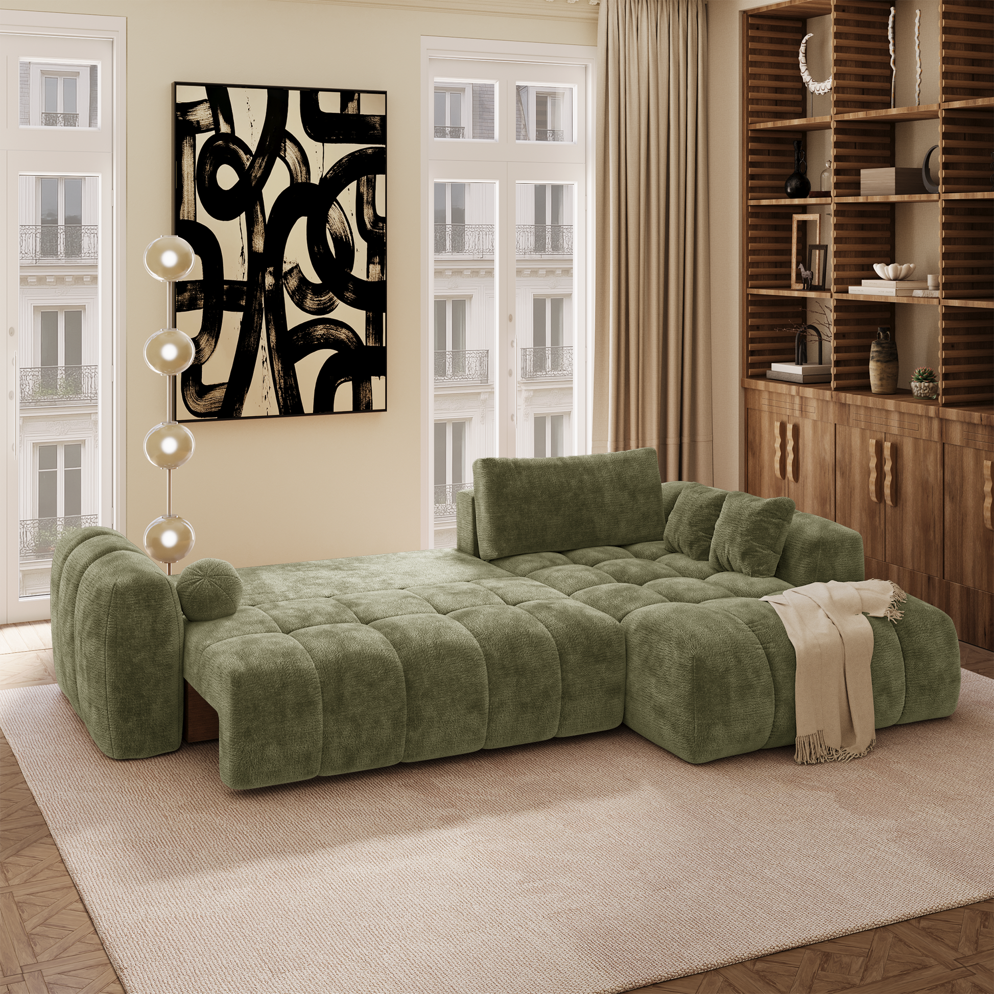 Autre avantage essentiel : son coffre de rangement intégré, discret et fonctionnel. Plaids, coussins, linge de lit ou accessoires trouvent naturellement leur place, permettant de garder un espace de vie organisé sans compromettre l’esthétique. Lorsque le canapé est déplié, vous pouvez même y ranger les coussins du dossier.