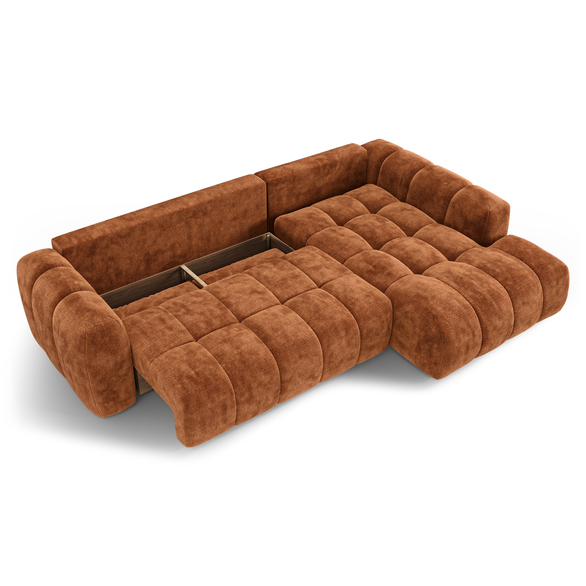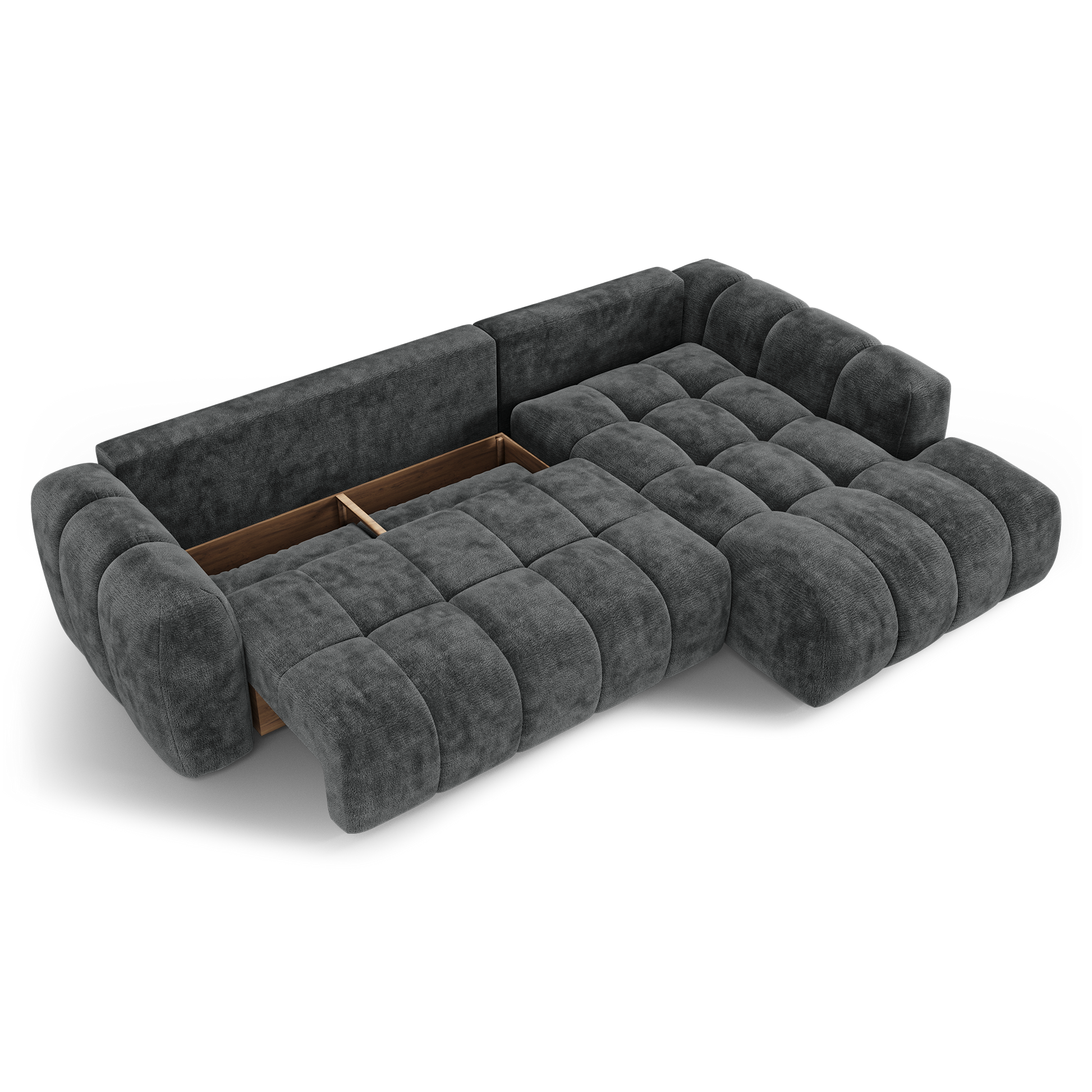 Canapé d'angle droit convertible avec coffre SKY Velours gaufré
