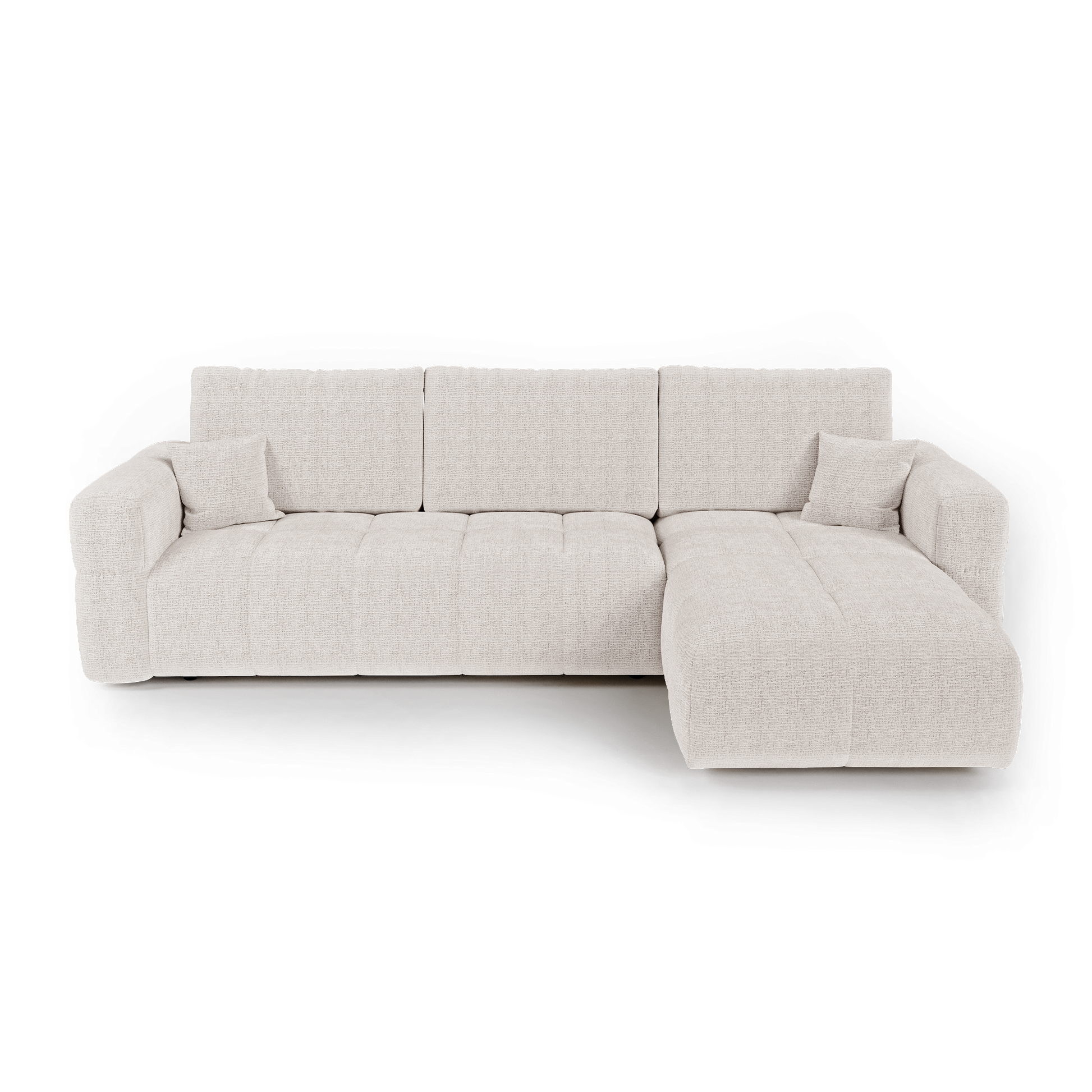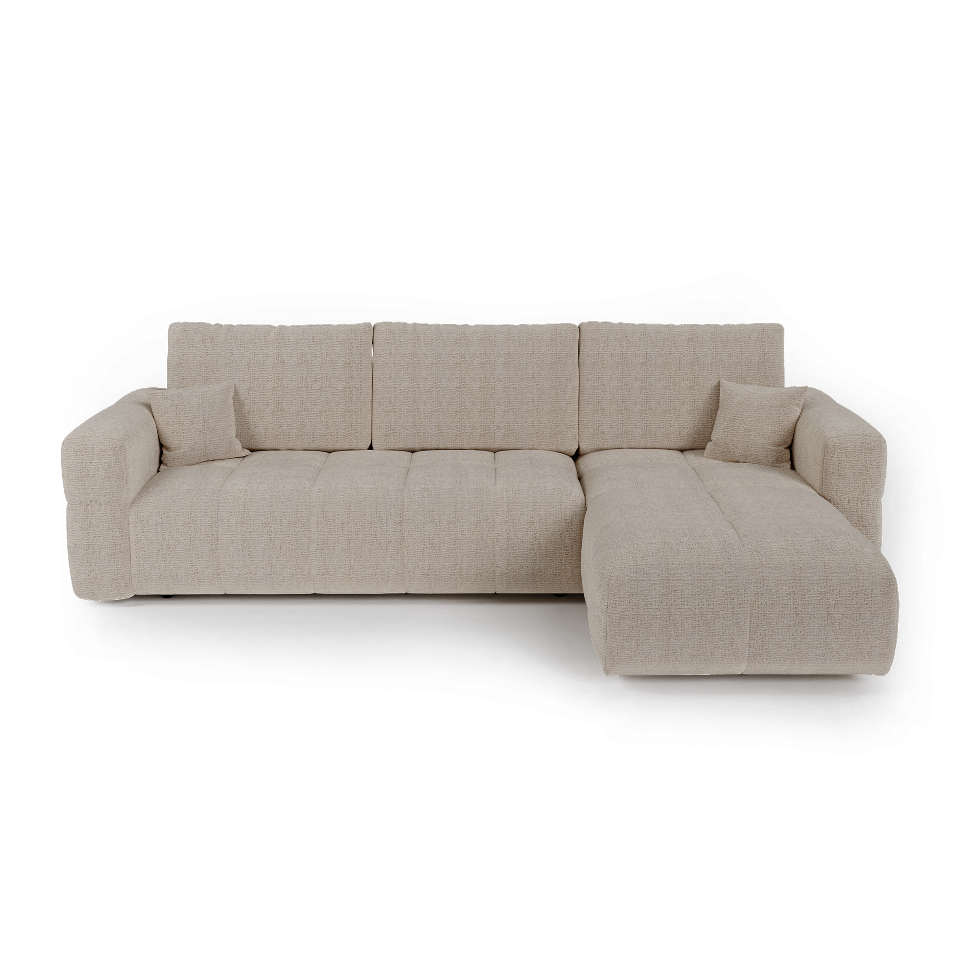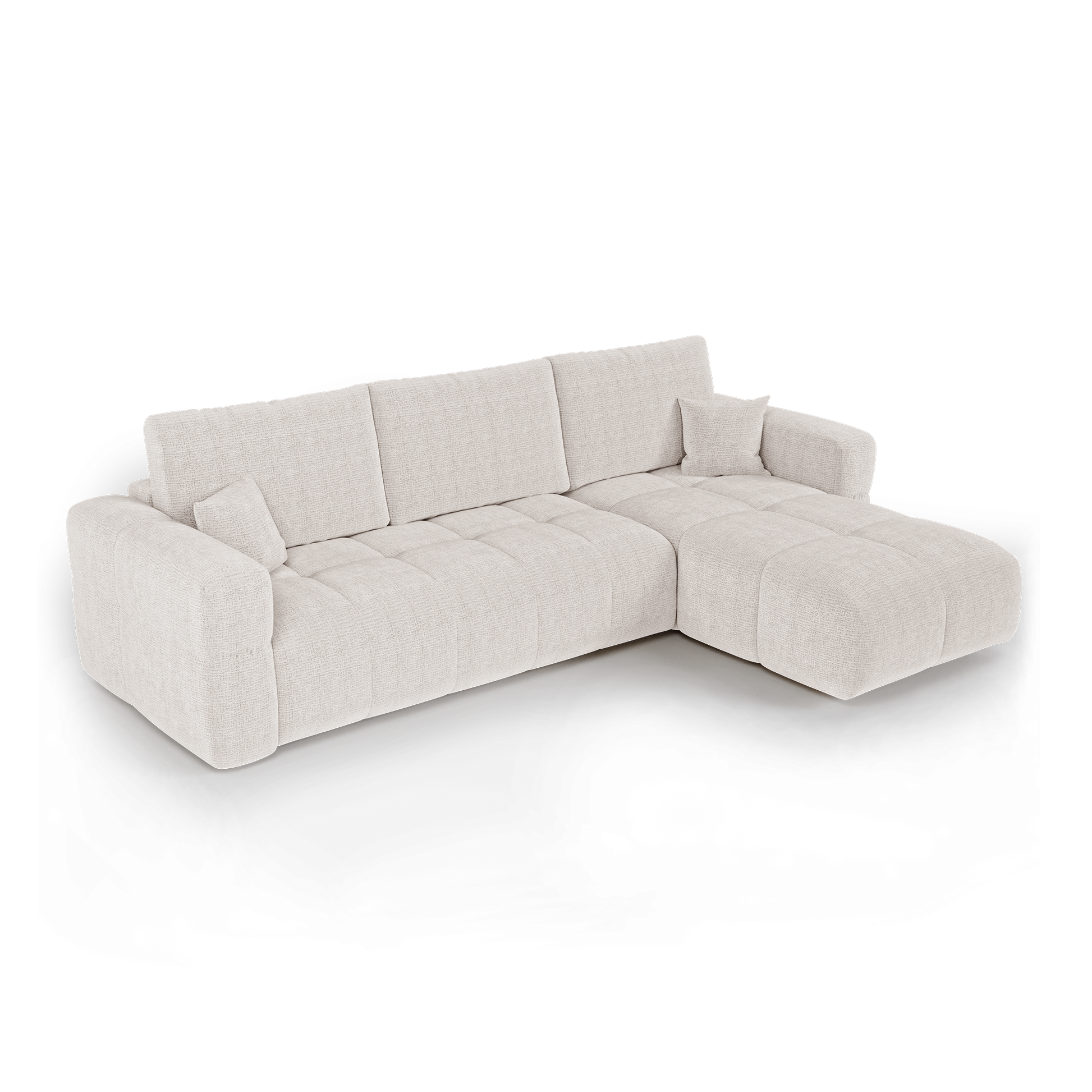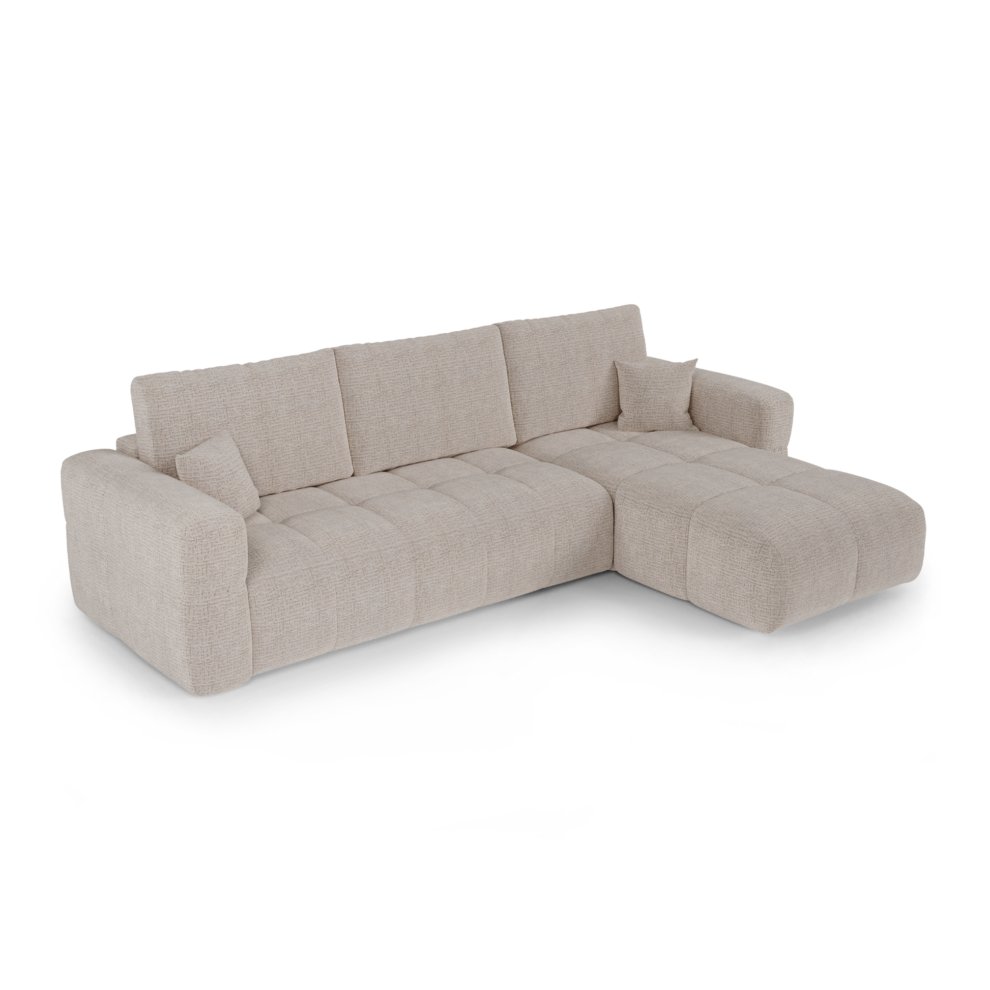 Canapé d'angle droit convertible avec coffre de rangement VIBE Tissu tramé toucher doux