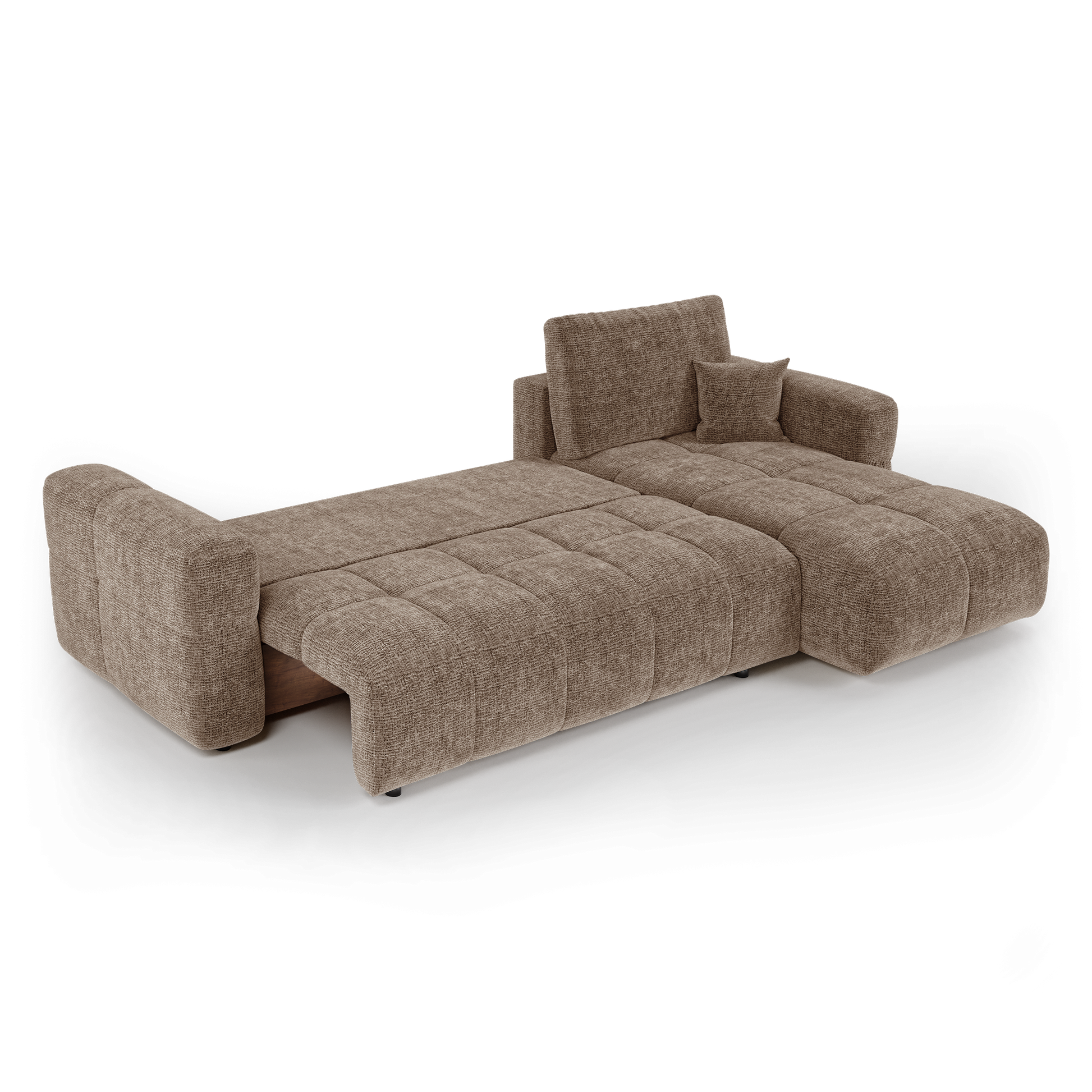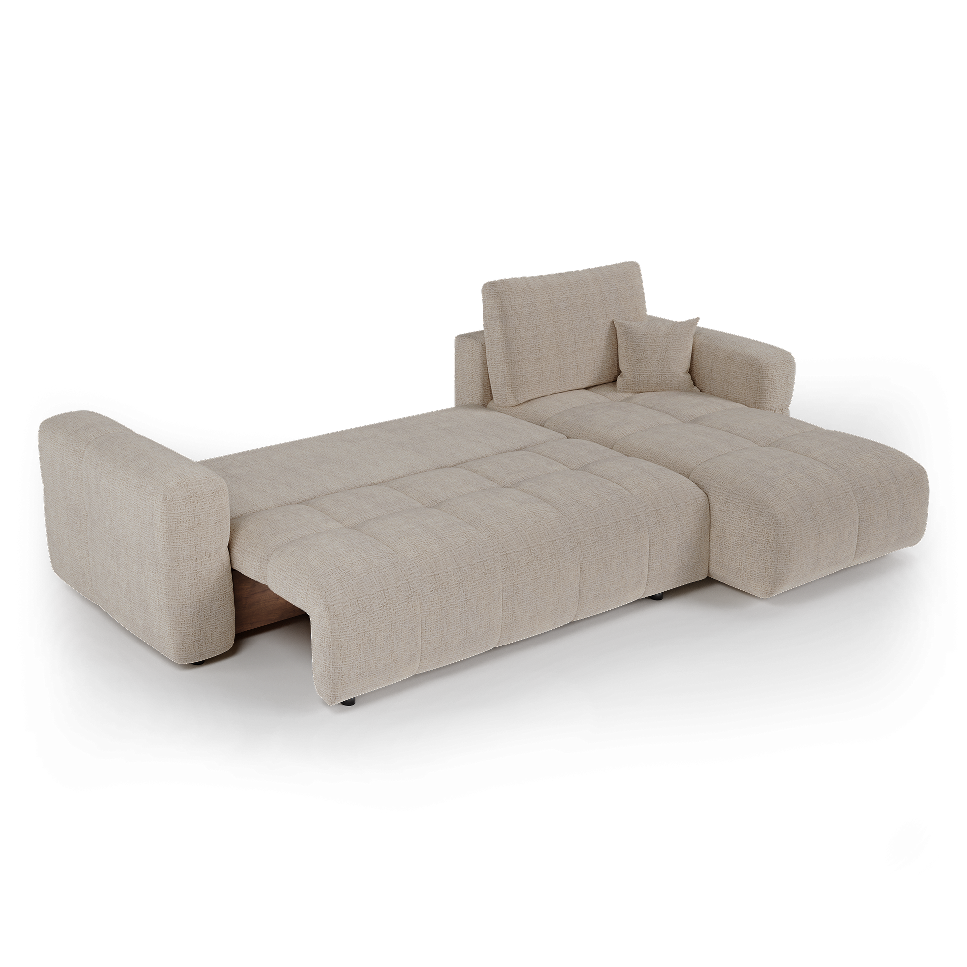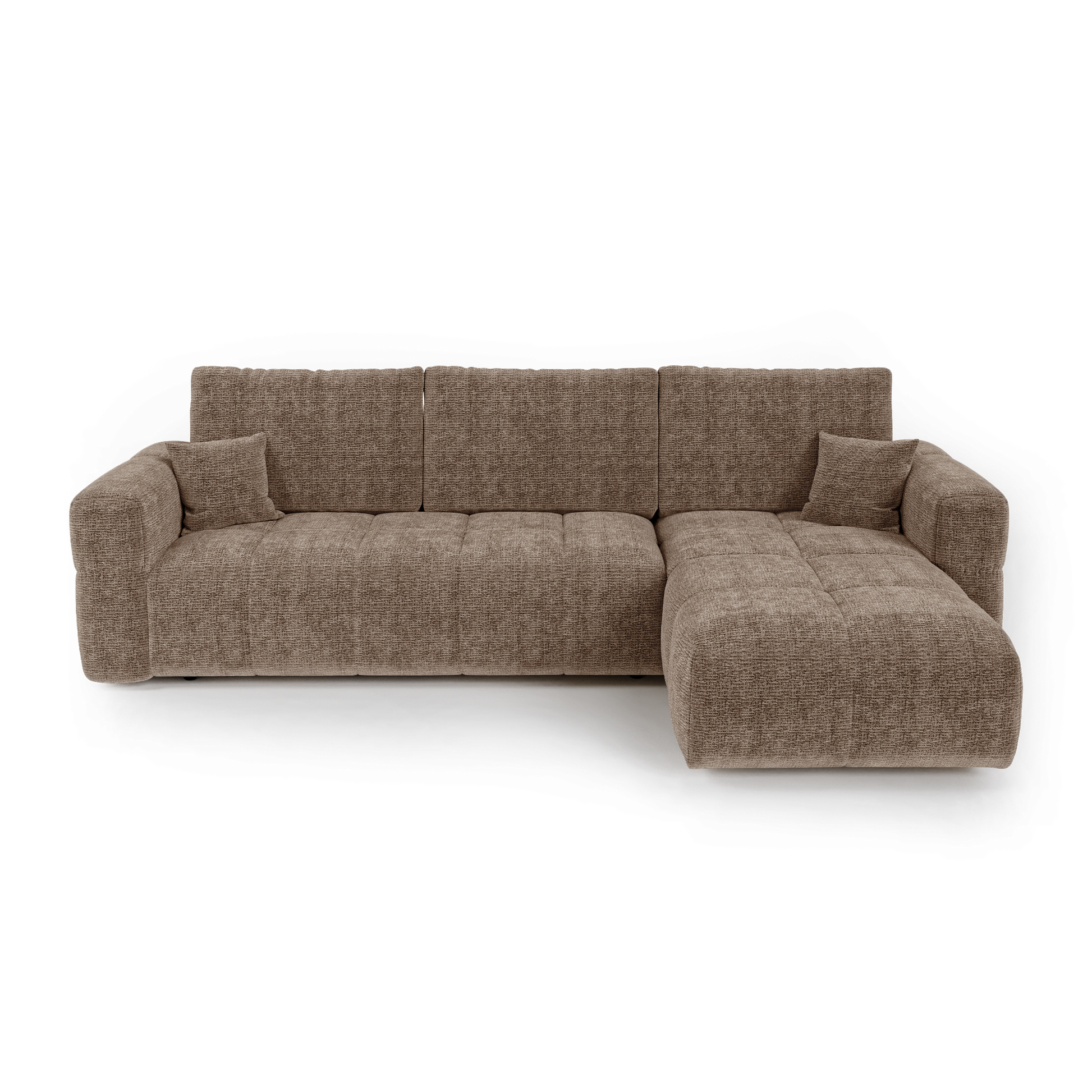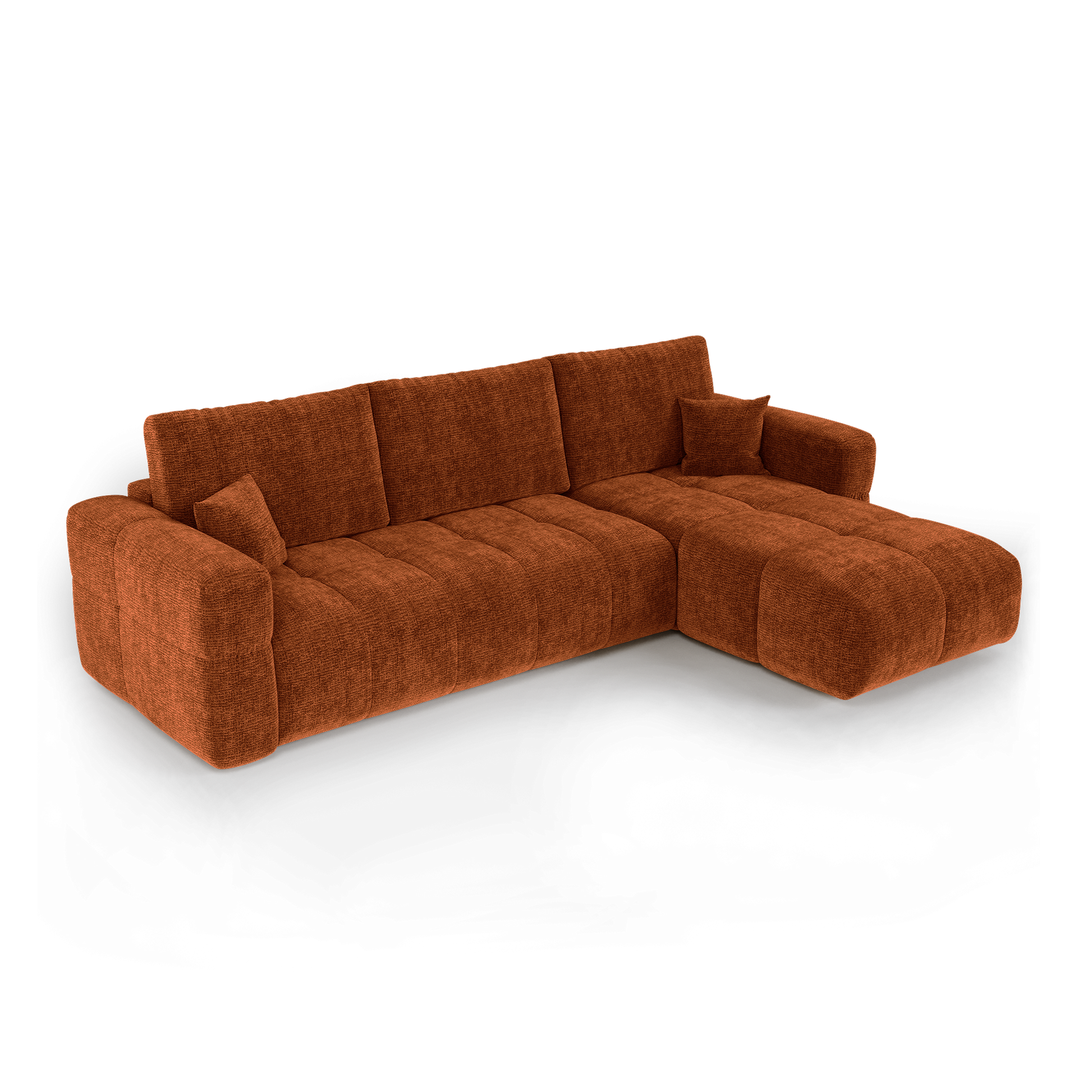 Canapé d'angle droit convertible avec coffre de rangement VIBE Tissu tramé toucher doux