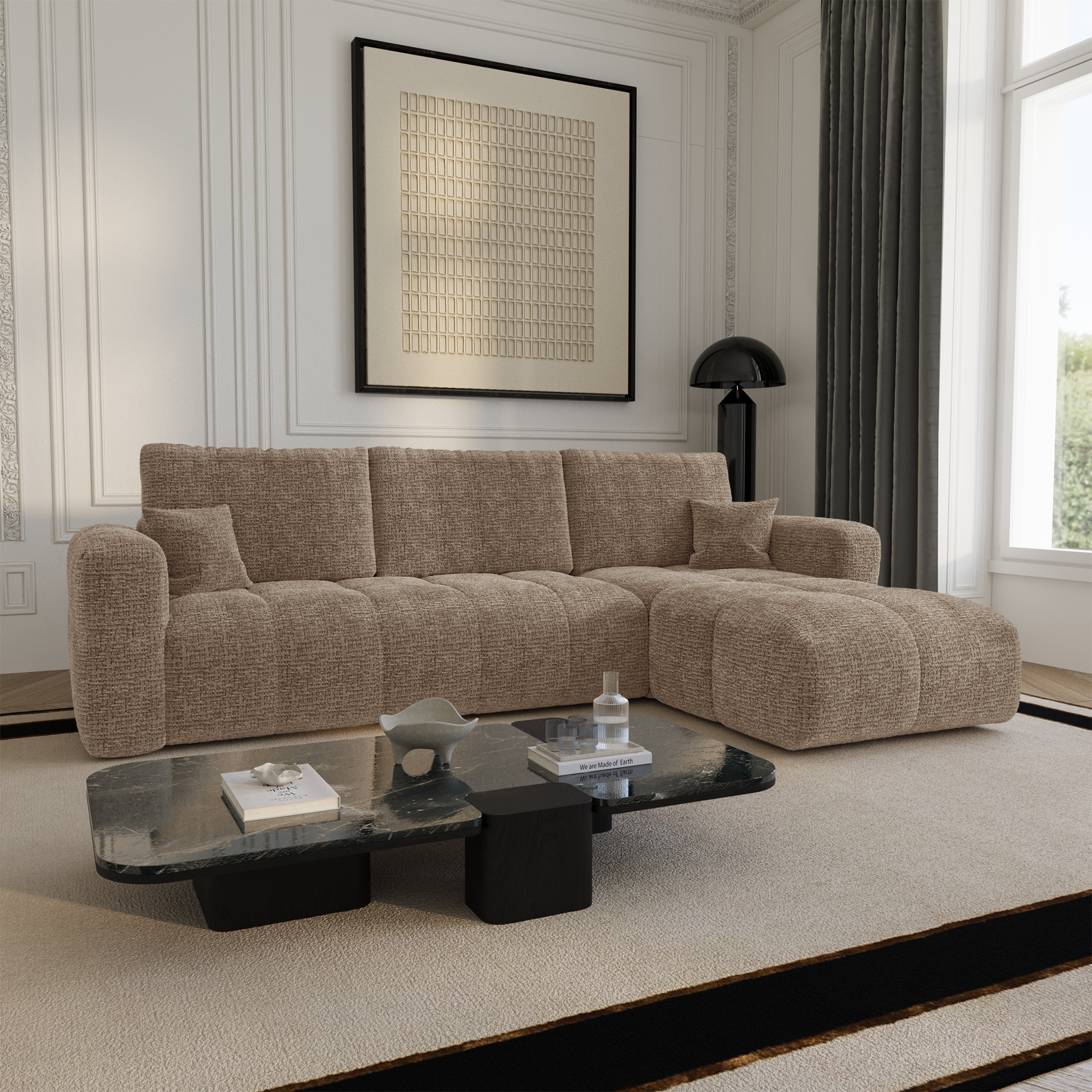VIBE est bien plus qu’un simple canapé, c’est une fusion parfaite entre design, confort et fonctionnalité. Son allure élégante, ses courbes délicates et son aspect subtilement bombé en font une pièce forte qui attire immédiatement le regard. Conçu pour apporter une touche de sophistication à votre intérieur, il s’intègre aussi bien dans une décoration moderne que dans un cadre plus éclectique.