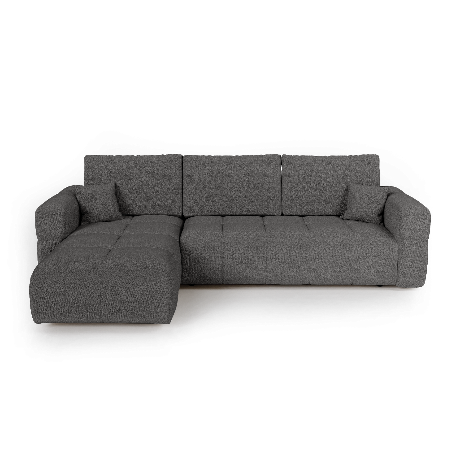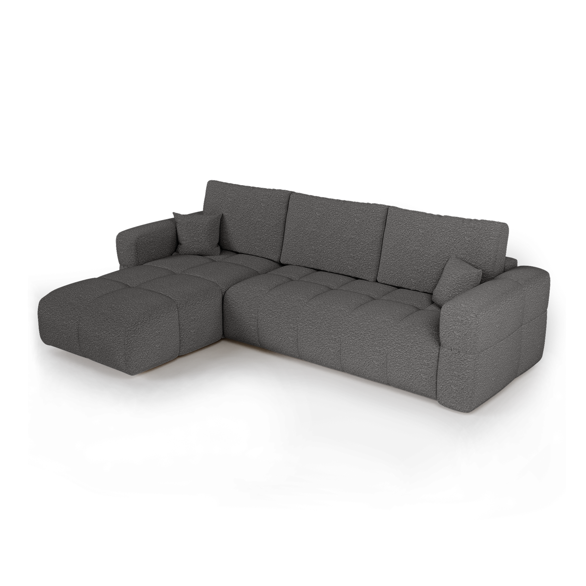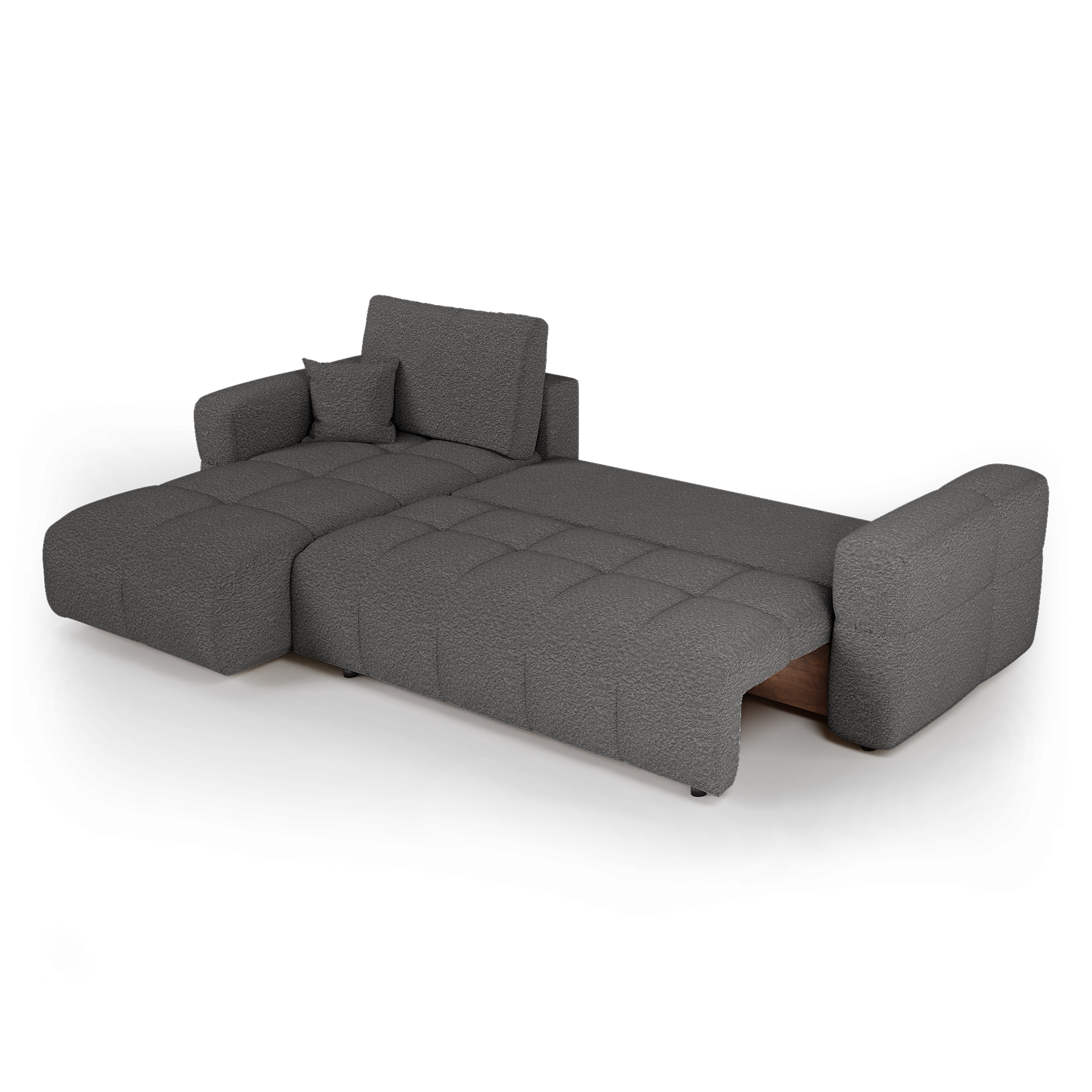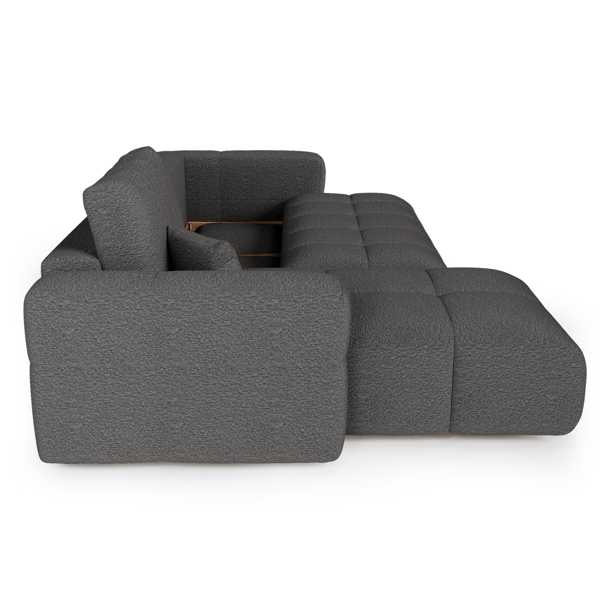 Canapé d'angle gauche convertible avec coffre noyer VIBE Tissu bouclette