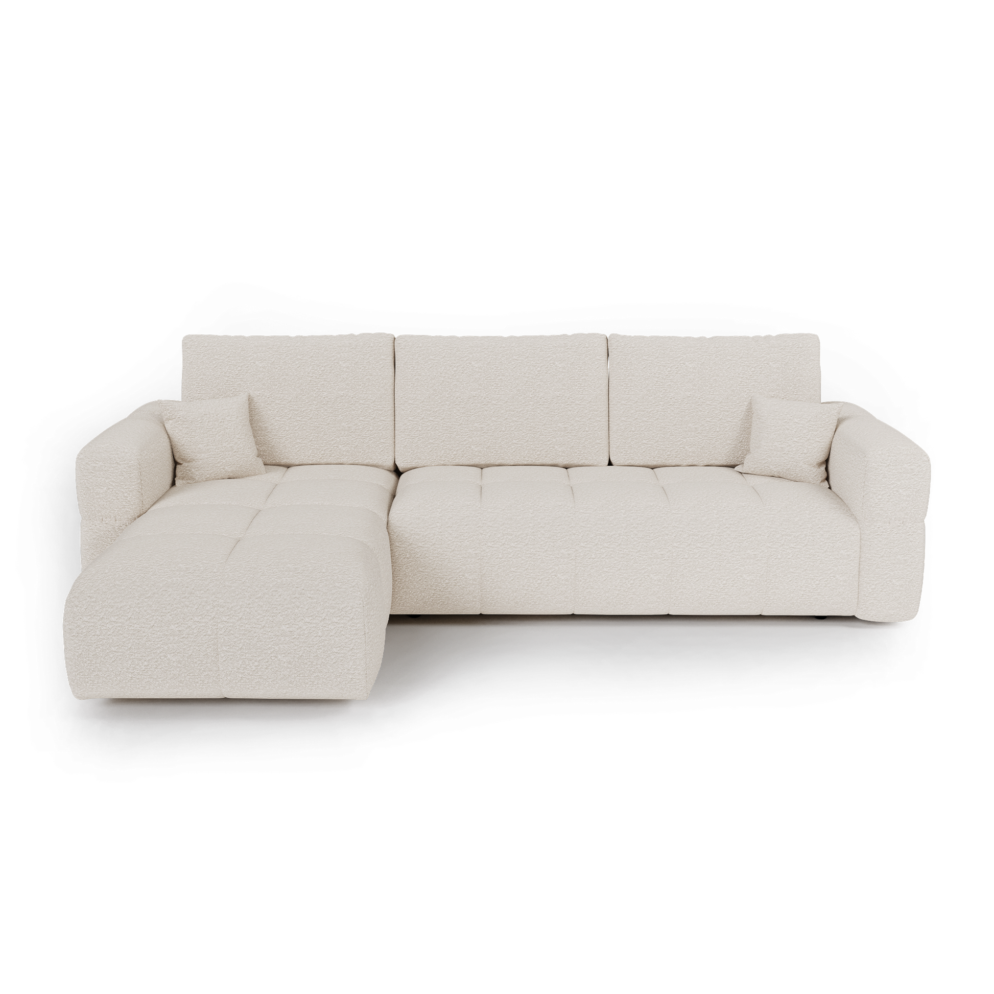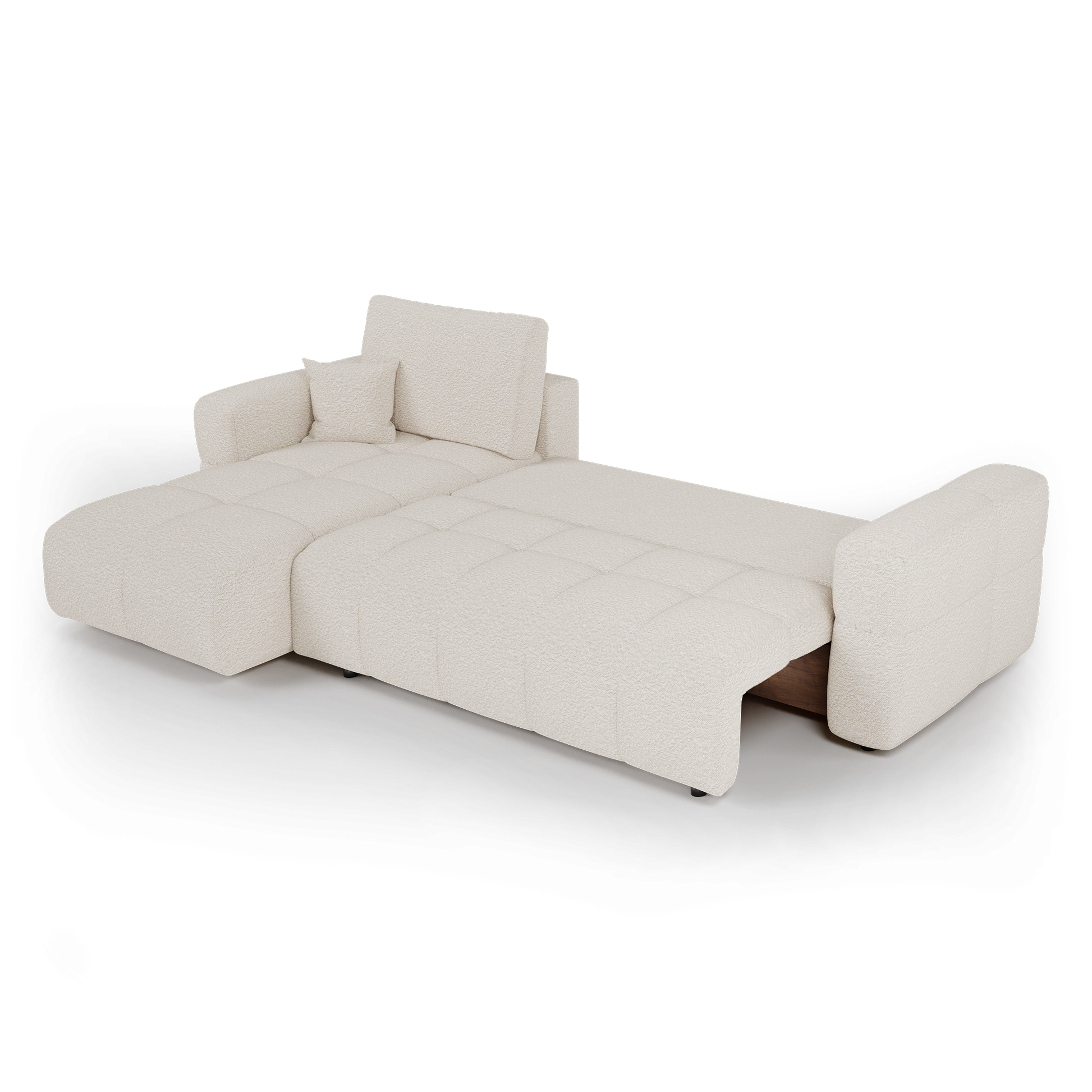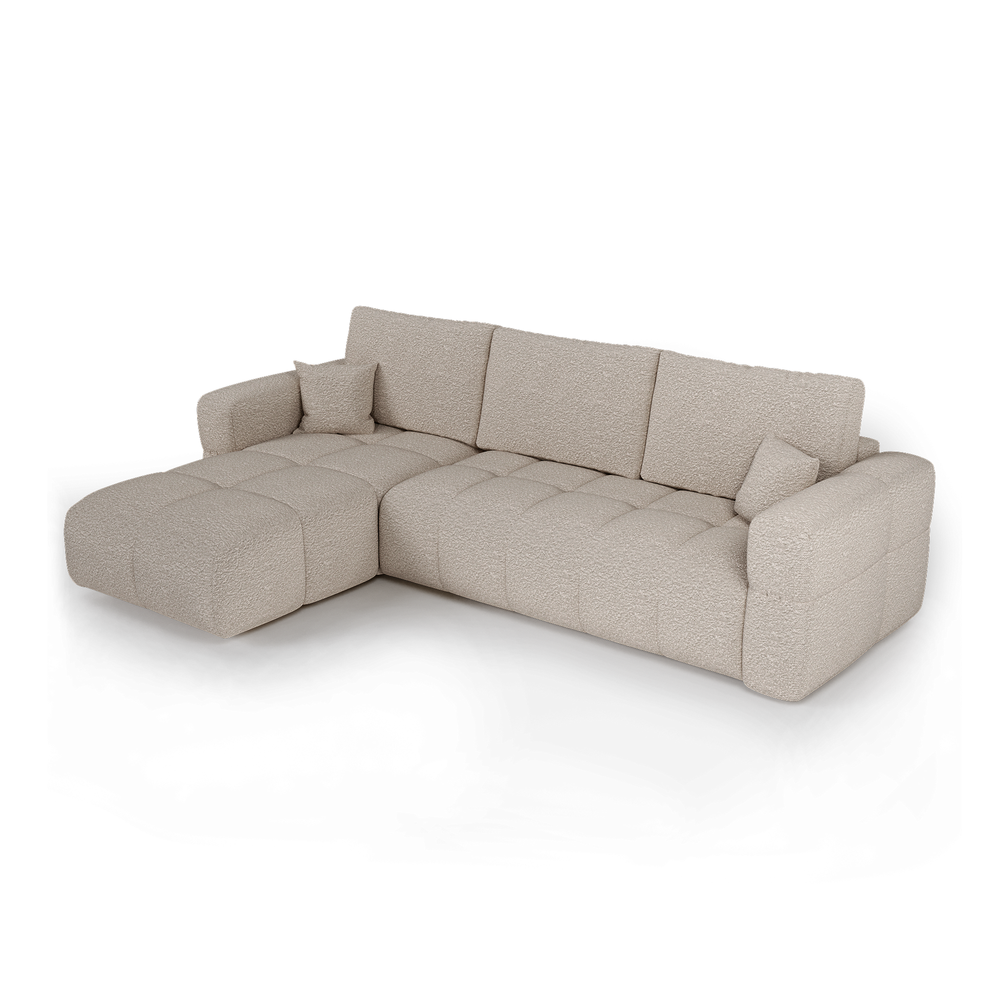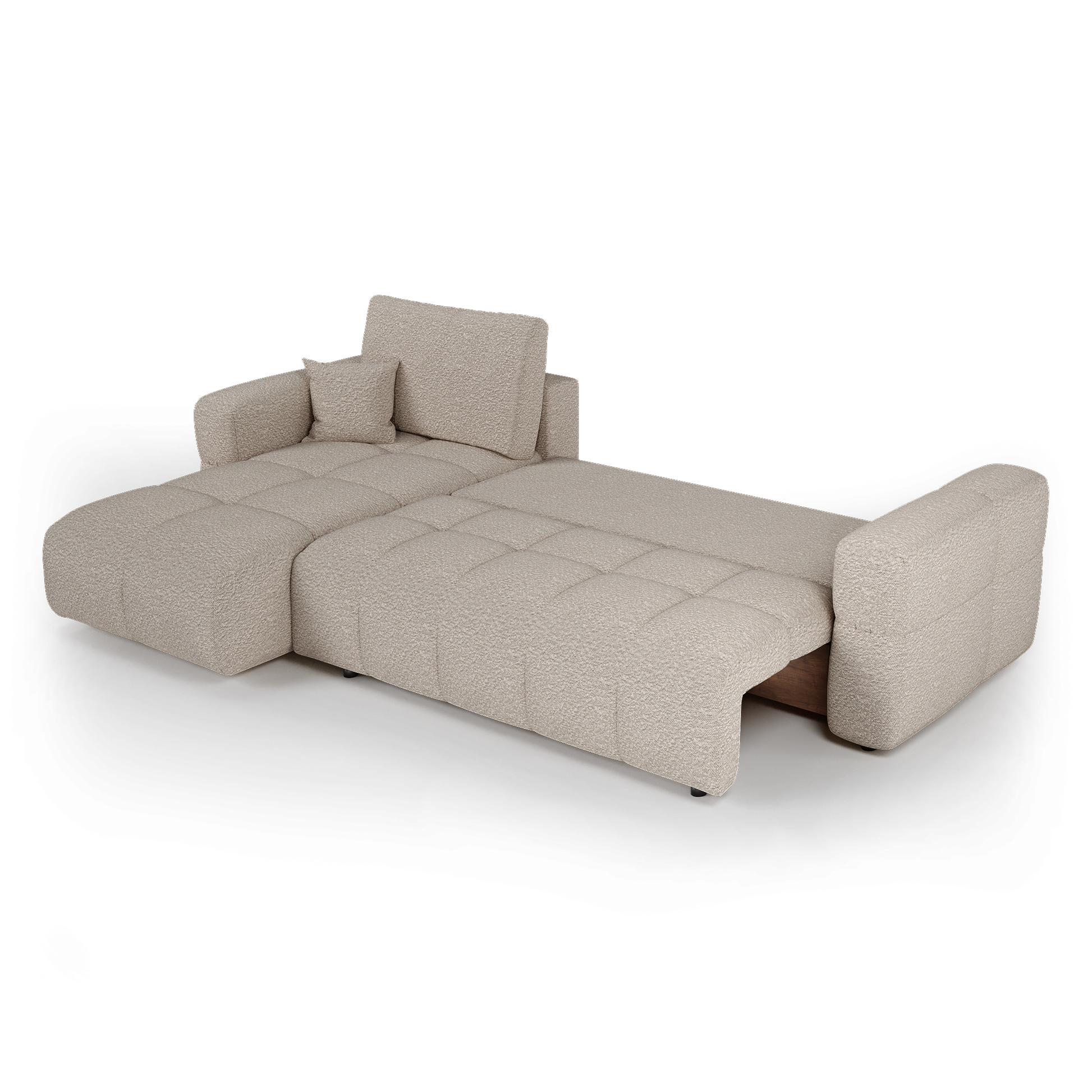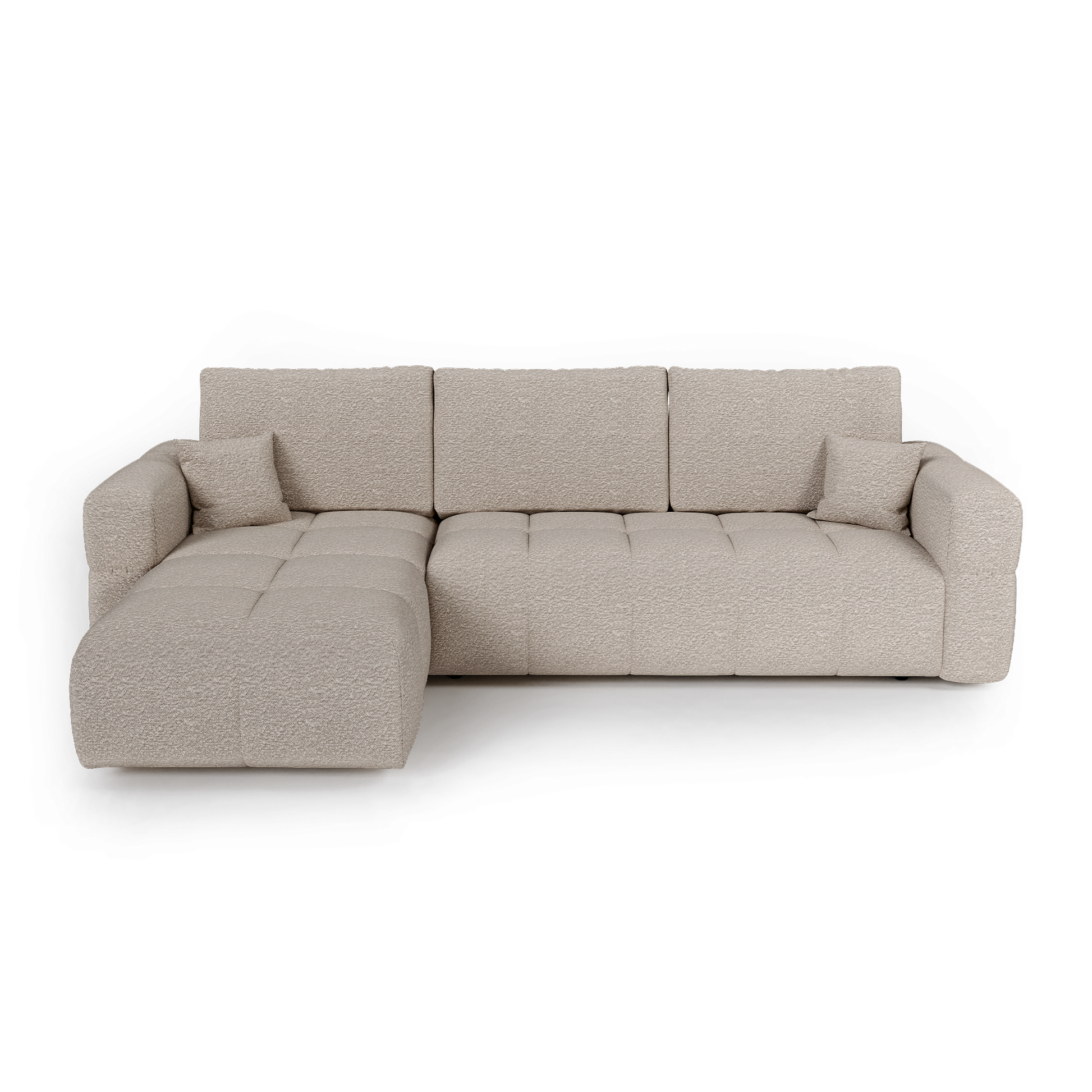 Canapé d'angle gauche convertible avec coffre noyer VIBE Tissu bouclette