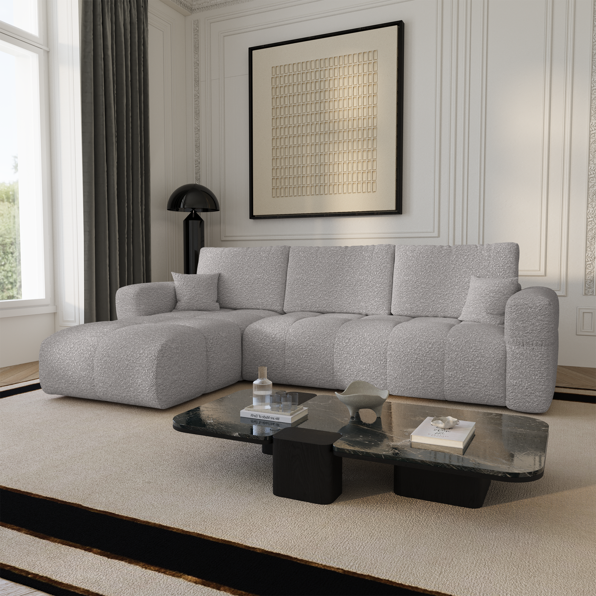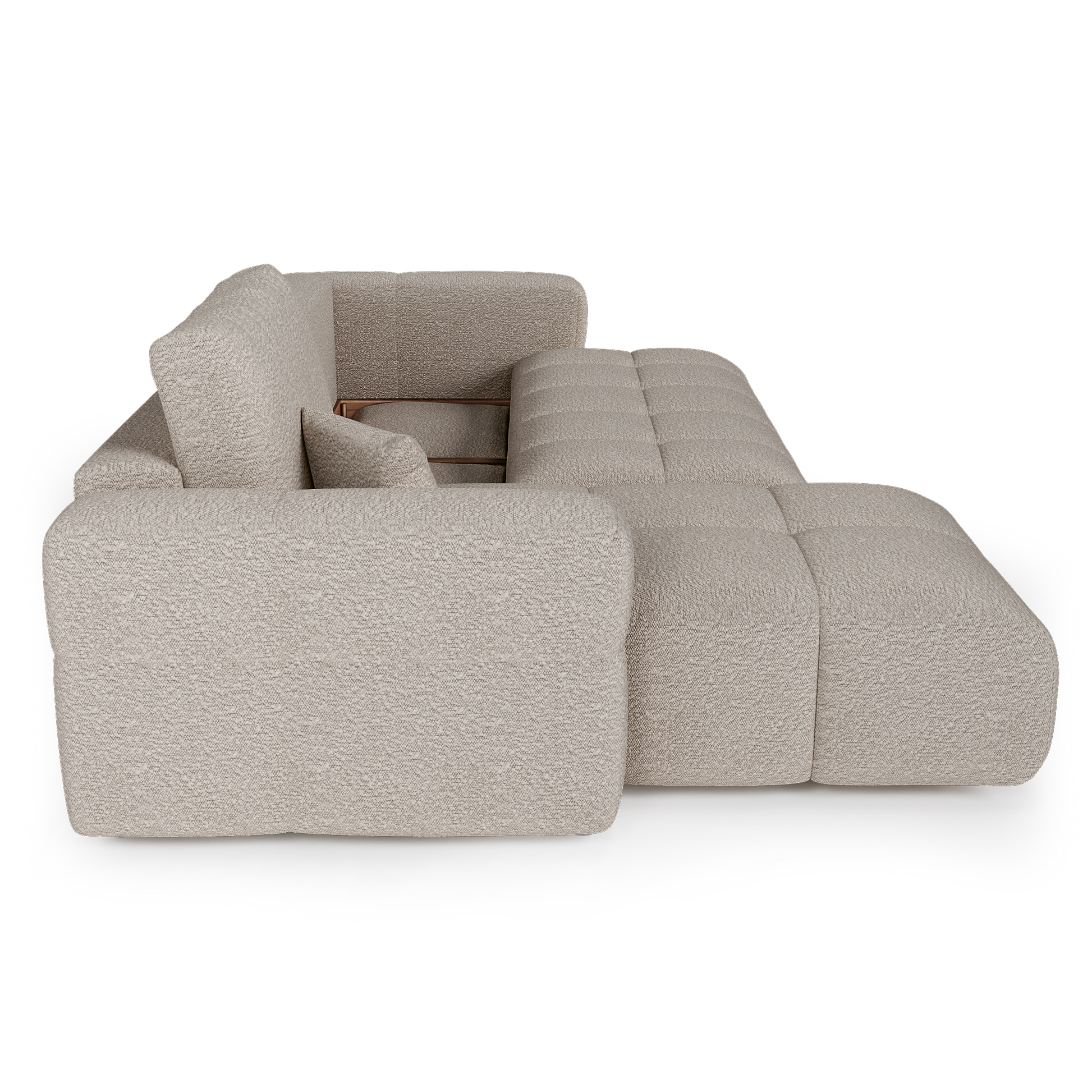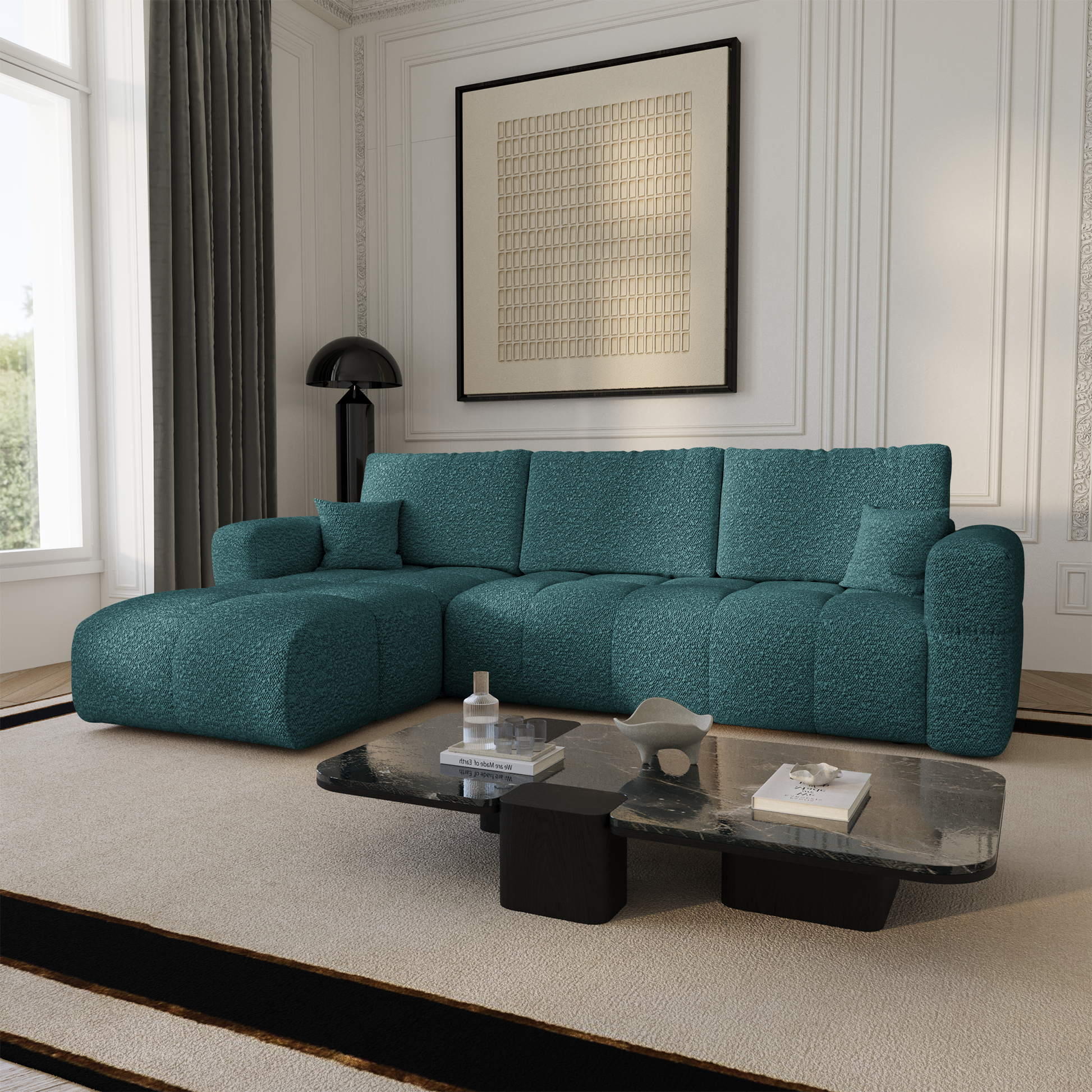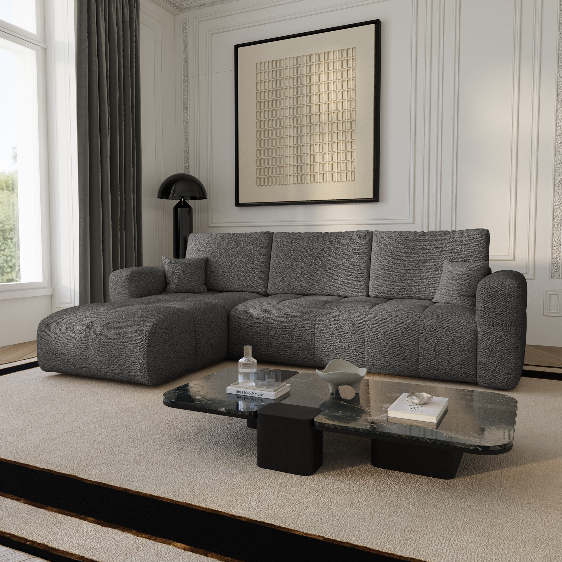 Canapé d'angle gauche convertible avec coffre noyer VIBE Tissu bouclette