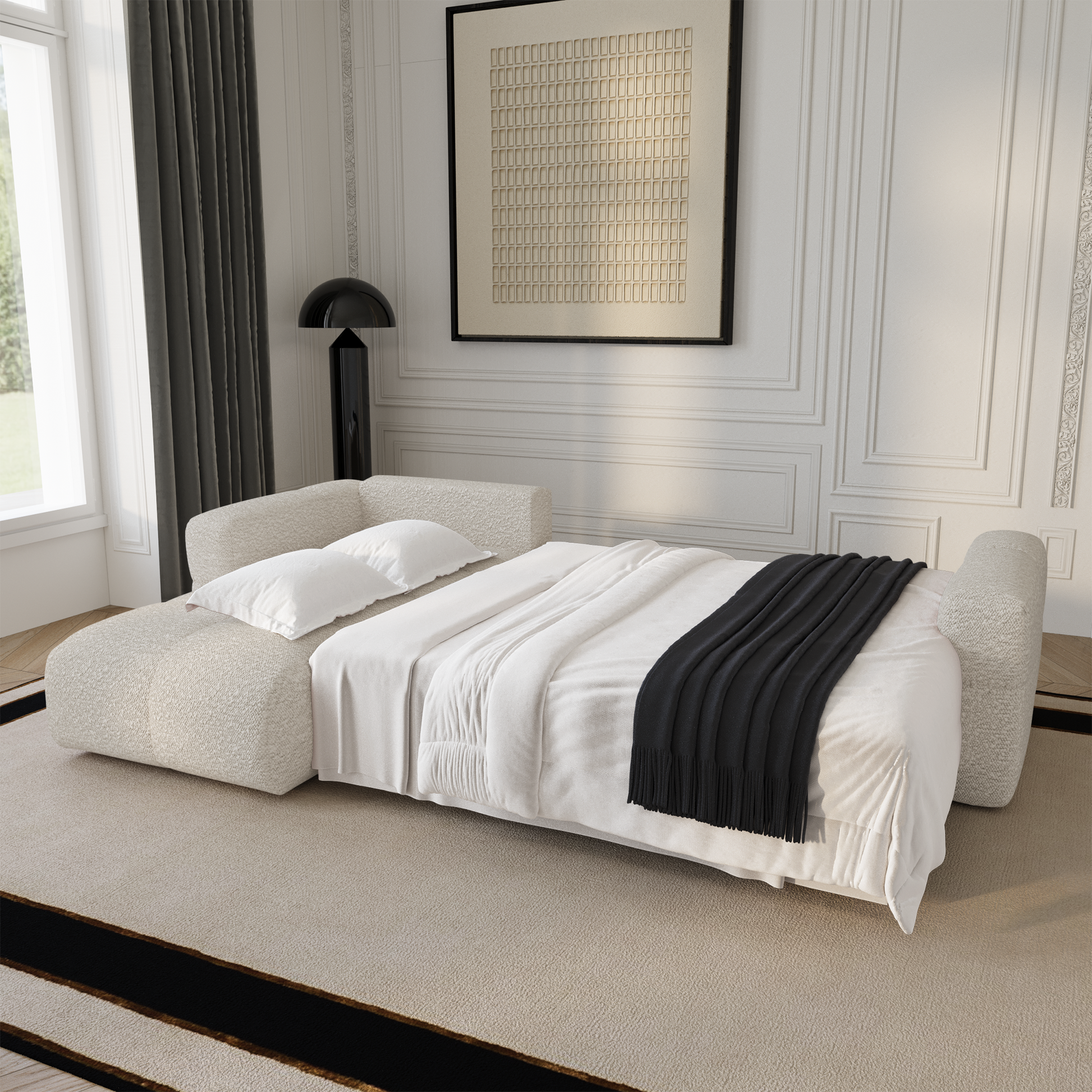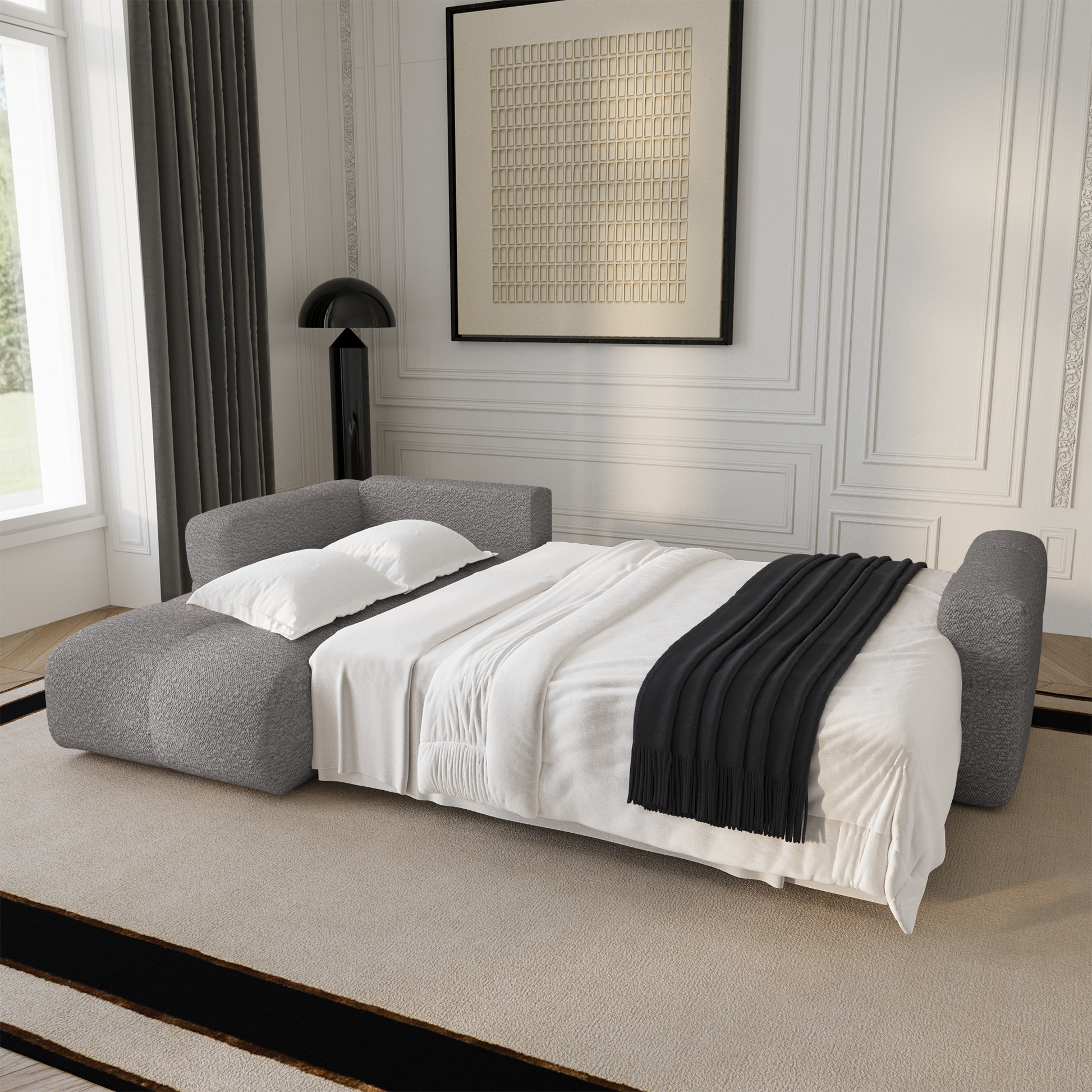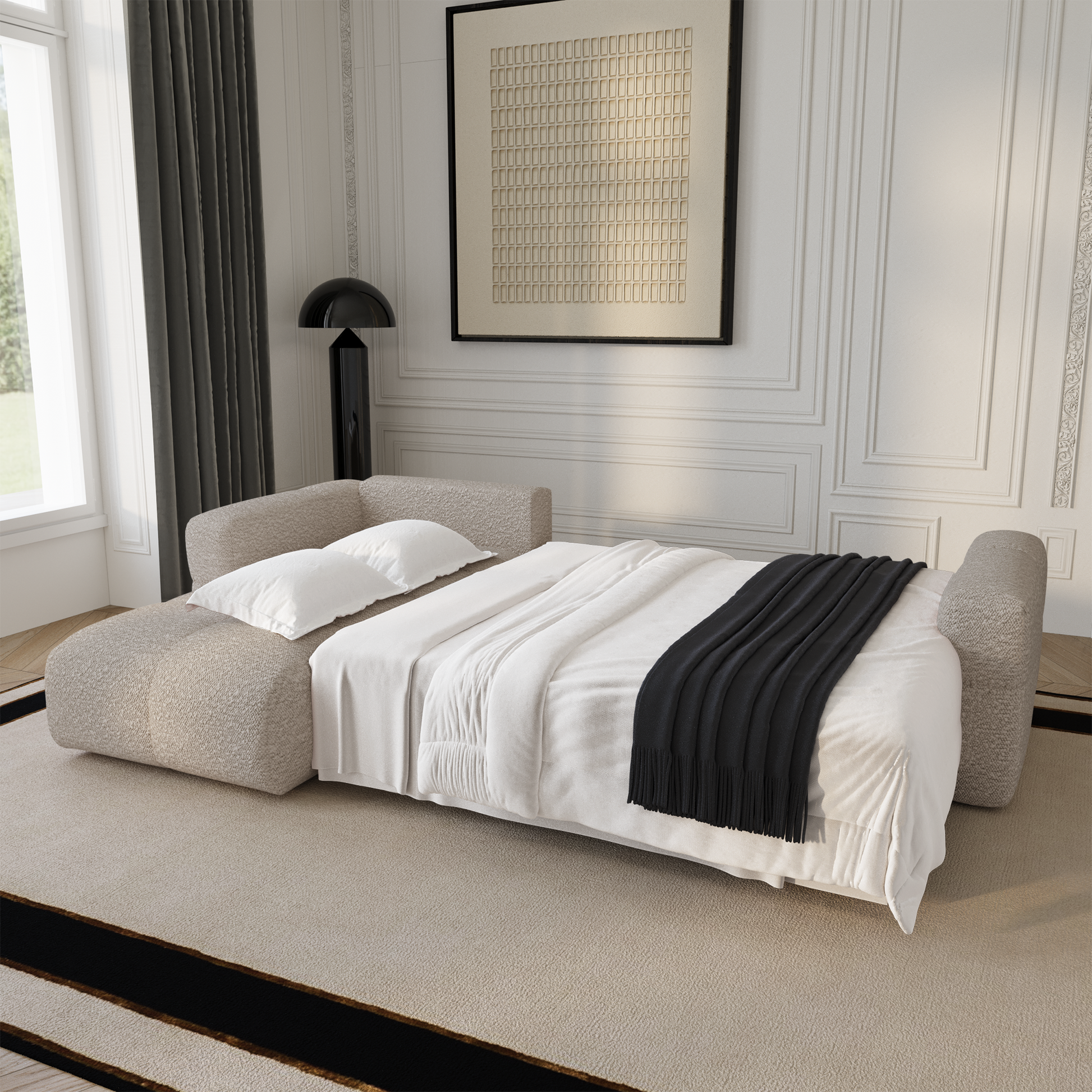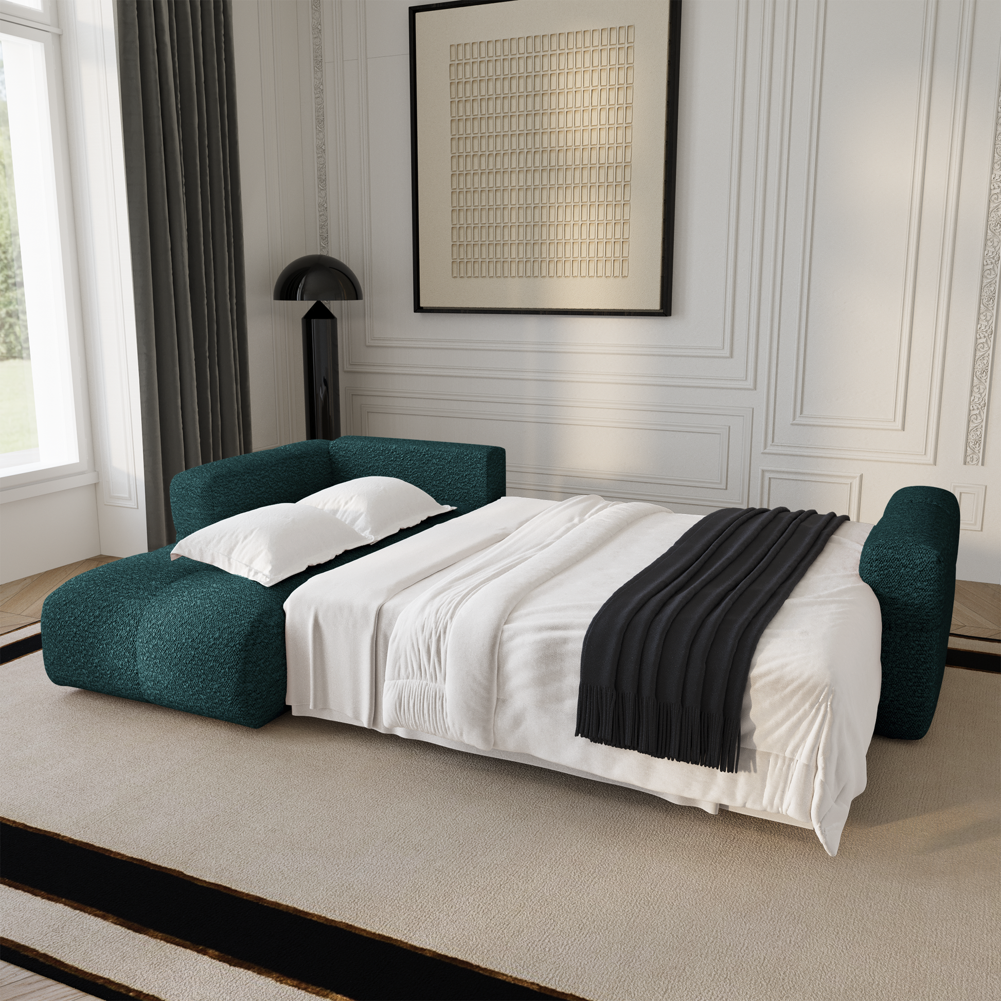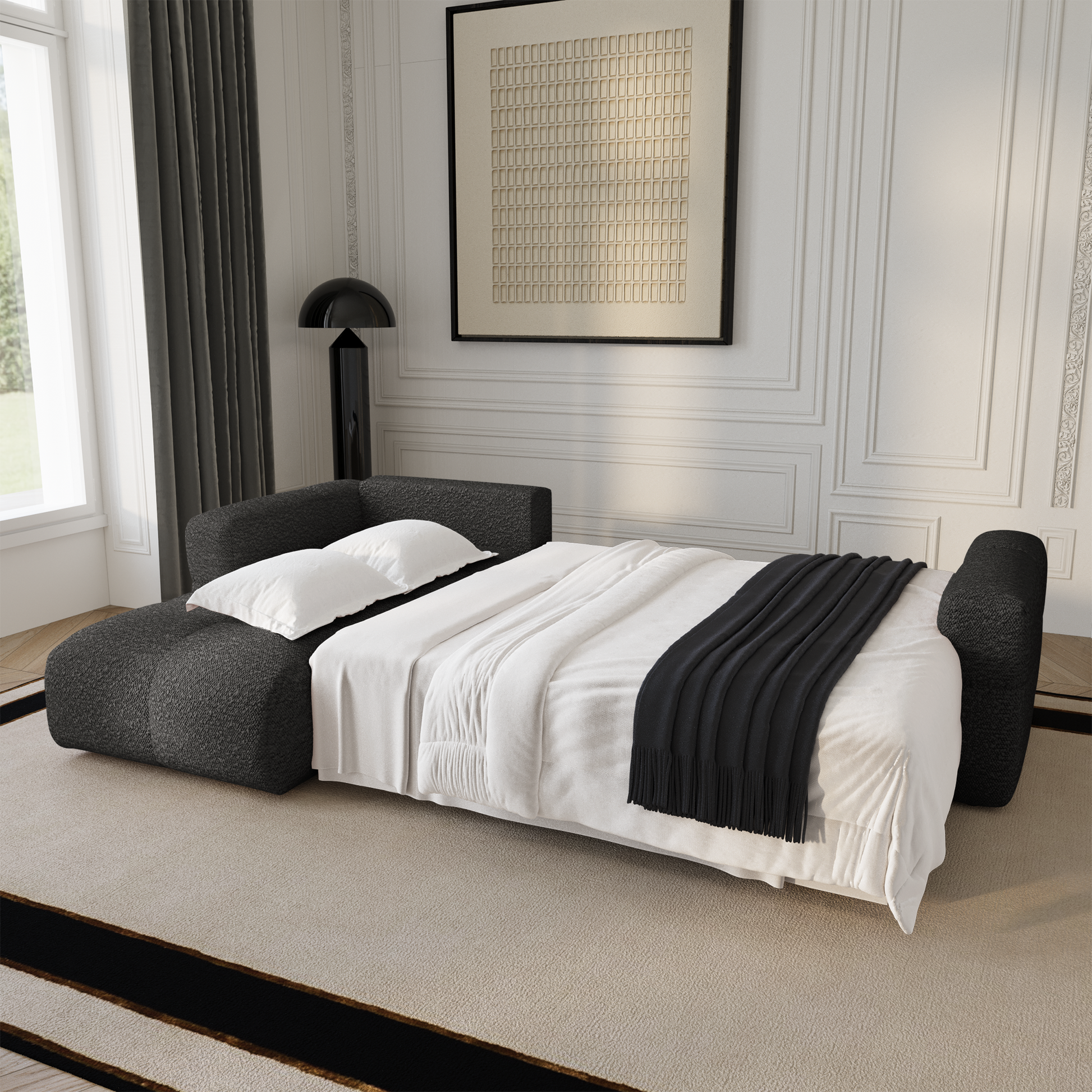 Son système intuitif permet d'installer un espace couchage en un instant, offrant ainsi une solution parfaite pour accueillir des invités avec tout le confort nécessaire. Son coffre de rangement noyer en fait un canapé aussi pratique qu'esthétique.