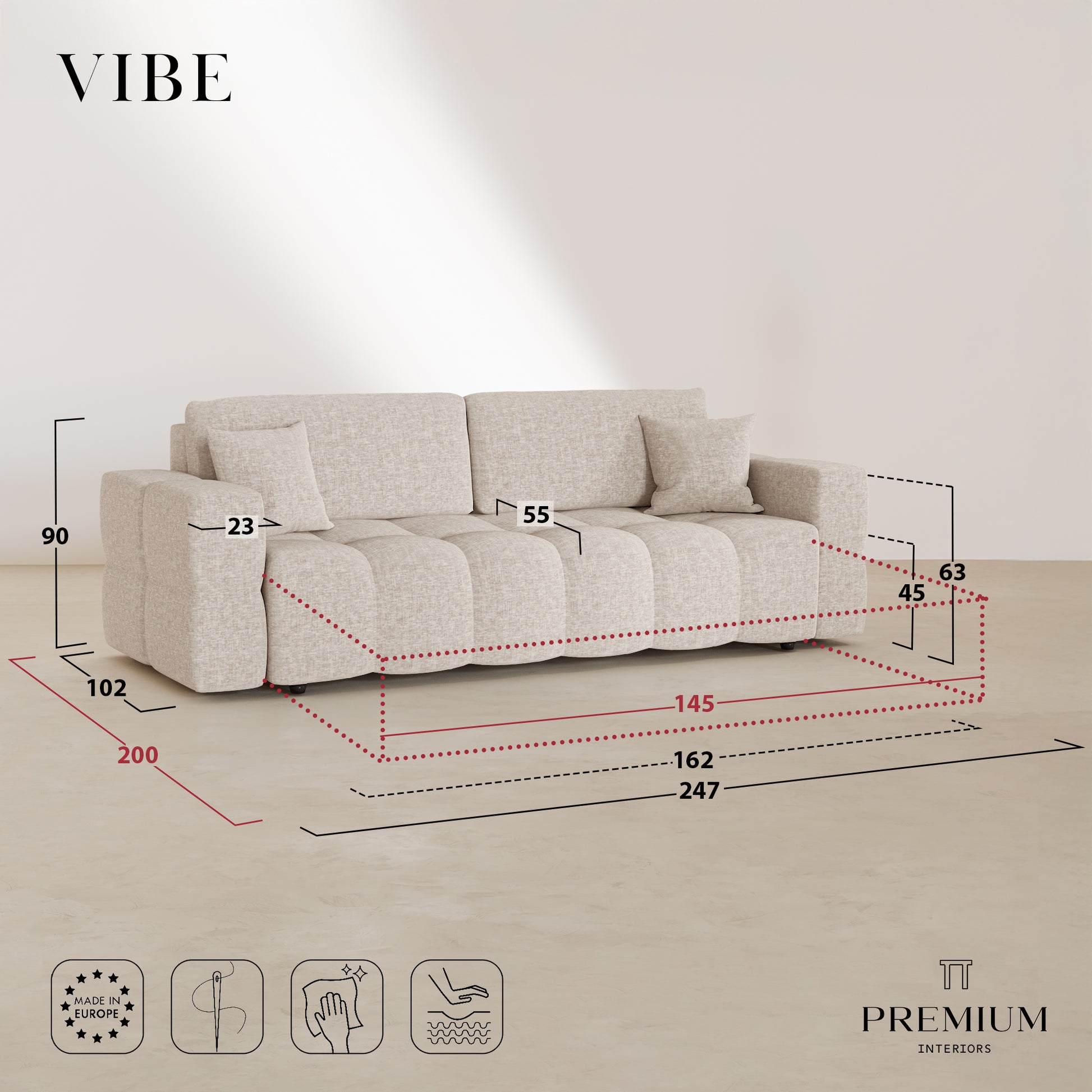 VIBE est bien plus qu’un simple canapé, c’est une fusion parfaite entre design, confort et fonctionnalité. Son allure élégante, ses courbes délicates et son aspect subtilement bombé en font une pièce forte qui attire immédiatement le regard. Conçu pour apporter une touche de sophistication à votre intérieur, il s’intègre aussi bien dans une décoration moderne que dans un cadre plus éclectique.