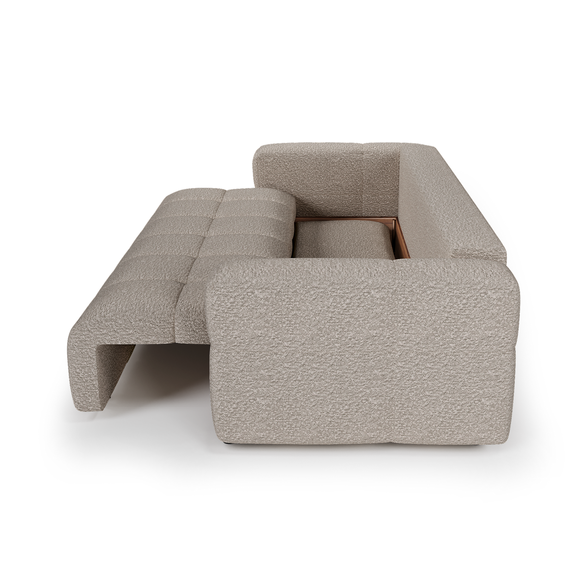 Canapé convertible 4 places avec coffre noyer VIBE Tissu bouclette
